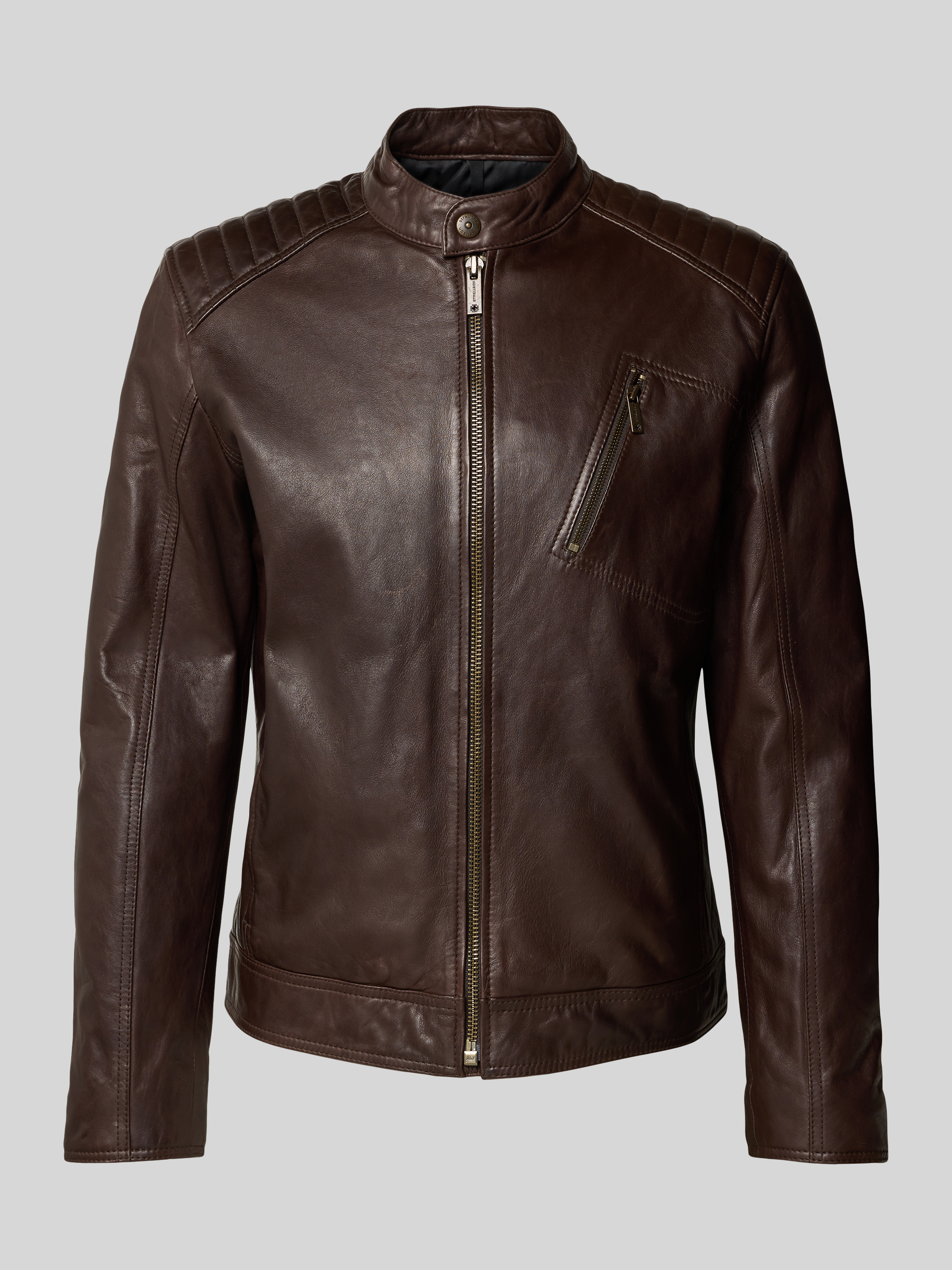 StrellsonRegular Fit Lederjacke aus Lammnappa Modell 'PIERS' in dunkelbraun