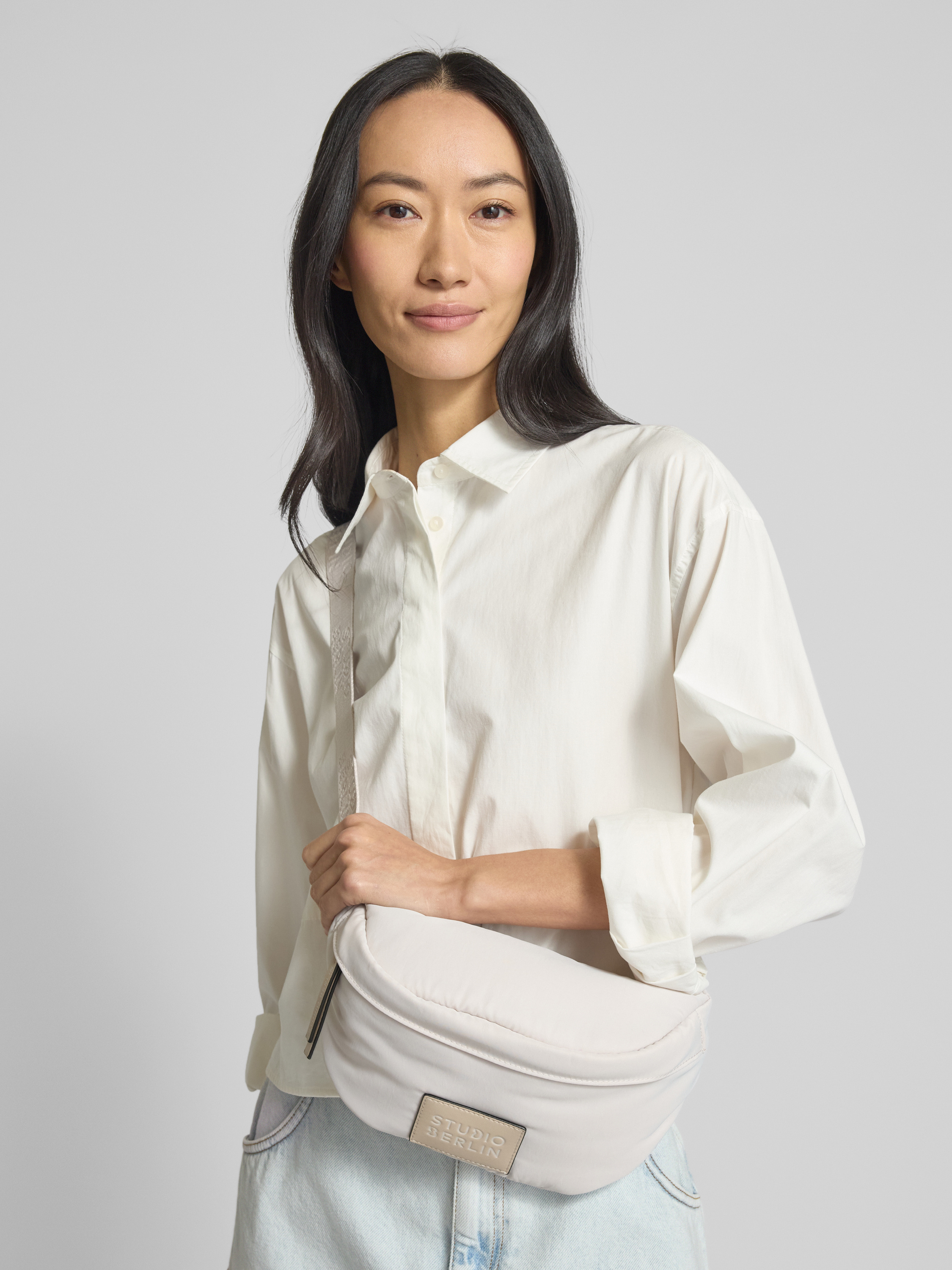 STUDIO BERLINBauchtasche mit Label-Badge Modell 'SPANDAU' in hellgrau