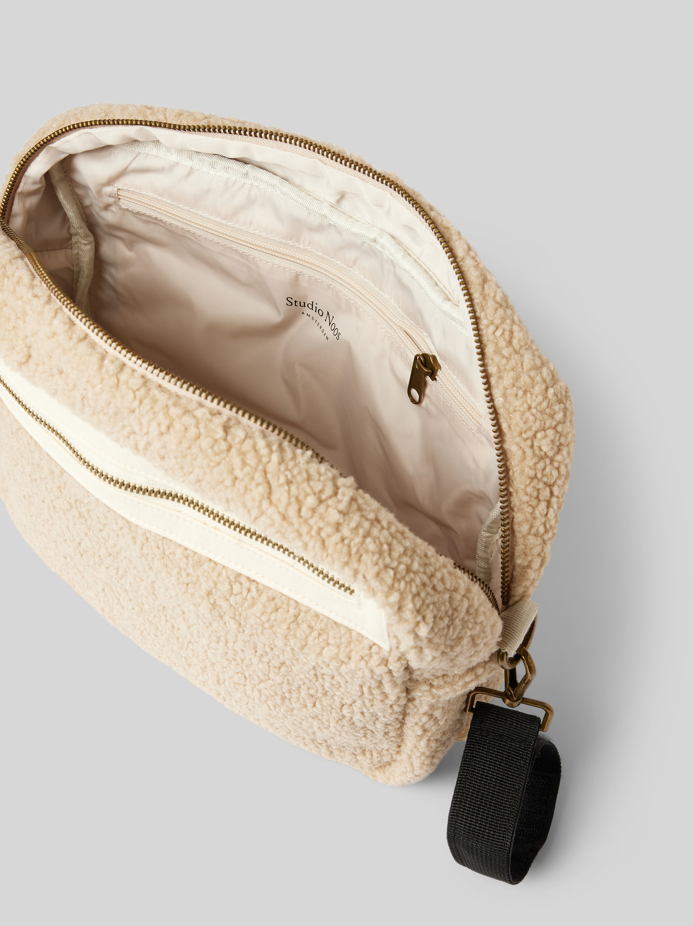 Die Crossbody Bag von Studio NOOS kombiniert praktisches Design mit einem flauschigen Teddyfell, das für ein angenehmes Tragegefühl sorgt. Dank des abnehmbaren Riemens kann man flexibel zwischen Schulter- und Umhängetasche wechseln. Mehrere Reißverschlussfächer bieten ausreichend Platz für wichtige Alltagsgegenstände.