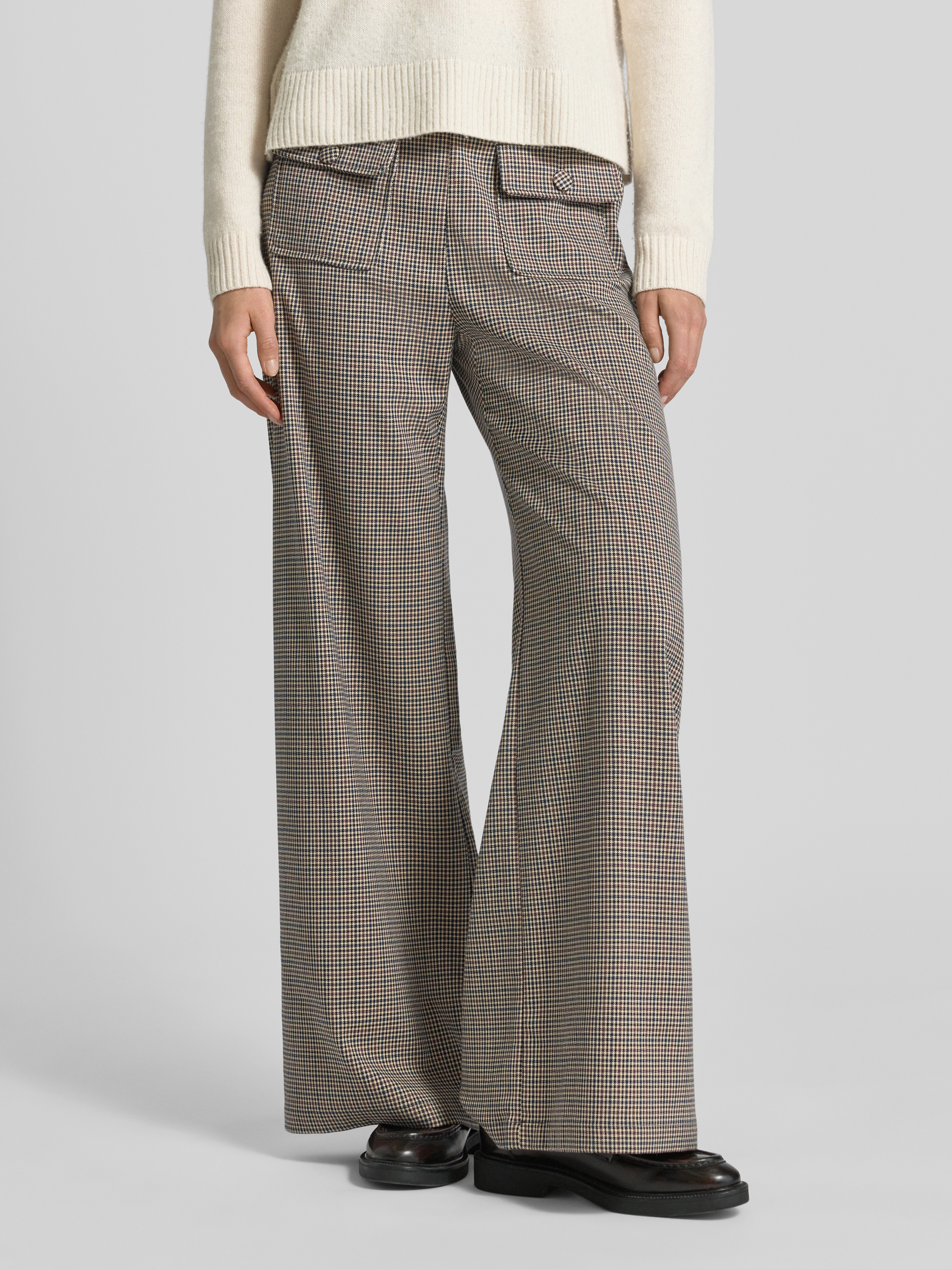 Die Damen Hose von SUNCOO PARIS, Modell 'JOHN', zeichnet sich durch ihr weites Bein und die markanten Pattentaschen aus. Dank des Material-Mix mit Viskose-Anteil fühlt sie sich angenehm leicht an, wodurch Bewegungsfreiheit im Alltag unterstützt wird. So eignet sich die Hose für unterschiedlichste Anlässe und lässt sich vielseitig kombinieren.