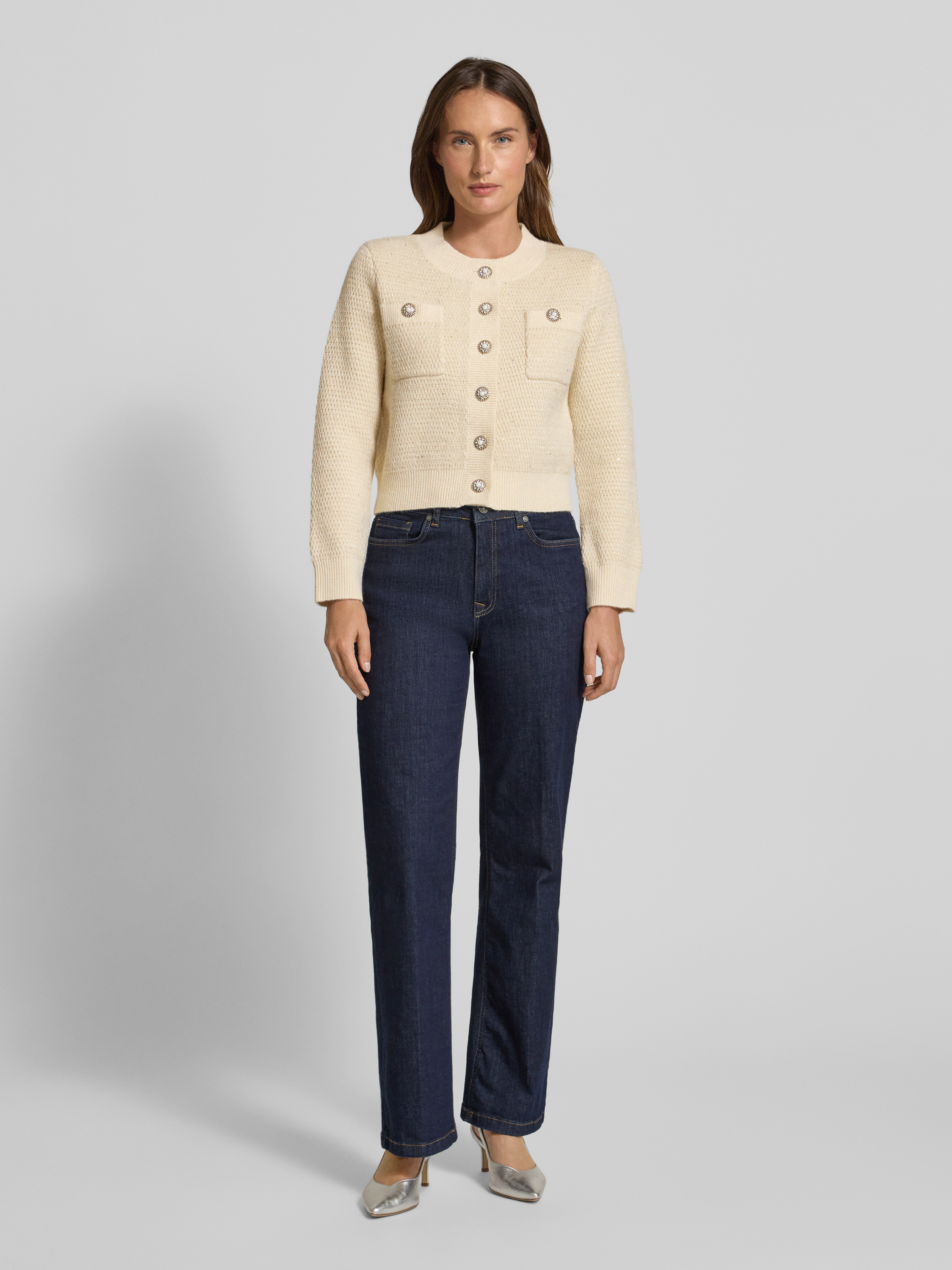 Die Strickjacke von SUNCOO PARIS, Modell GABOR, besteht aus einem angenehm weichen Material-Mix mit Woll-Anteil. Durch den bequemen Regular Fit sitzt sie entspannt, während gerippte Abschlüsse und ein Rundhalsausschnitt für eine dezente Note sorgen. Praktische Brusttaschen ergänzen das zurückhaltende Design.