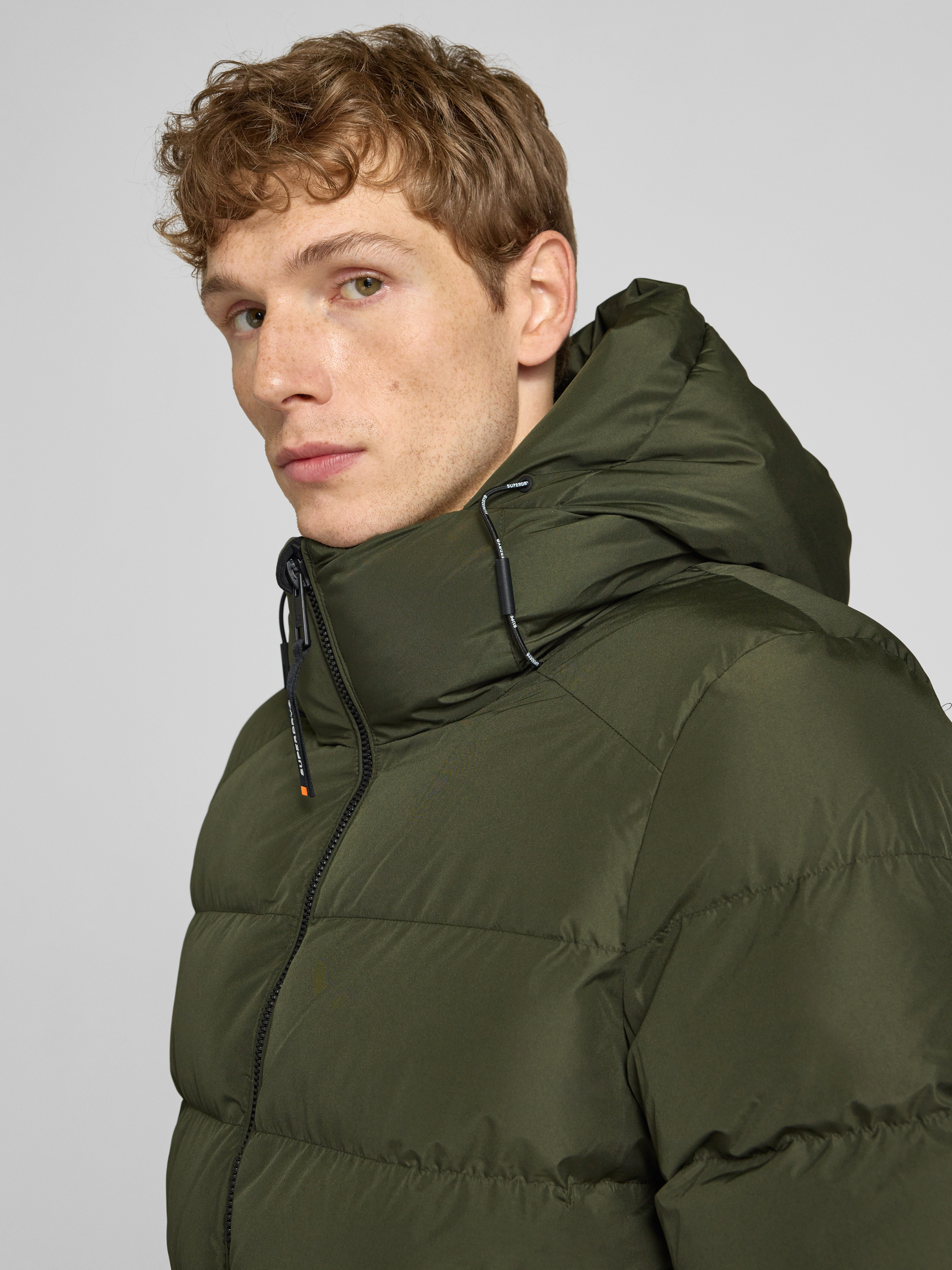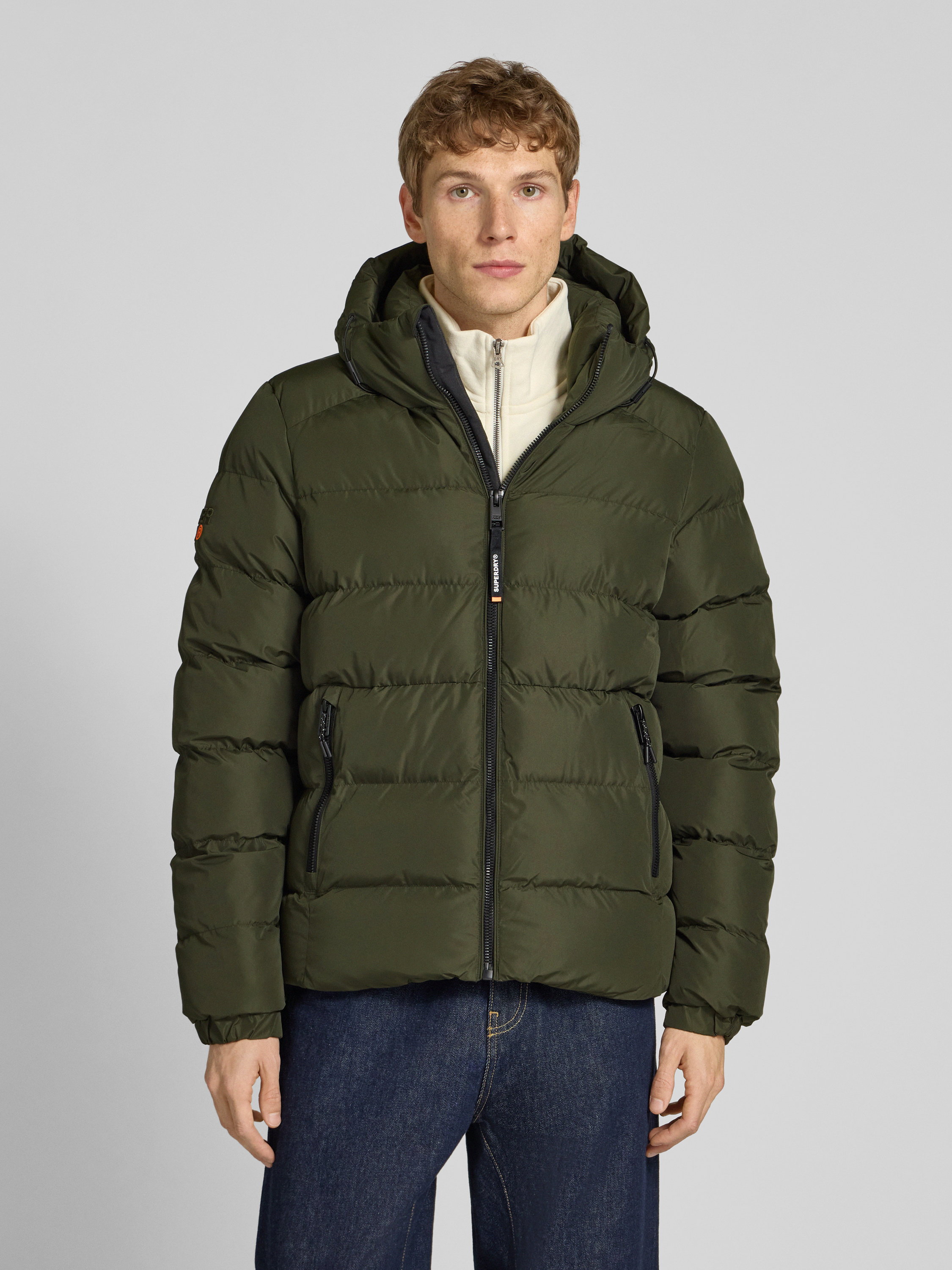 SuperdrySteppjacke mit Kapuze und seitlichen Reißverschlusstaschen in khaki