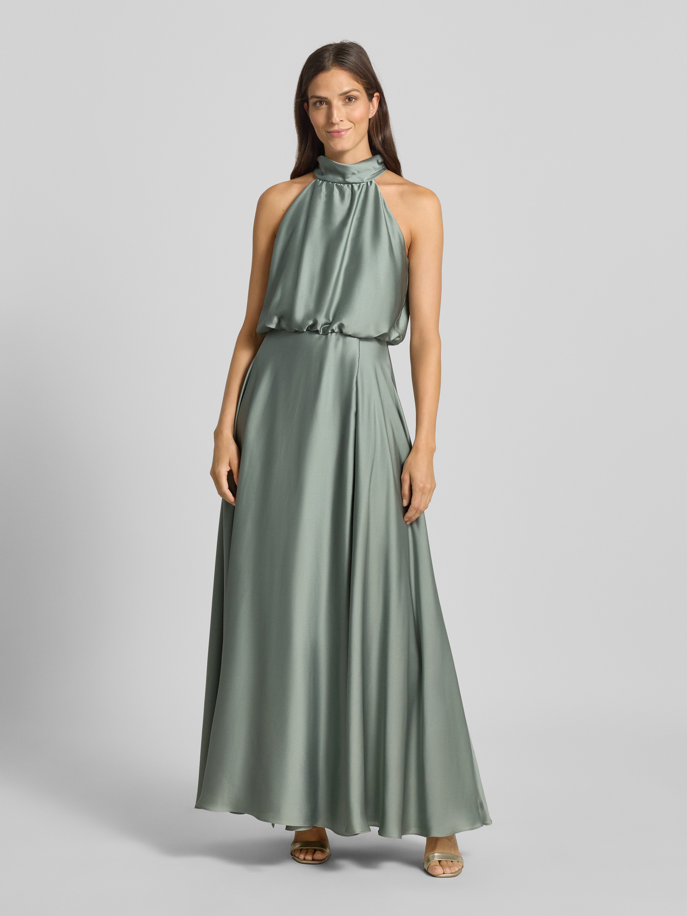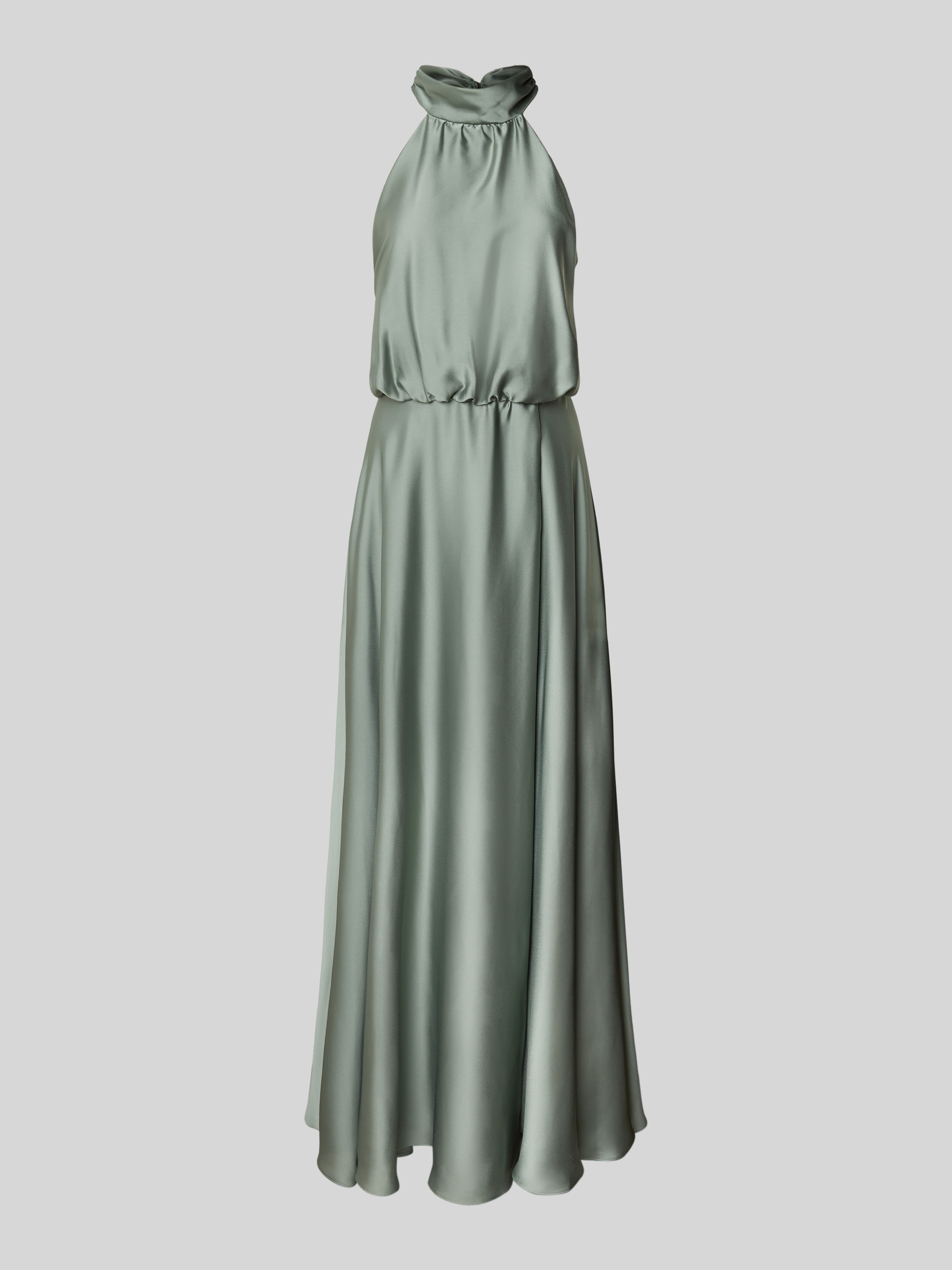 SwingAbendkleid in Wickel-Optik mit Stehkragen in lind