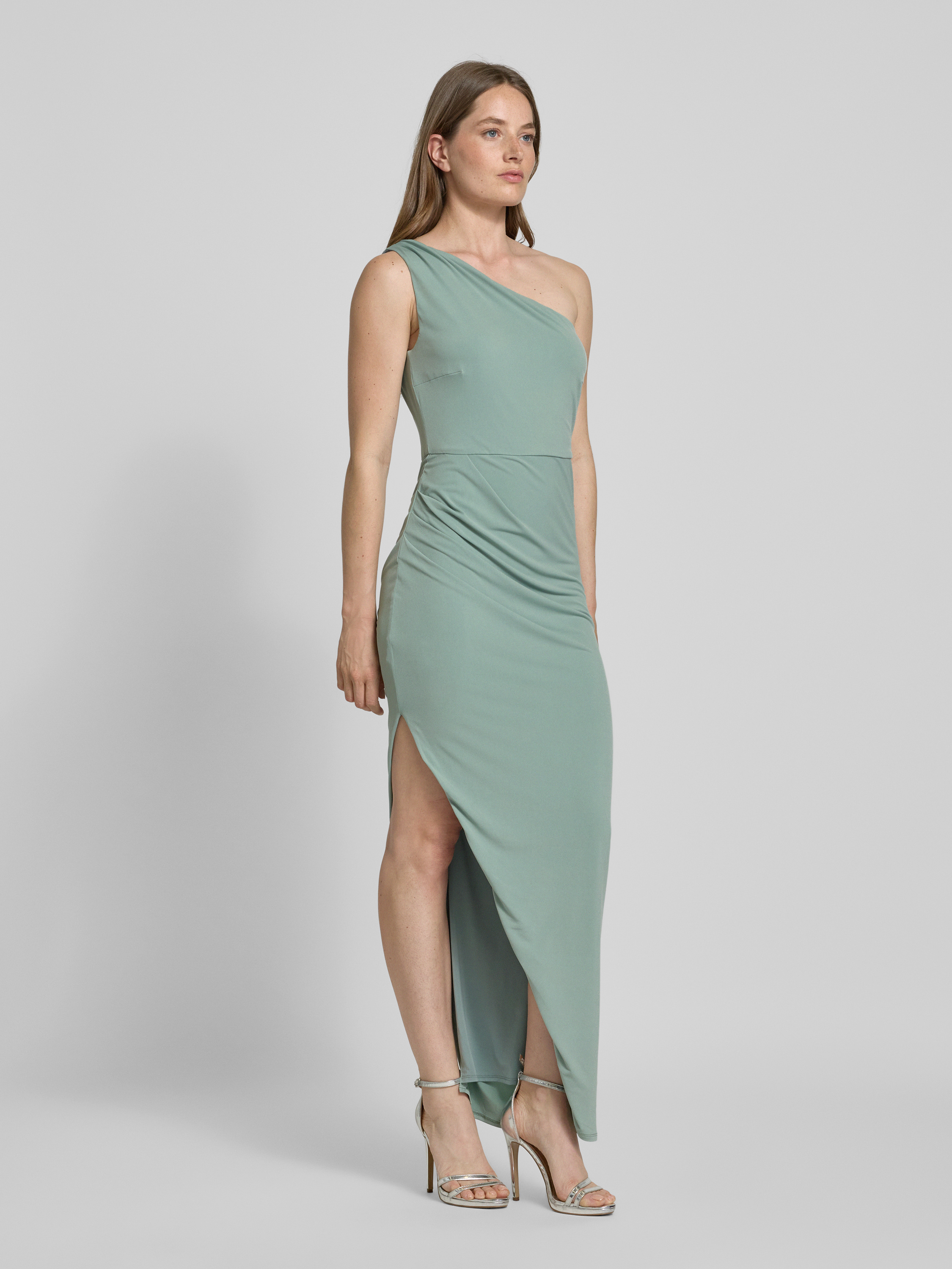 Das Swing Abendkleid mit seitlicher Raffung schmiegt sich durch den körpernahen Schnitt angenehm an und sorgt für eine elegante Silhouette. Dank des Material-Mix mit Stretch-Anteil bleibt Bewegungsfreiheit erhalten. Mit dem One-Shoulder-Träger erhält das Maxikleid eine moderne Note, die vielseitig kombinierbar wirkt.