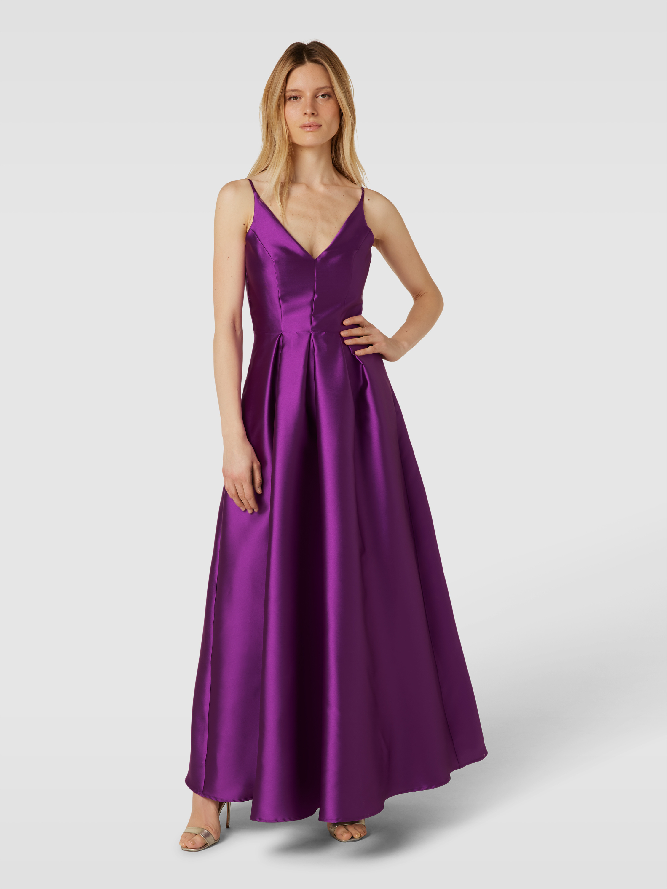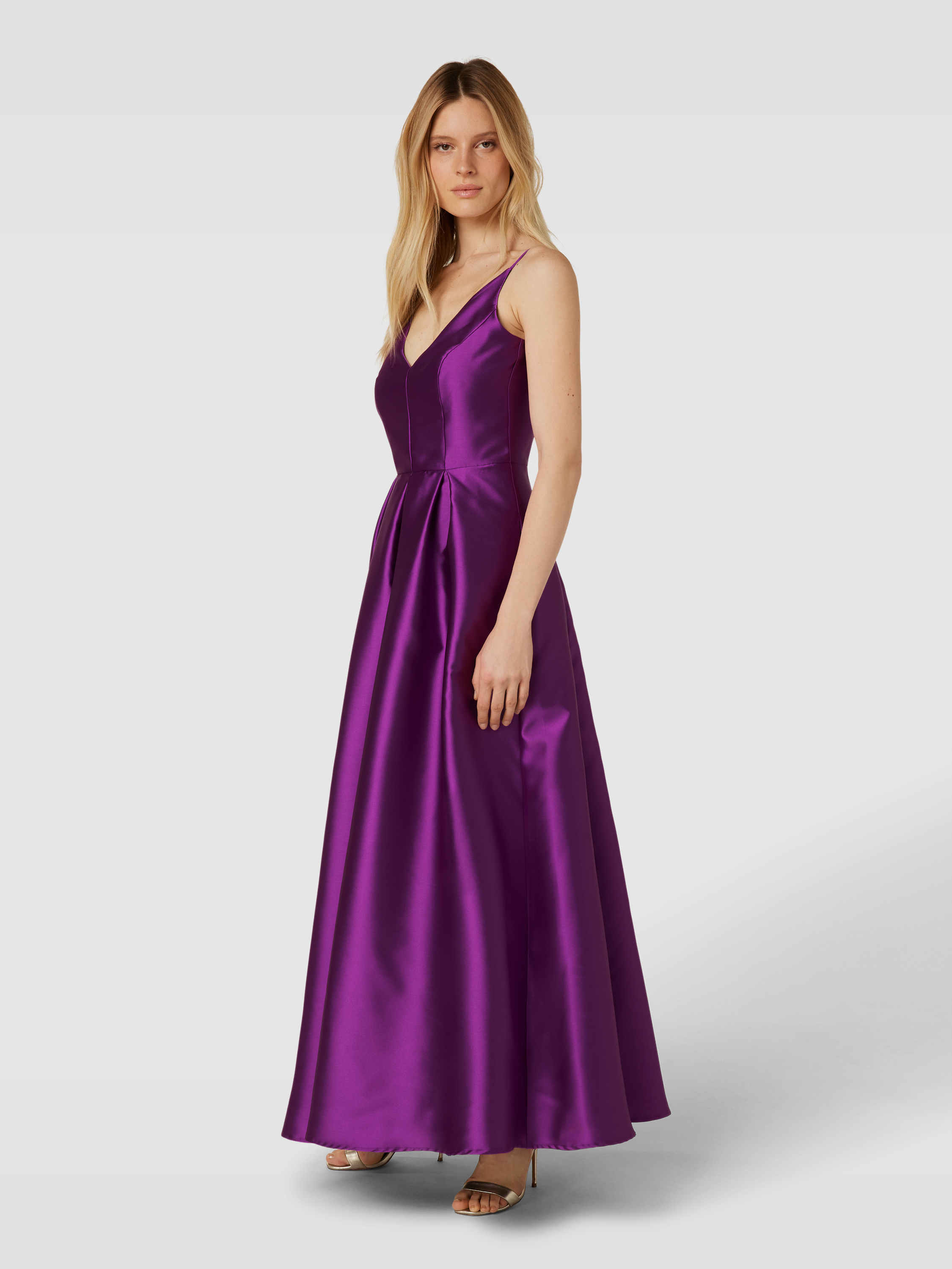 Das elegante Abendkleid von SWING vereint durch seinen raffinierten Material-Mix Komfort mit Stil. Die fließende A-Linie und der V-Ausschnitt verleihen dem Maxikleid eine ansprechende Silhouette, während der Stufen-Look und die gelegten Falten für eine besondere Note sorgen. Spaghettiträger runden das unifarbene Design harmonisch ab.