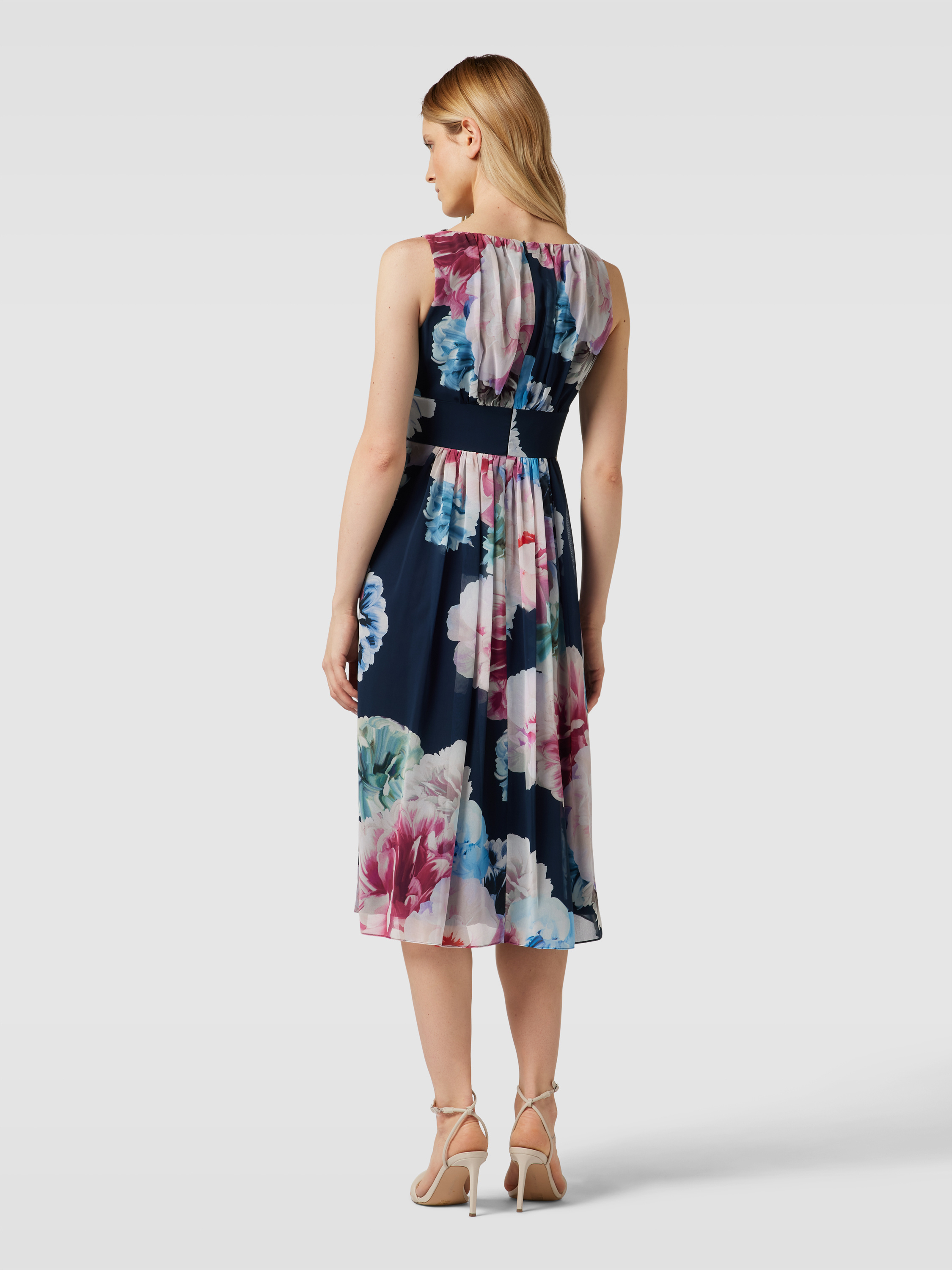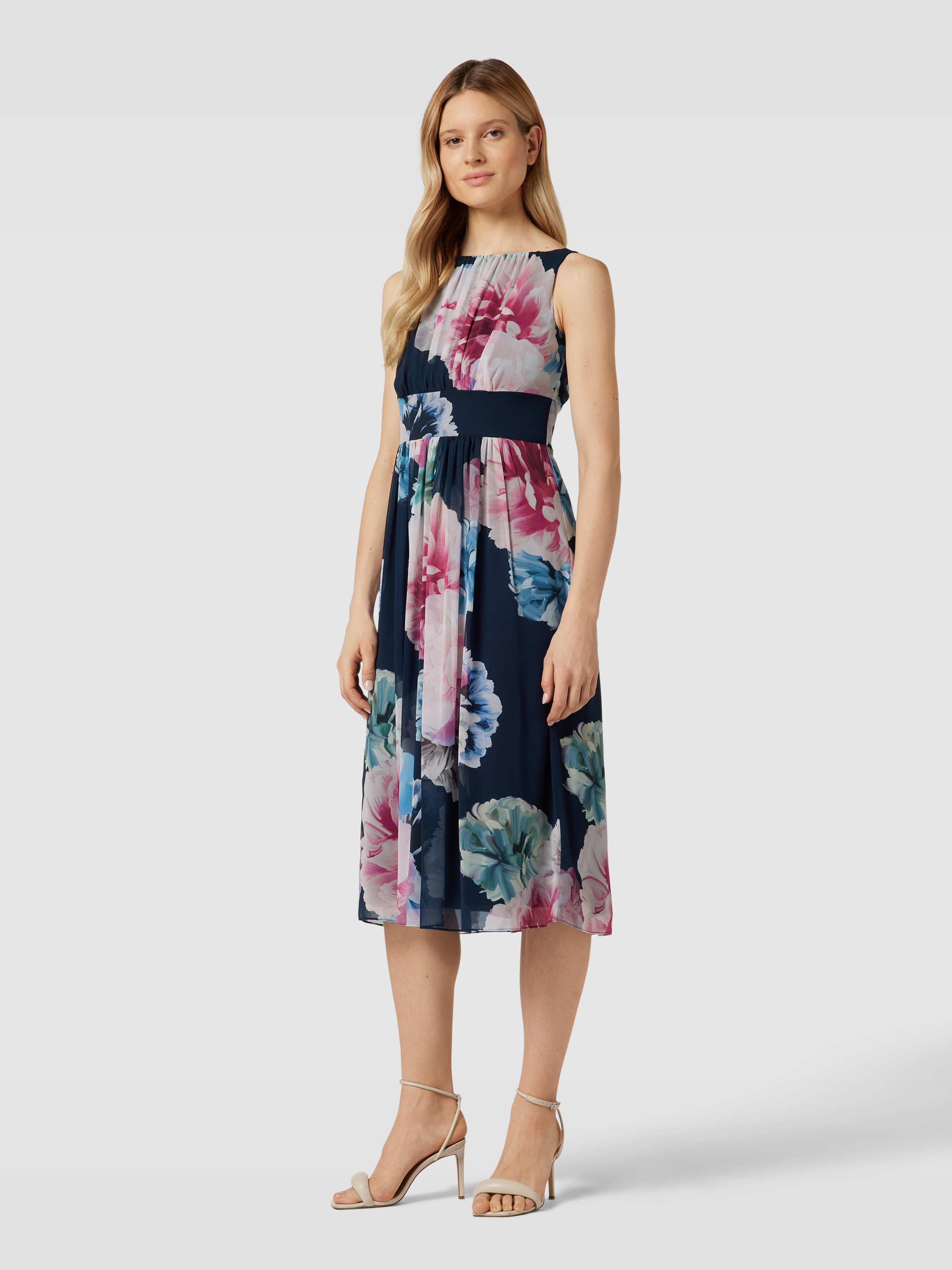 Das Cocktailkleid von SWING aus leichtem Georgette schmiegt sich durch den taillierten Schnitt angenehm an die Silhouette an. Das ärmellose Design und der U-Boot-Ausschnitt verleihen dem Allover-Muster eine zurückhaltende Eleganz. Raffungen und das blickdichte Unterkleid runden den Look ab.