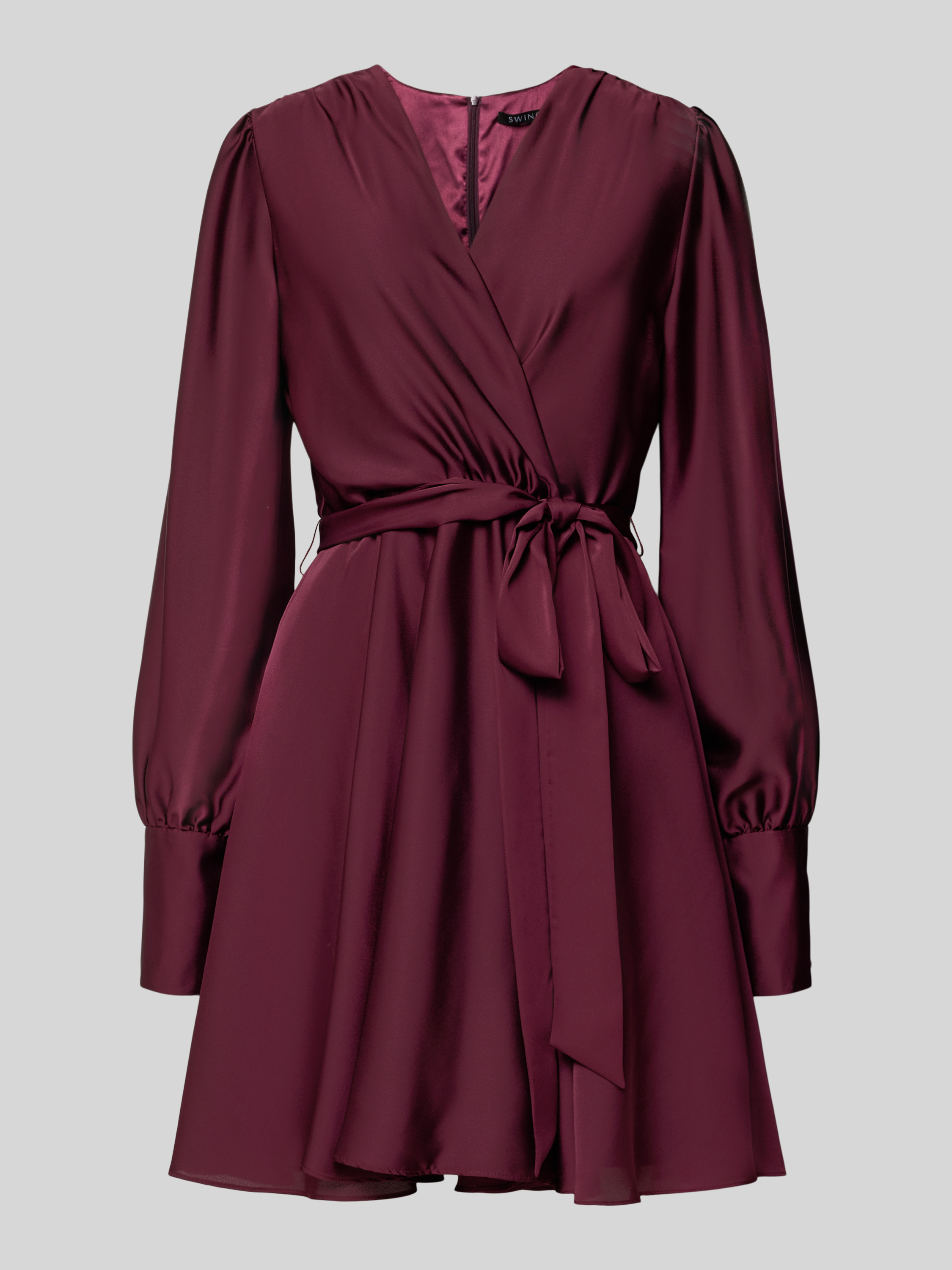 Das Damen Cocktailkleid von Swing zeigt sich durch einen taillierten Schnitt mit Wickel-Optik und Taillengürtel besonders schmeichelhaft. Dank Material-Mix mit Stretch-Anteil schmiegt es sich angenehm an und sorgt für komfortable Bewegungsfreiheit. Dezente Raffungen und ein blickdichtes Unterkleid runden den eleganten Gesamteindruck ab.