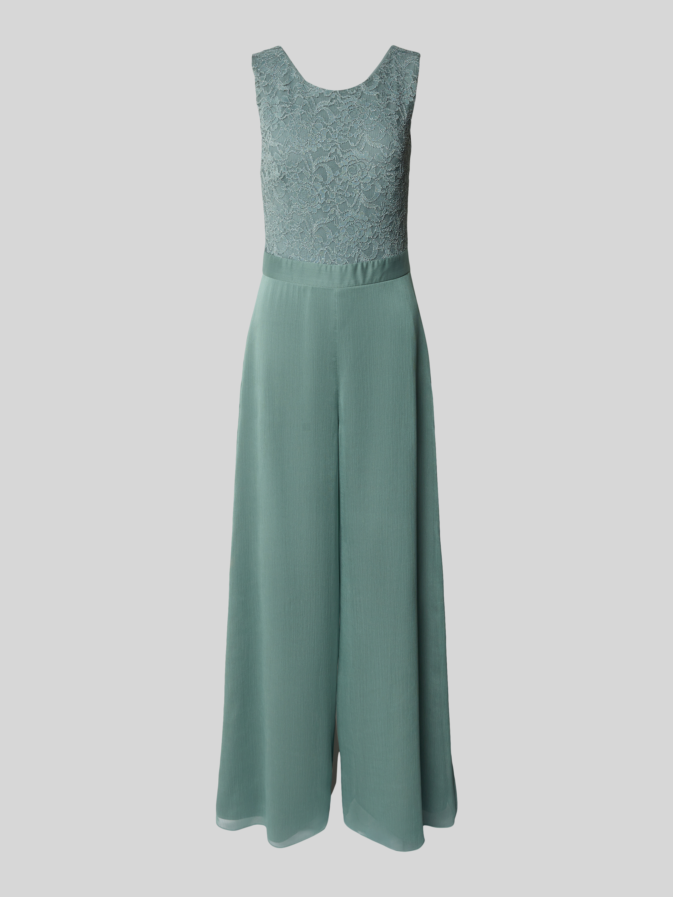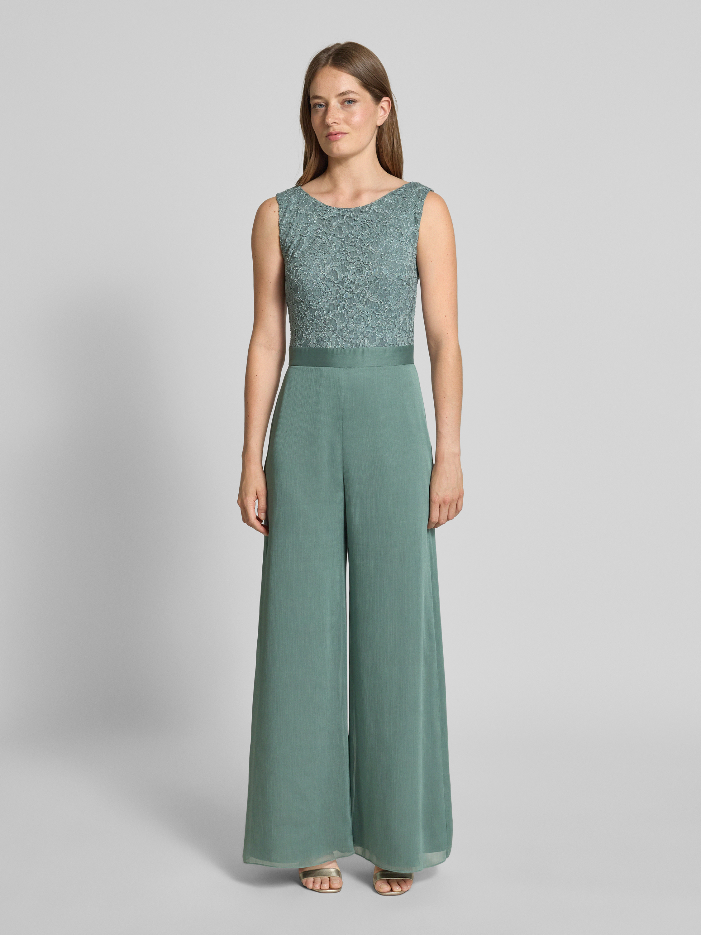 Der Jumpsuit von Swing kombiniert ein weites Bein mit einem eleganten Spitzenbesatz, wodurch eine ansprechende Silhouette entsteht. Der Rundhalsausschnitt und das Taillenband sorgen für einen harmonischen und schmeichelhaften Sitz. Ein stilvoller Begleiter für besondere Anlässe.