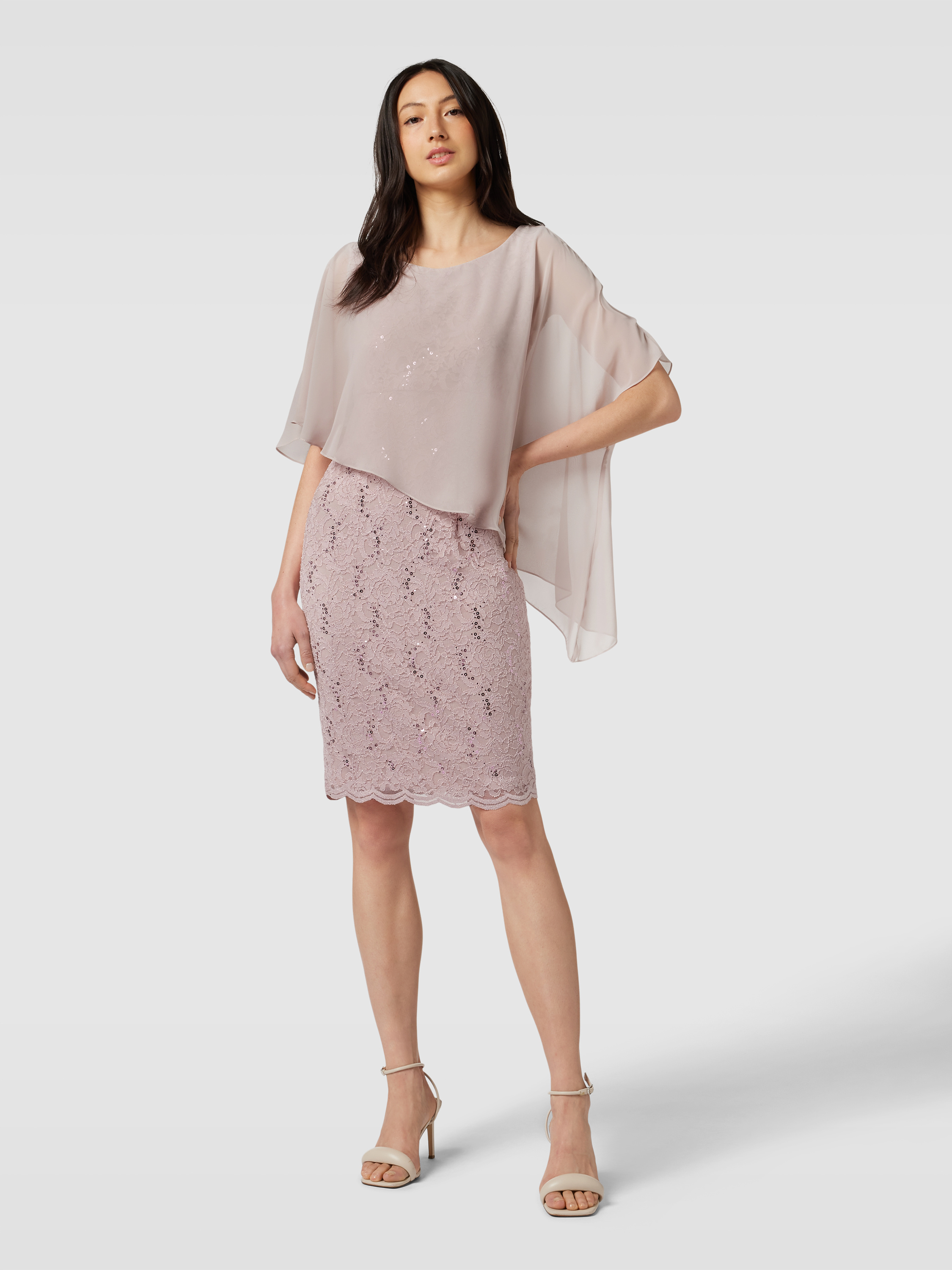 Das knielange Cocktailkleid von SWING vereint elegantes Design und hohen Tragekomfort durch seinen körpernahen Schnitt und den raffinierten Double-Layer-Look. Die feine Spitze und der dezente Paillettenbesatz schaffen eine harmonische Balance aus Glamour und Zurückhaltung. Mit asymmetrischen Details und einem klassischen Rundhalsausschnitt eignet es sich hervorragend für besondere Anlässe.