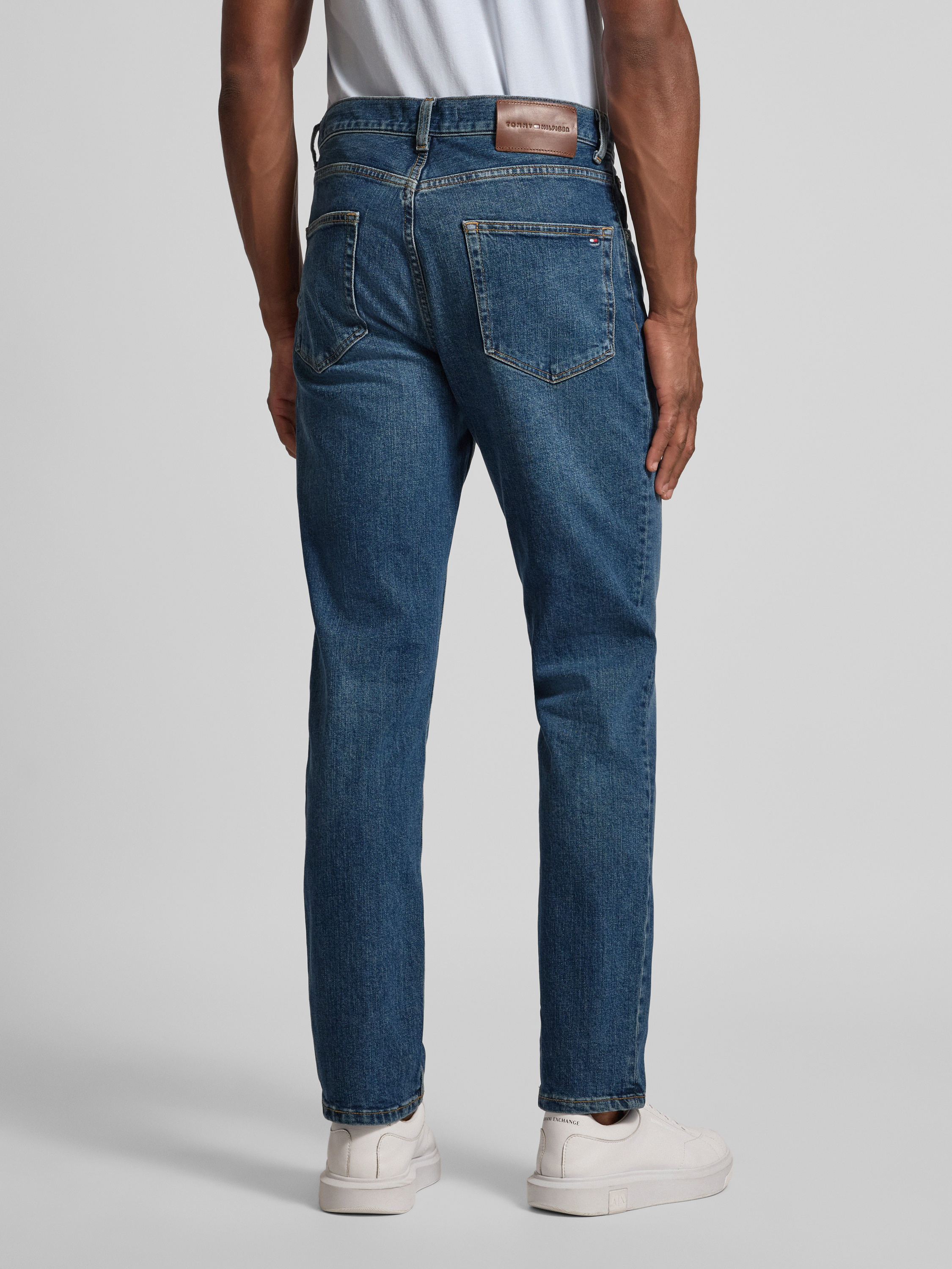 Die Straight Fit Jeans von Tommy Hilfiger, Modell Denton, sitzt durch ihren geraden Schnitt angenehm und ermöglicht Bewegungsfreiheit im Alltag. Der weiche Baumwoll-Mix sorgt für ein angenehmes Tragegefühl, während die dezente Melange-Optik vielseitig kombinierbar bleibt. Dezente Details wie Label Patch und Nieten unterstreichen das klassische Design.