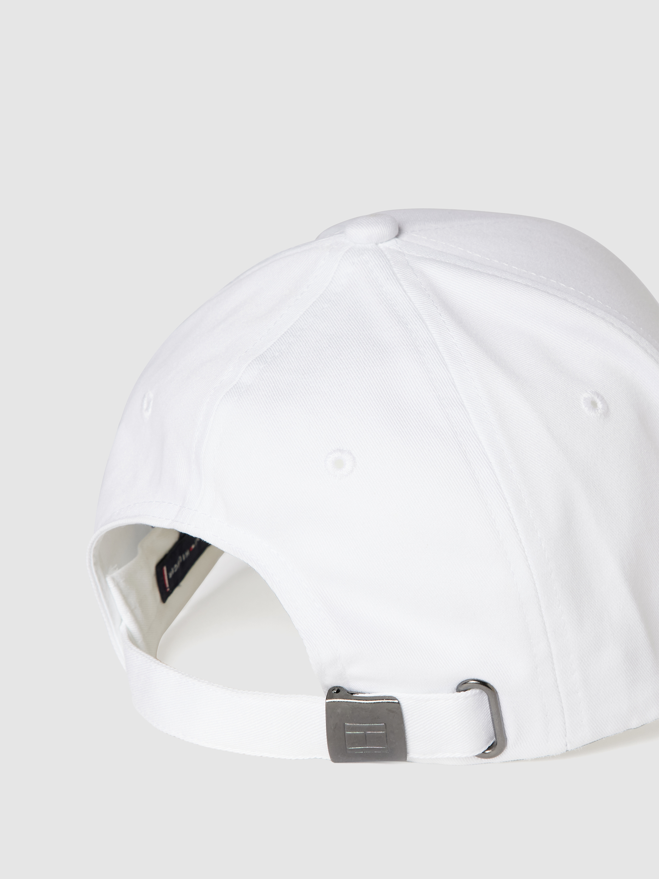 Die Basecap von Tommy Hilfiger ist aus reiner Baumwolle gefertigt. Sie kommt mit verstärktem Schirm, eingestickten Luftlöchern, verstellbarem Riegel sowie Logo-Stitching.