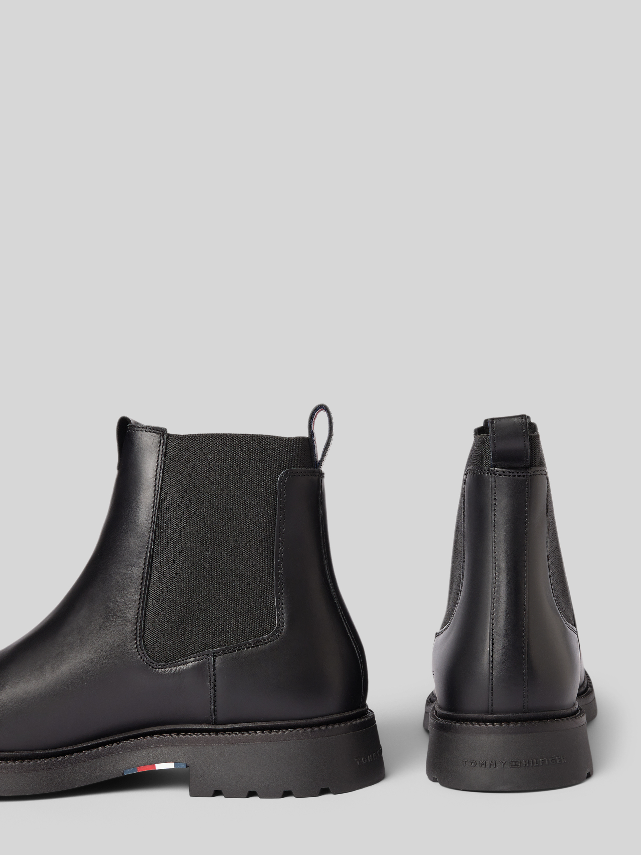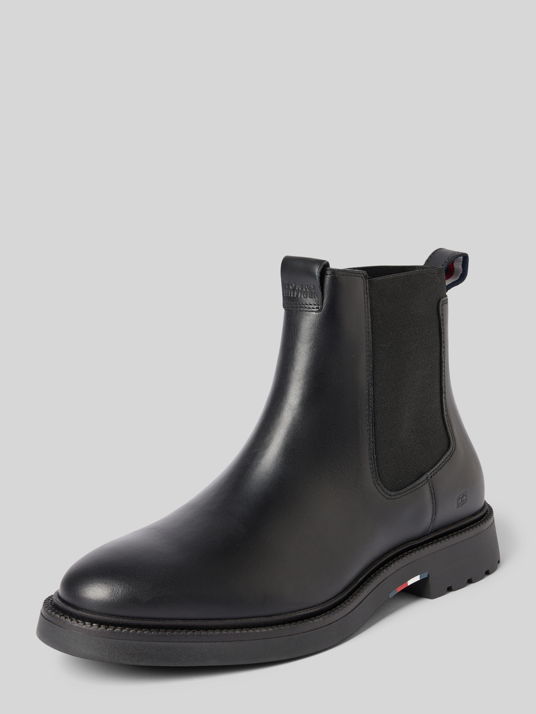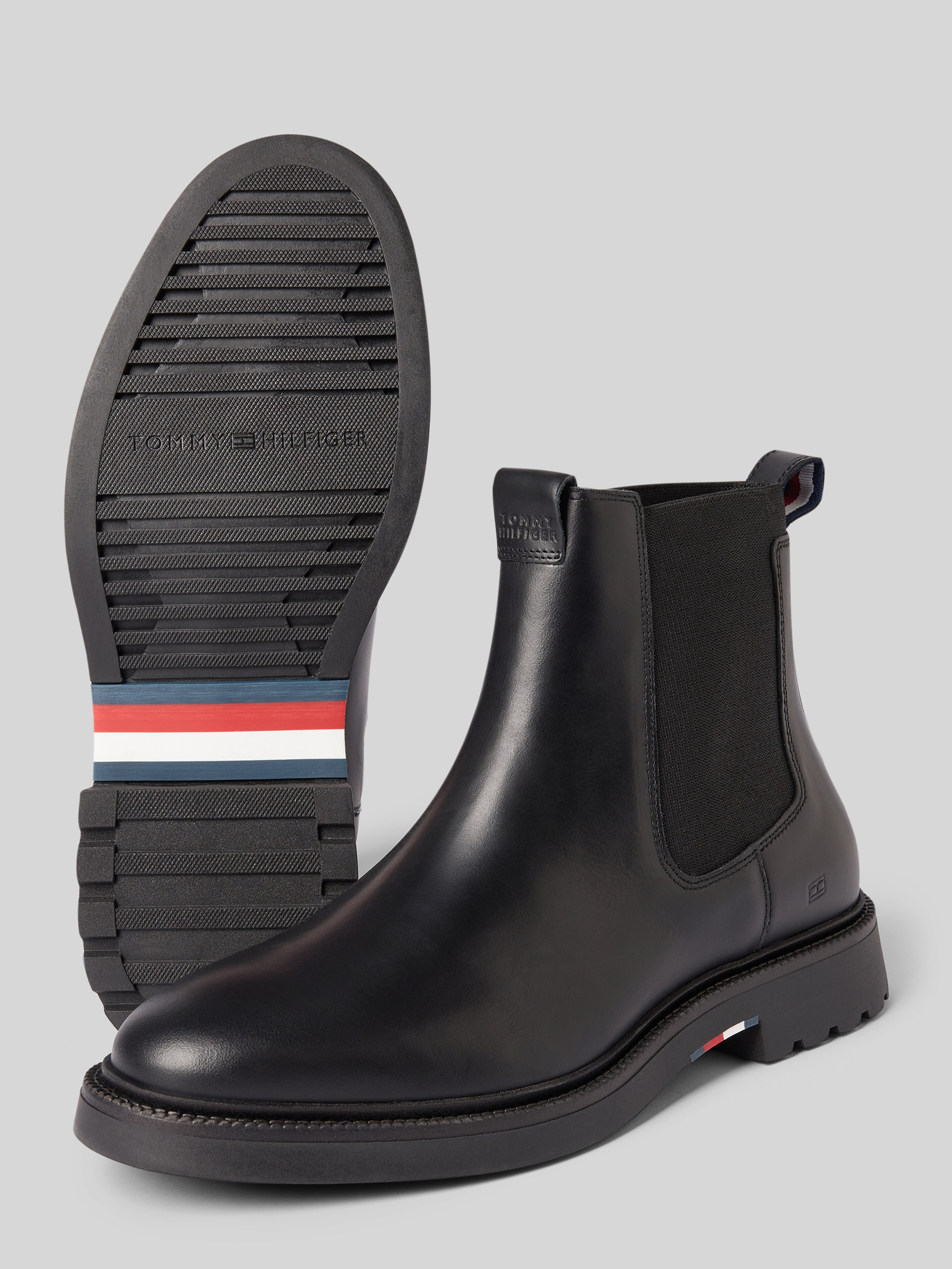 Die Herren Chelsea-Boots von Tommy Hilfiger zeigen sich in schlichter Unifarben-Optik und setzen auf abgerundete Schuhspitzen sowie einen Blockabsatz. Gefertigt aus echtem Leder, punktet das Glattleder durch seine angenehm glatte Oberfläche und langlebige Verarbeitung. Durch die profilierte Sohle und den bequemen Schlupfeinstieg gestaltet sich das Tragen im Alltag unkompliziert und komfortabel.