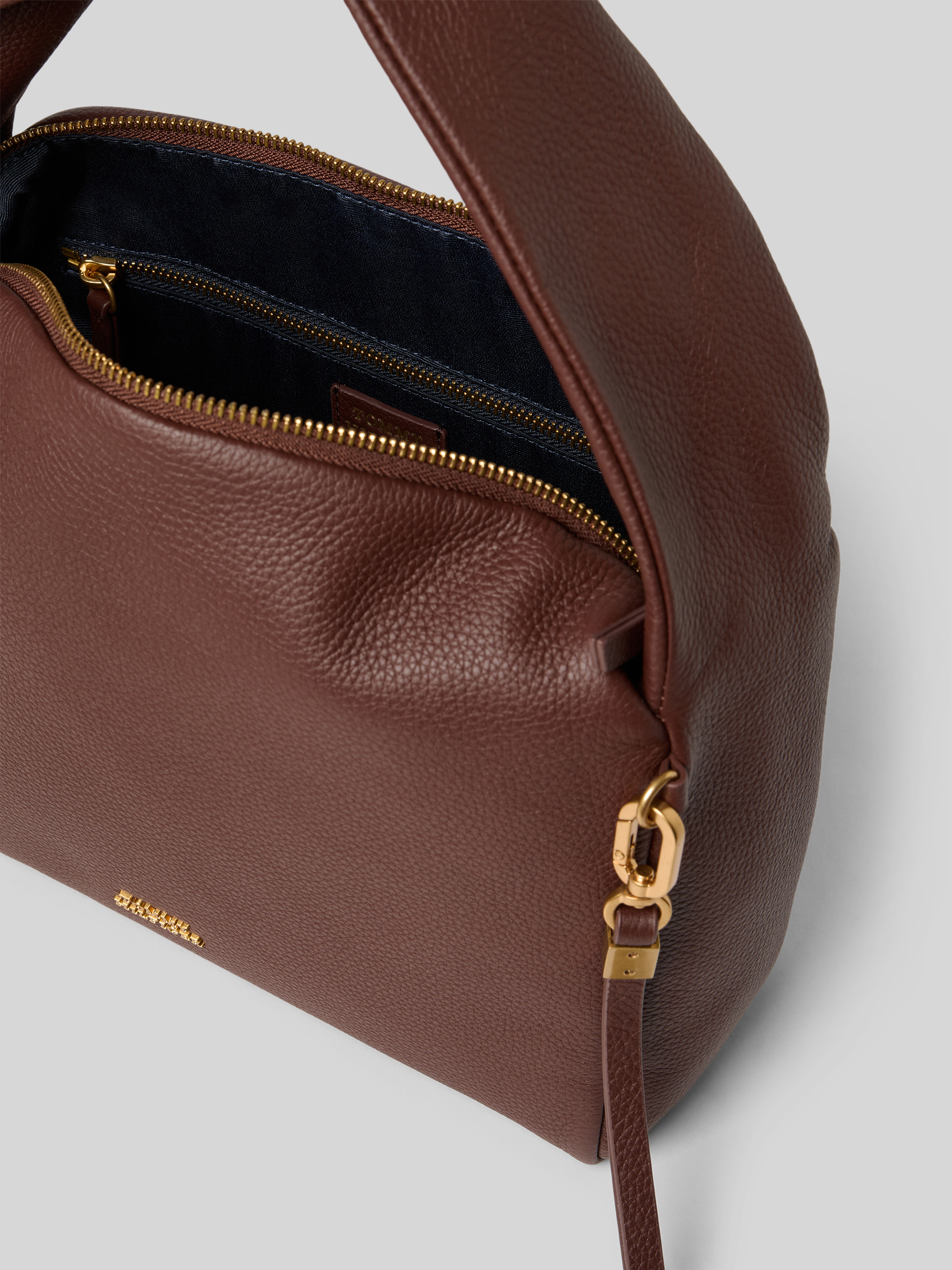 • Tommy Hilfiger Henkeltasche aus echtem Rindsleder Dunkelbraun
