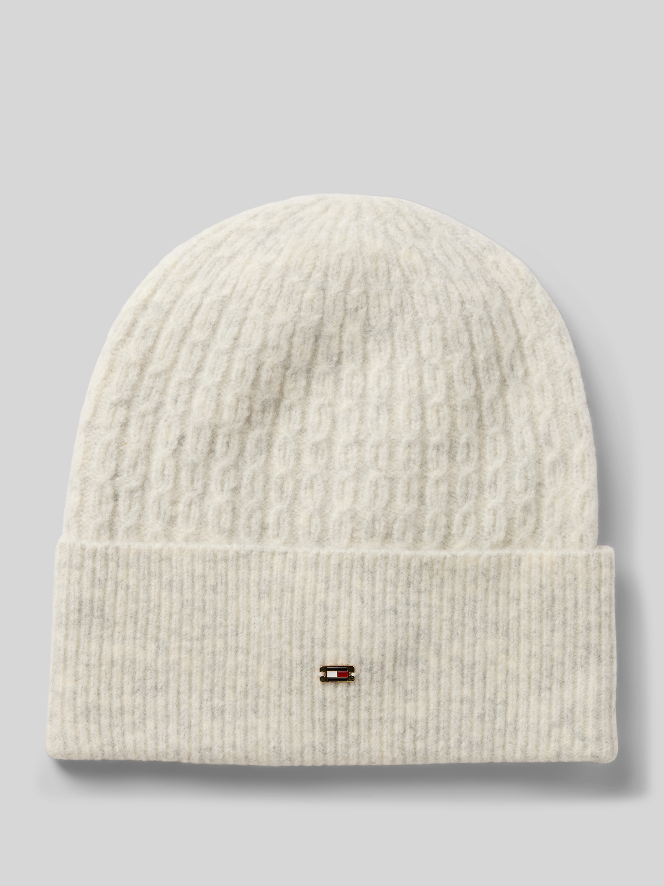 Die Damen Mütze von Tommy Hilfiger zeigt sich in Melange-Optik mit ausdrucksvollem Zopfstrick-Muster und setzt durch die Logo-Applikation einen dezenten Akzent. Der breite Umschlag sorgt für angenehmen Sitz und hält zuverlässig warm. Durch die Materialverarbeitung im Strick fühlt sich das Modell weich an und passt sich flexibel an.