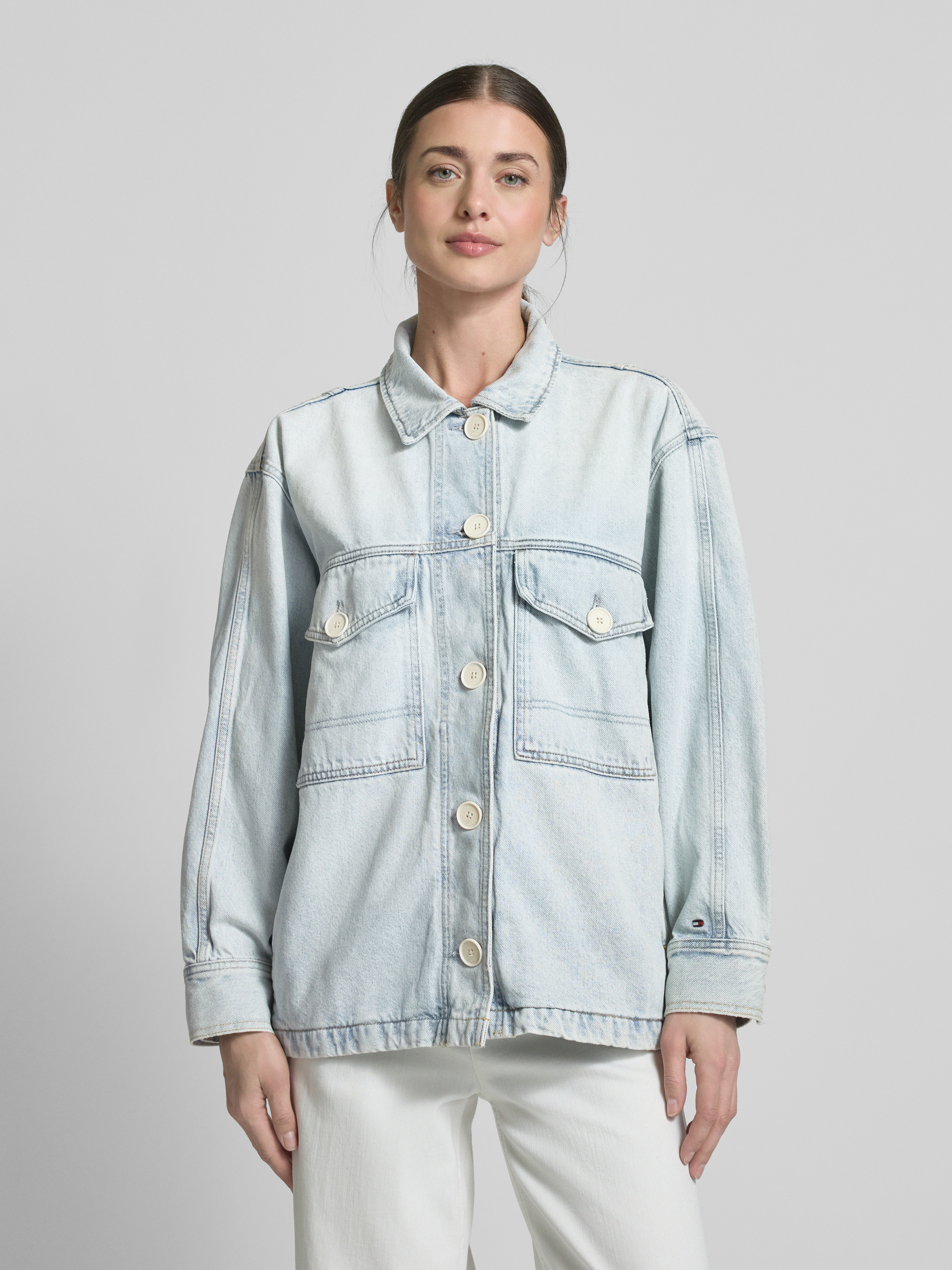 Tommy HilfigerOversized Jeansjacke aus Baumwoll-Lyocell-Mix in hellblau