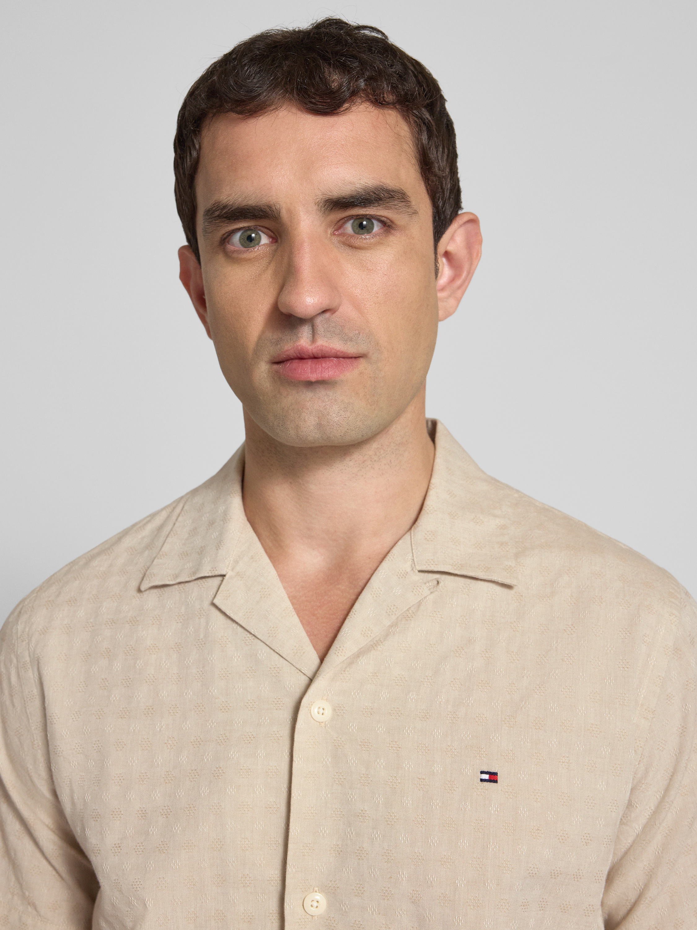 Das Freizeithemd von Tommy Hilfiger, gefertigt aus einem Baumwoll-Leinen-Mix, bietet durch seine Regular Fit-Passform eine angenehme Bewegungsfreiheit. Die Melange-Optik und die Dobby-Struktur verleihen dem Hemd eine dezente Eleganz, während der Reverskragen und die kurzen Ärmel für einen entspannten Look sorgen. Ideal für legere Anlässe geeignet.