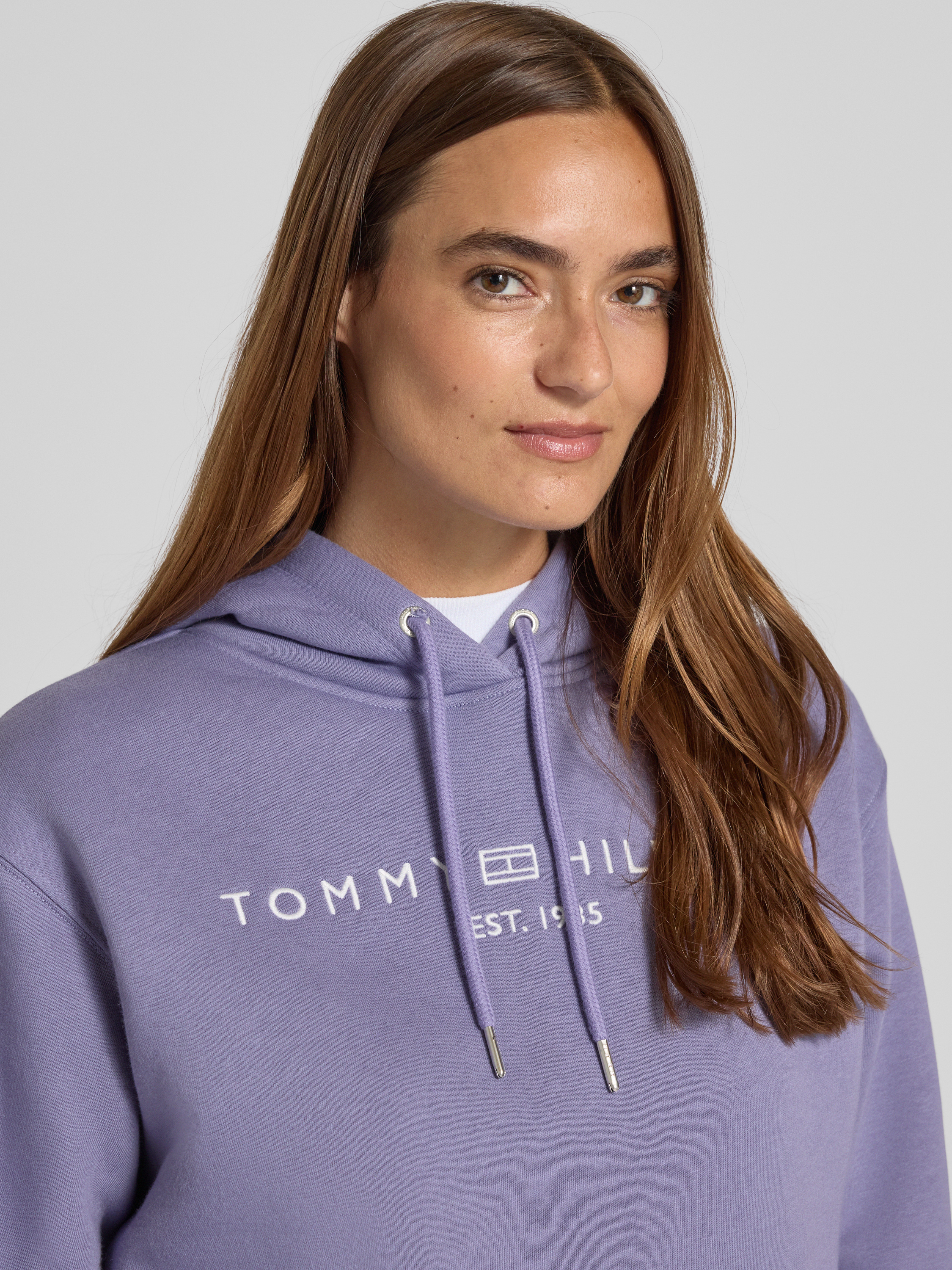 Der Damen Hoodie von Tommy Hilfiger zeigt sich im unifarbenen Look und sorgt durch seinen Regular Fit für angenehme Bewegungsfreiheit im Alltag. Die weiche Sweat-Qualität aus Baumwoll-Mix liegt komfortabel auf der Haut, während die Kapuze mit Tunnelzug zusätzlichen Schutz spendet. Dezente Label-Details setzen sportliche Akzente.