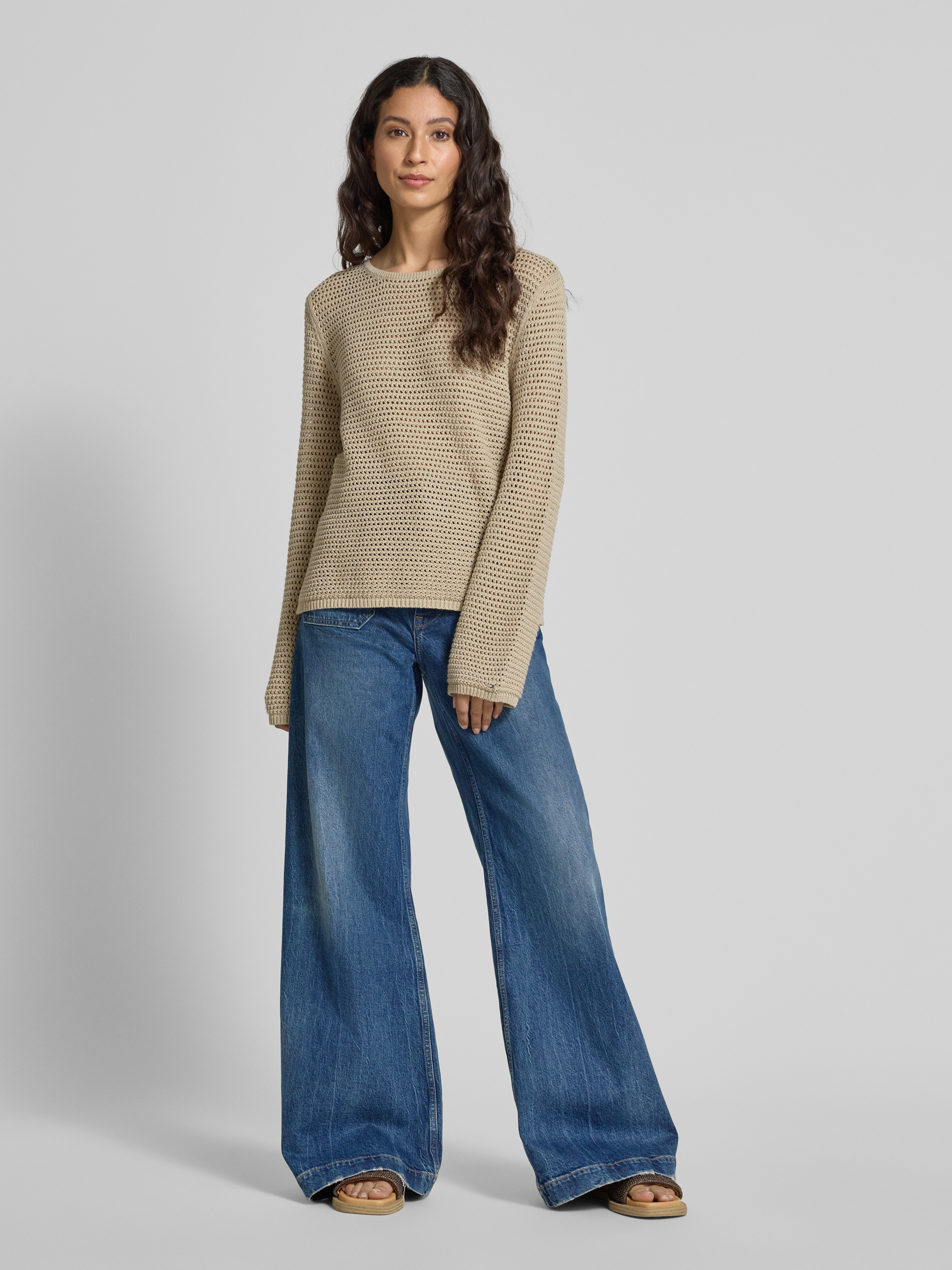 Der Damen Pullover von Tommy Hilfiger, in Regular Fit, kombiniert ein elegantes Pointelle-Muster mit einem schmeichelhaften U-Boot-Ausschnitt. Die Trompetenärmel verleihen dem Baumwoll-Mix eine feminine Note, während das Häkel-Design eine luftige, leichte Struktur bietet, die sich angenehm tragen lässt.
