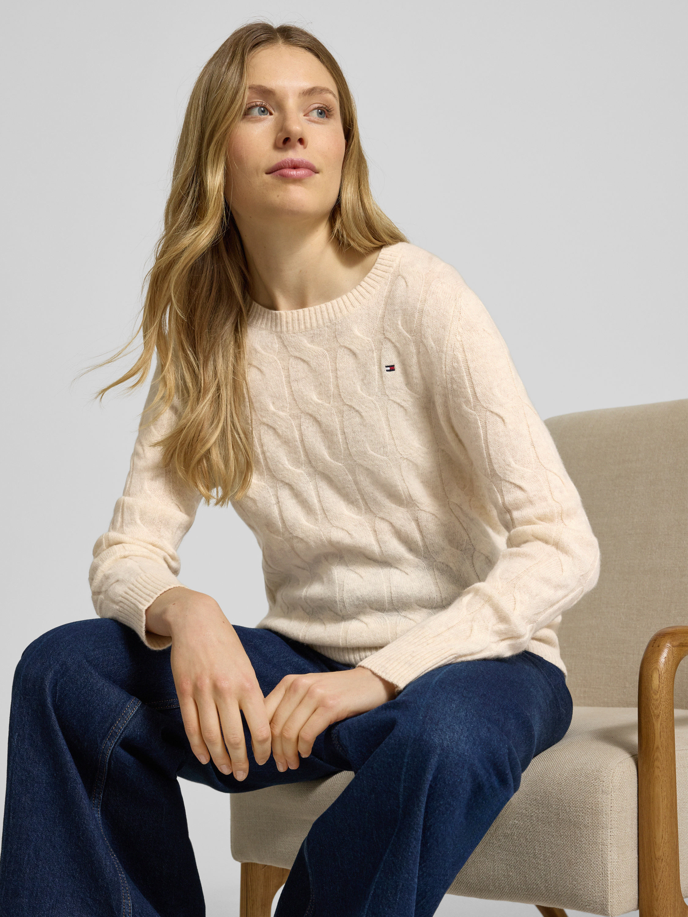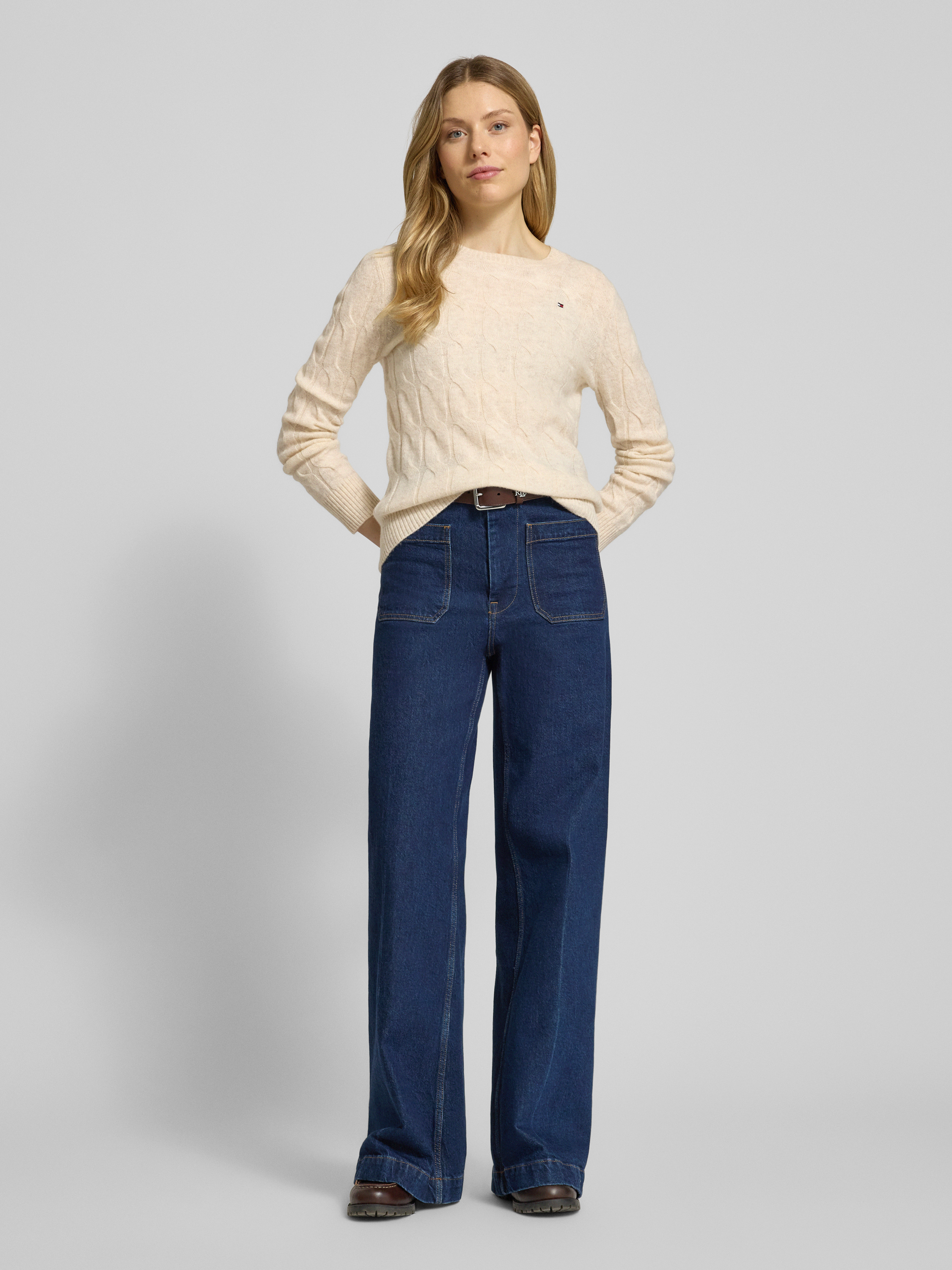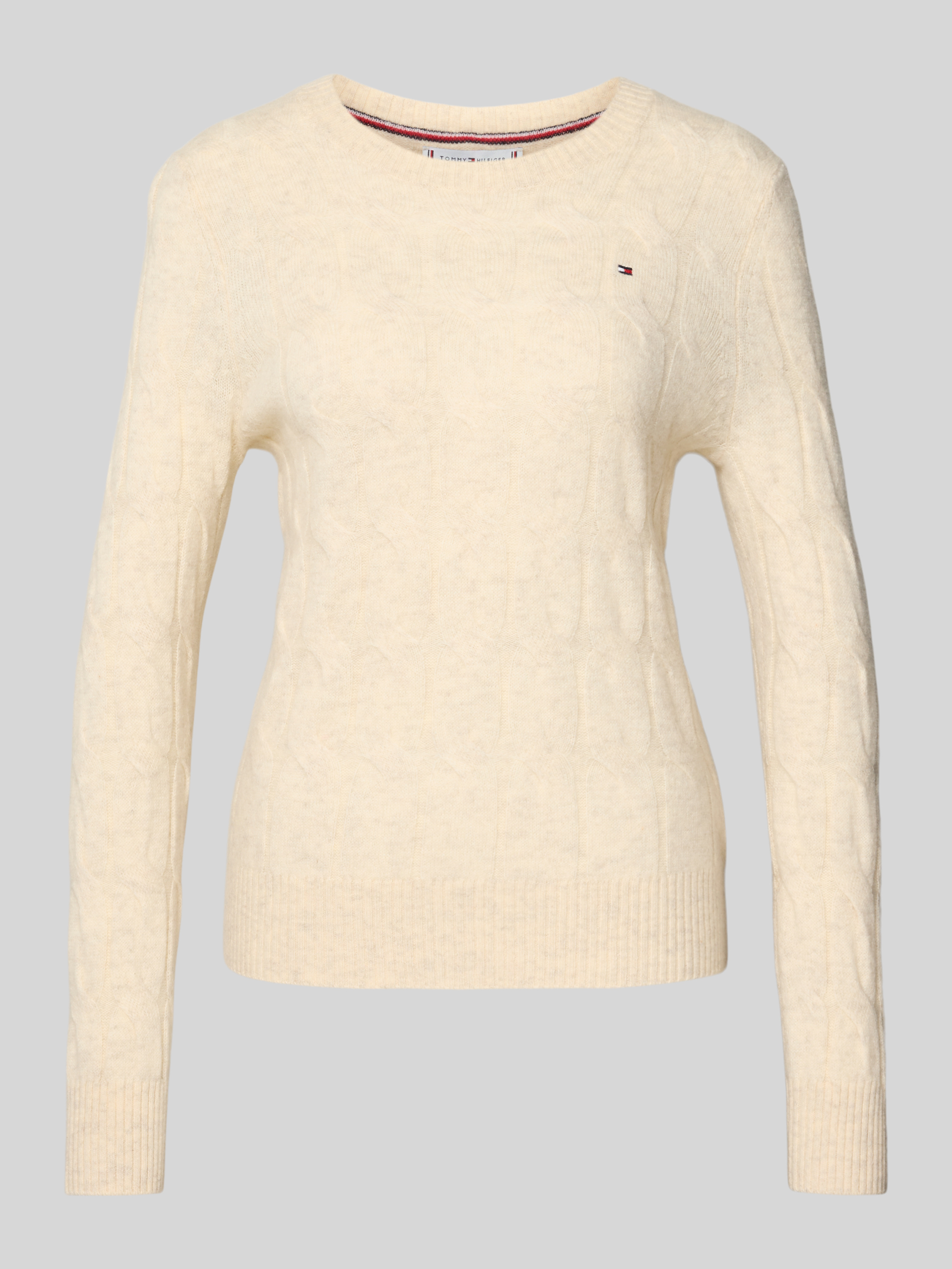 Der Damen Regular Fit Strickpullover von Tommy Hilfiger zeichnet sich durch reine Wolle aus, wodurch ein angenehmes Tragegefühl entsteht und sich die natürliche Wärme besonders an kühleren Tagen bemerkbar macht. Das feine Zopf-Muster und die unifarbene Optik geben dem Strickpullover einen zeitgemäßen, vielseitigen Charakter. Durch den klassischen Rundhals und die langen Ärmel eignet sich das Modell sowohl für entspannte Momente als auch für den Alltag.