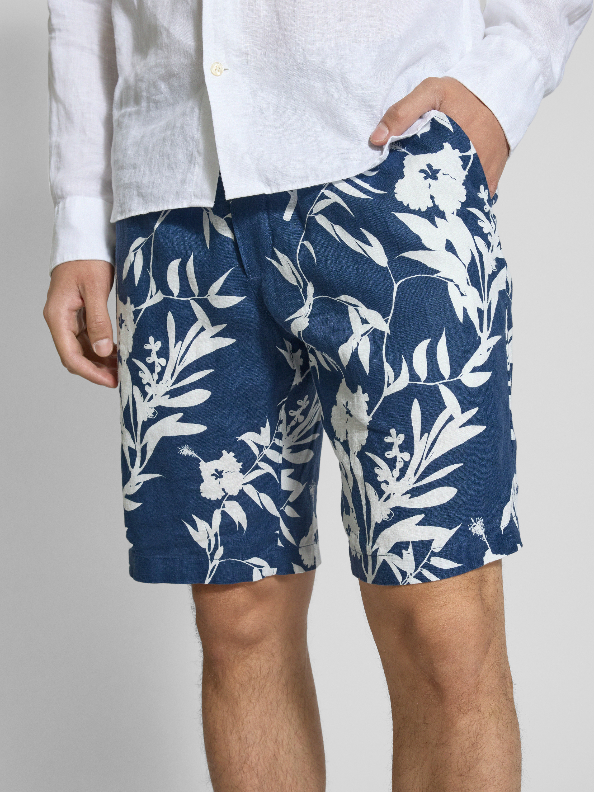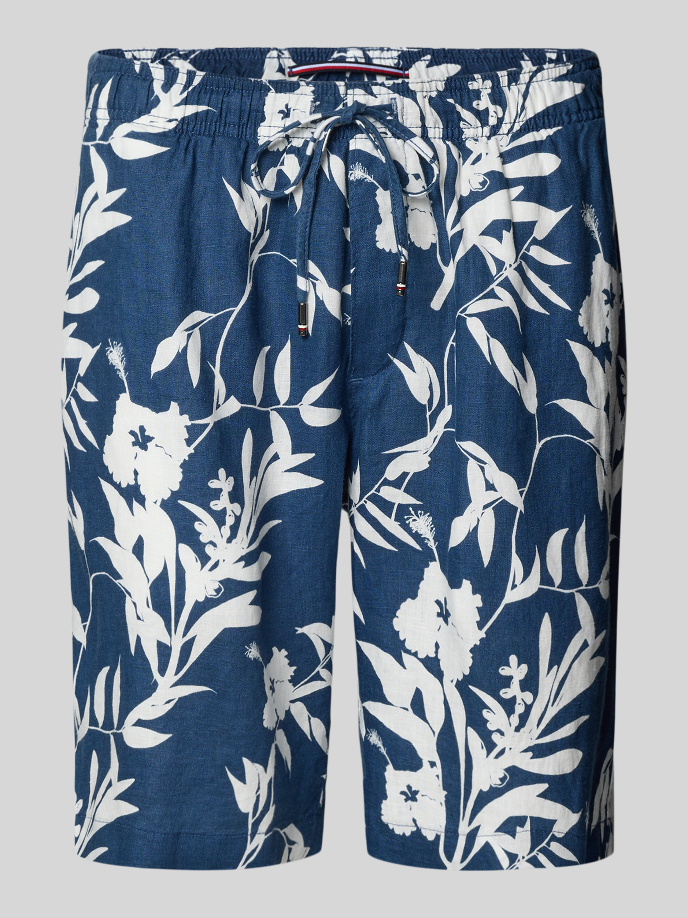 Die relaxed geschnittenen Bermudas 'Harlem' von Tommy Hilfiger präsentieren sich in einem tropischen Allover-Muster. Gefertigt aus reinem Leinen, sorgen sie für angenehme Leichtigkeit an warmen Tagen. Praktische Details wie seitliche Eingrifftaschen und ein elastischer Bund runden das Design ab.