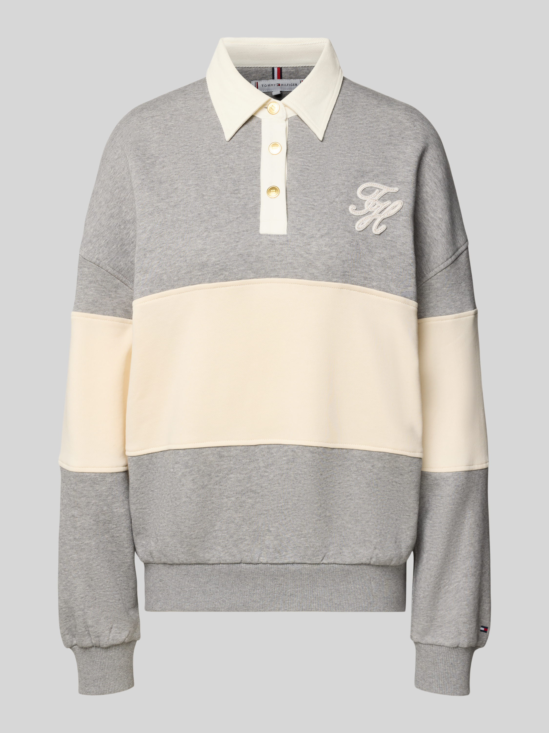 Das Damen Sweatshirt von Tommy Hilfiger präsentiert sich im entspannten Schnitt und schafft durch die Two Tone-Optik einen modernen Akzent. Der klassische Polokragen ergänzt den legeren Stil, während das angenehme Baumwoll-Mix-Material für ein angenehmes Tragegefühl im Alltag sorgt. Dezentes Logo-Stitching rundet das Gesamtbild ab.