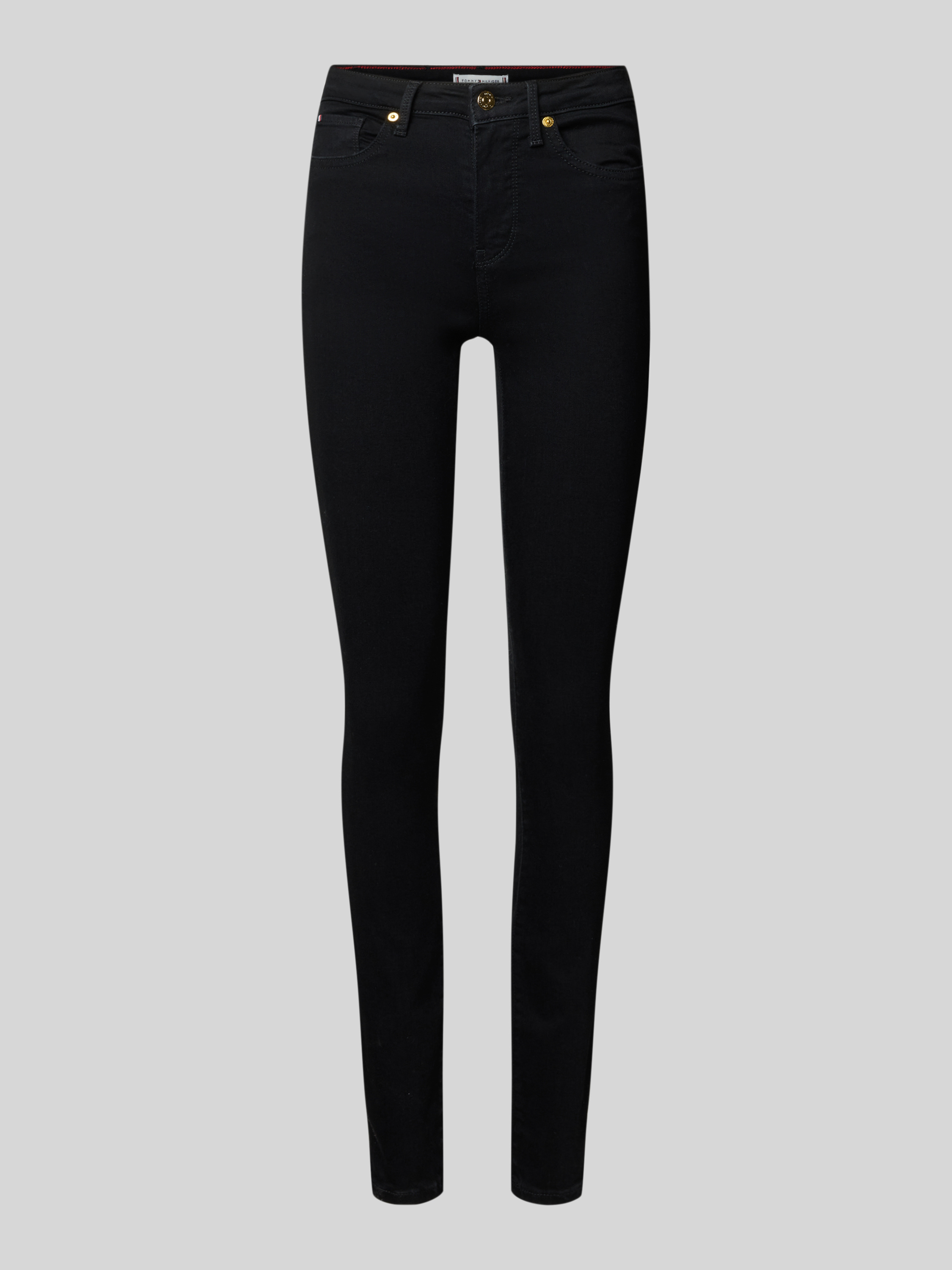 Die Damen Skinny Fit Jeans von Tommy Hilfiger, Modell 'Como', legt sich dank des Baumwoll-Mix geschmeidig an und sorgt für ein angenehmes Tragegefühl. Der Mid Waist Schnitt bringt Alltagstauglichkeit mit modischer Silhouette zusammen, während dezente Details wie das Label Patch Akzente setzen. Durch das klassische 5-Pocket-Design eignet sich die Hose für verschiedenste Anlässe und kombiniert Funktionalität mit klarer Optik.