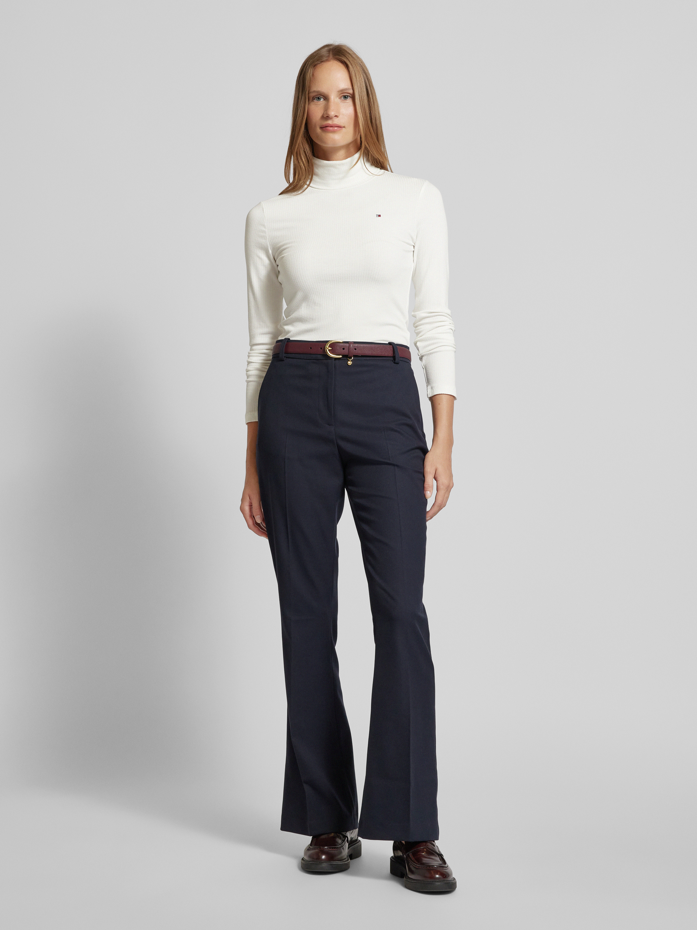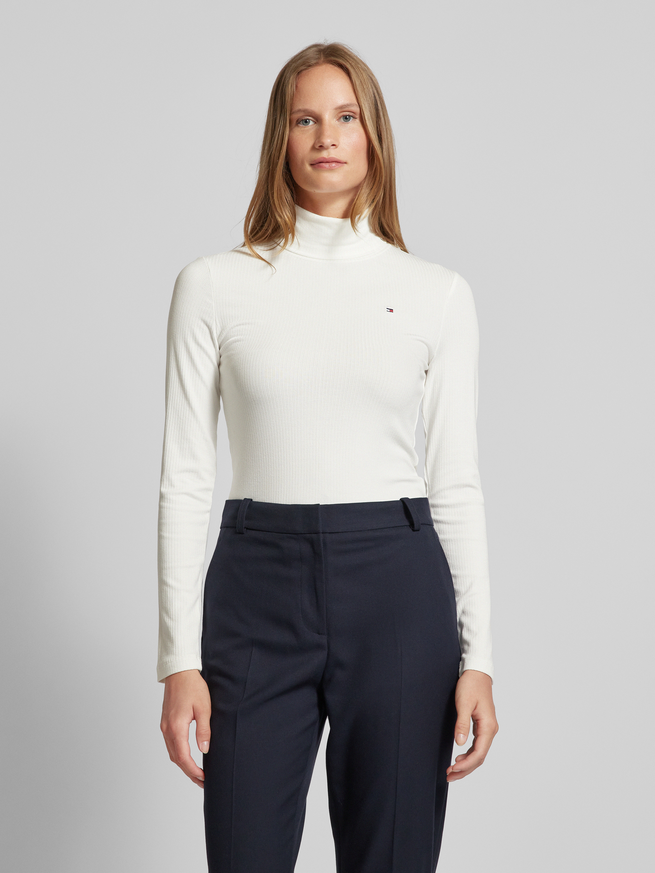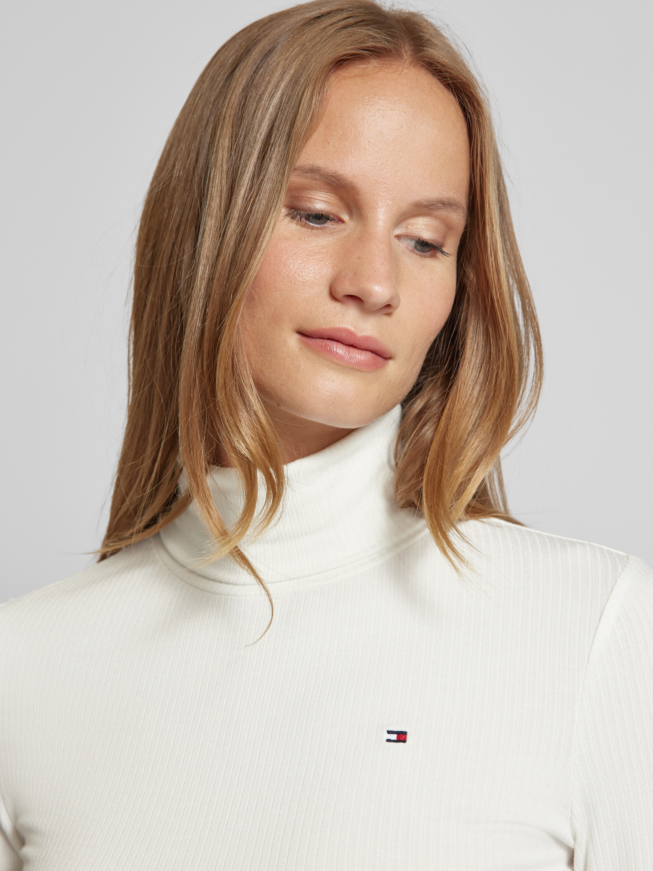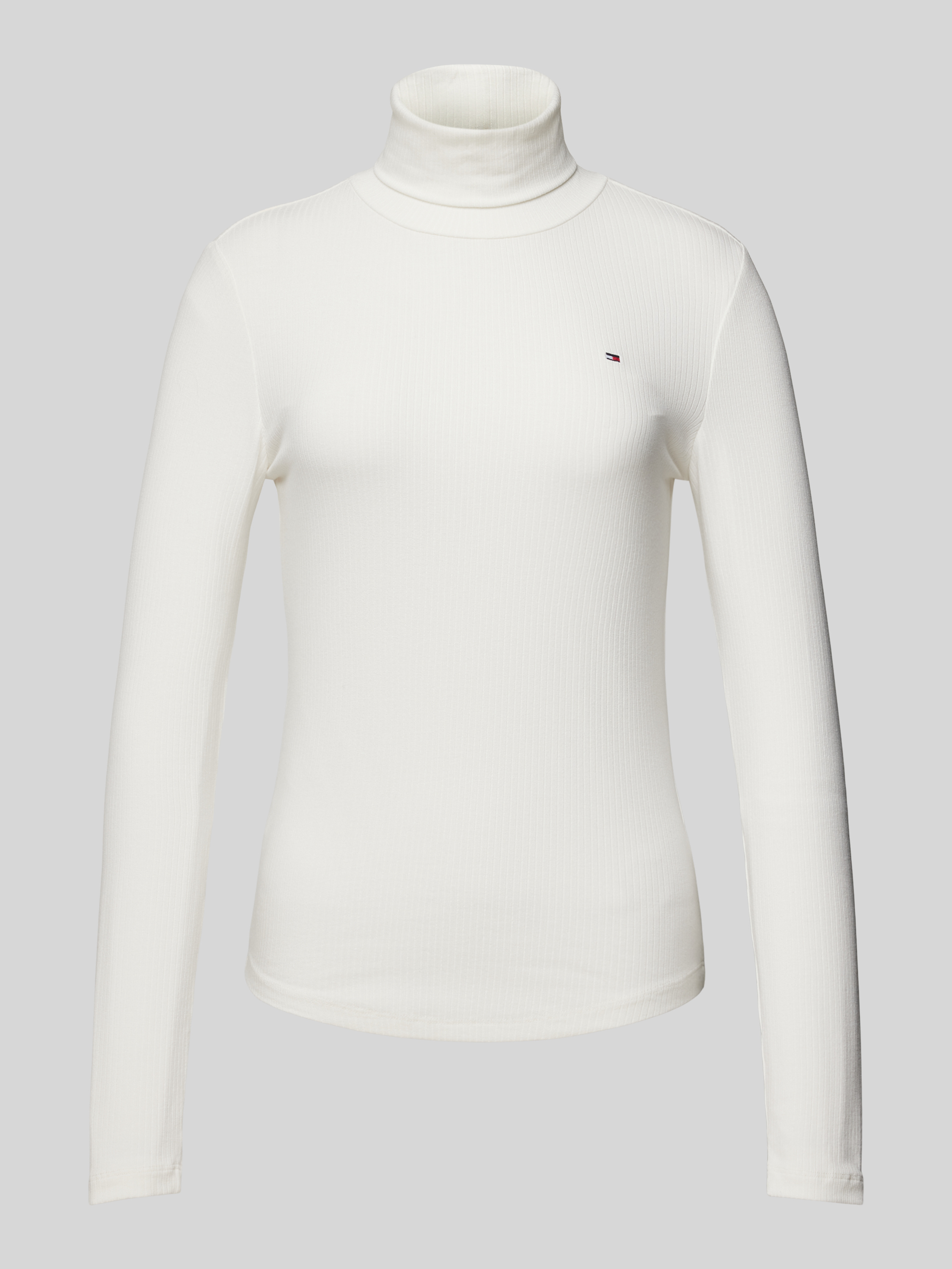 Das Slim Fit Longsleeve von Tommy Hilfiger zeichnet sich durch einen eleganten Rollkragen aus und liegt dank des Viskose-Elasthan-Mixes angenehm am Körper. Das dezente Logo-Stitching verleiht dem Oberteil einen besonderen Akzent, während der figurbetonte Schnitt die Silhouette vorteilhaft betont.