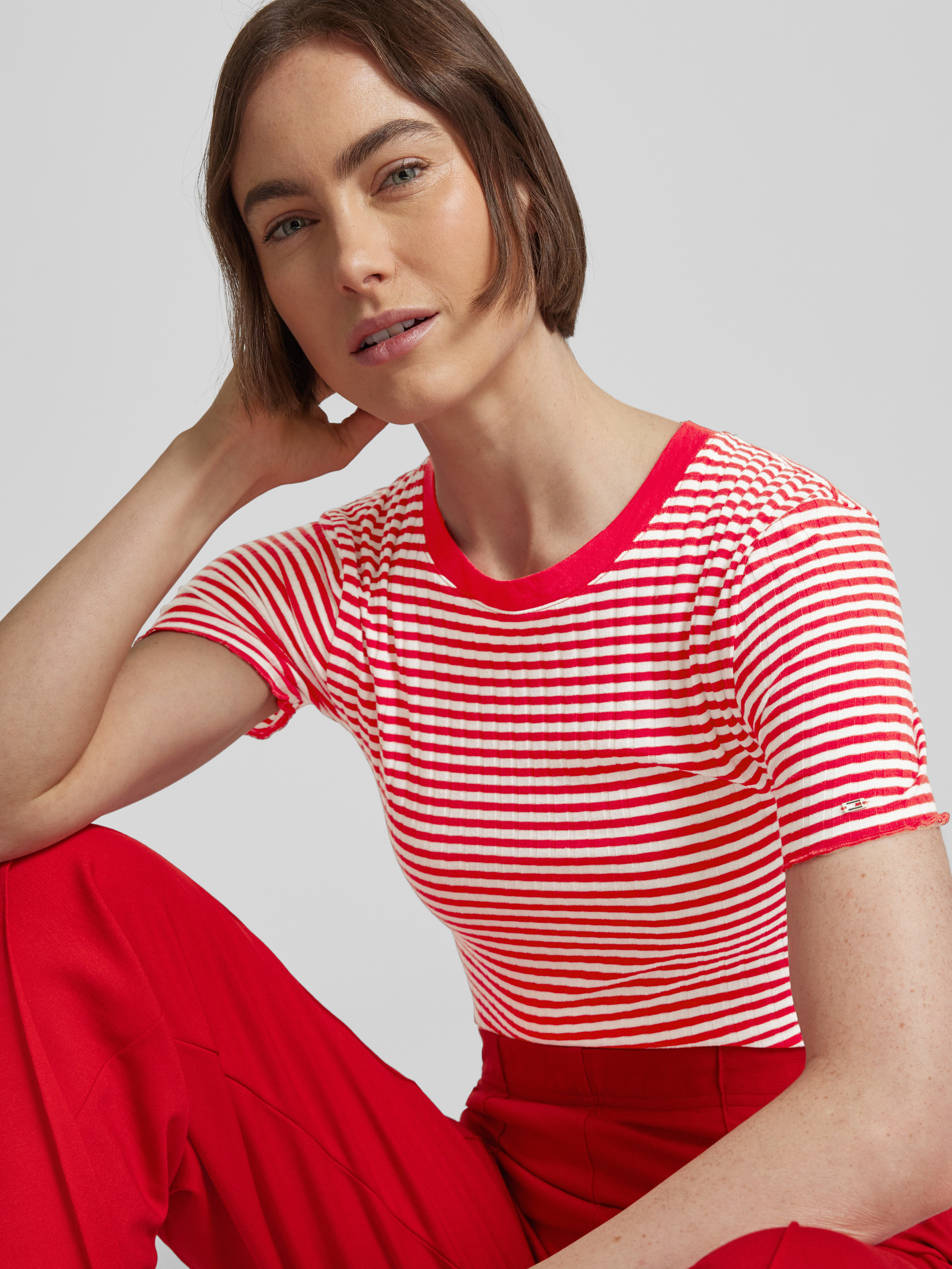 Tommy HilfigerSlim Fit T-Shirt mit Streifenmuster in rot