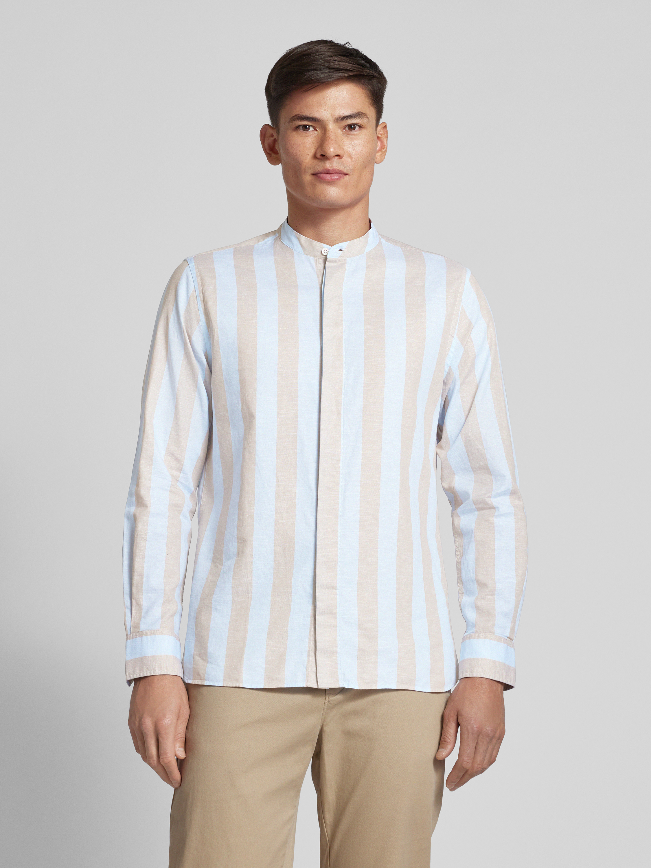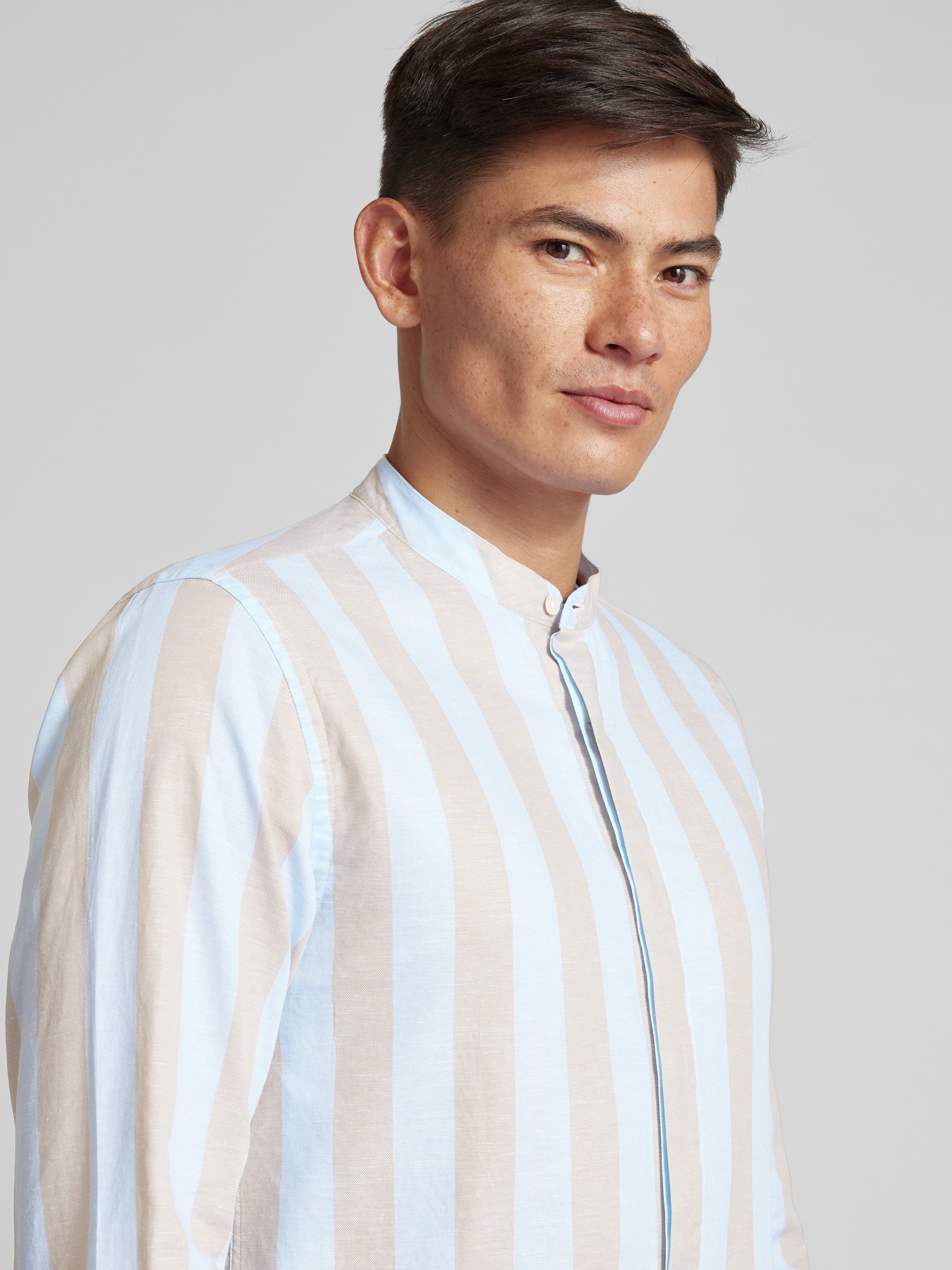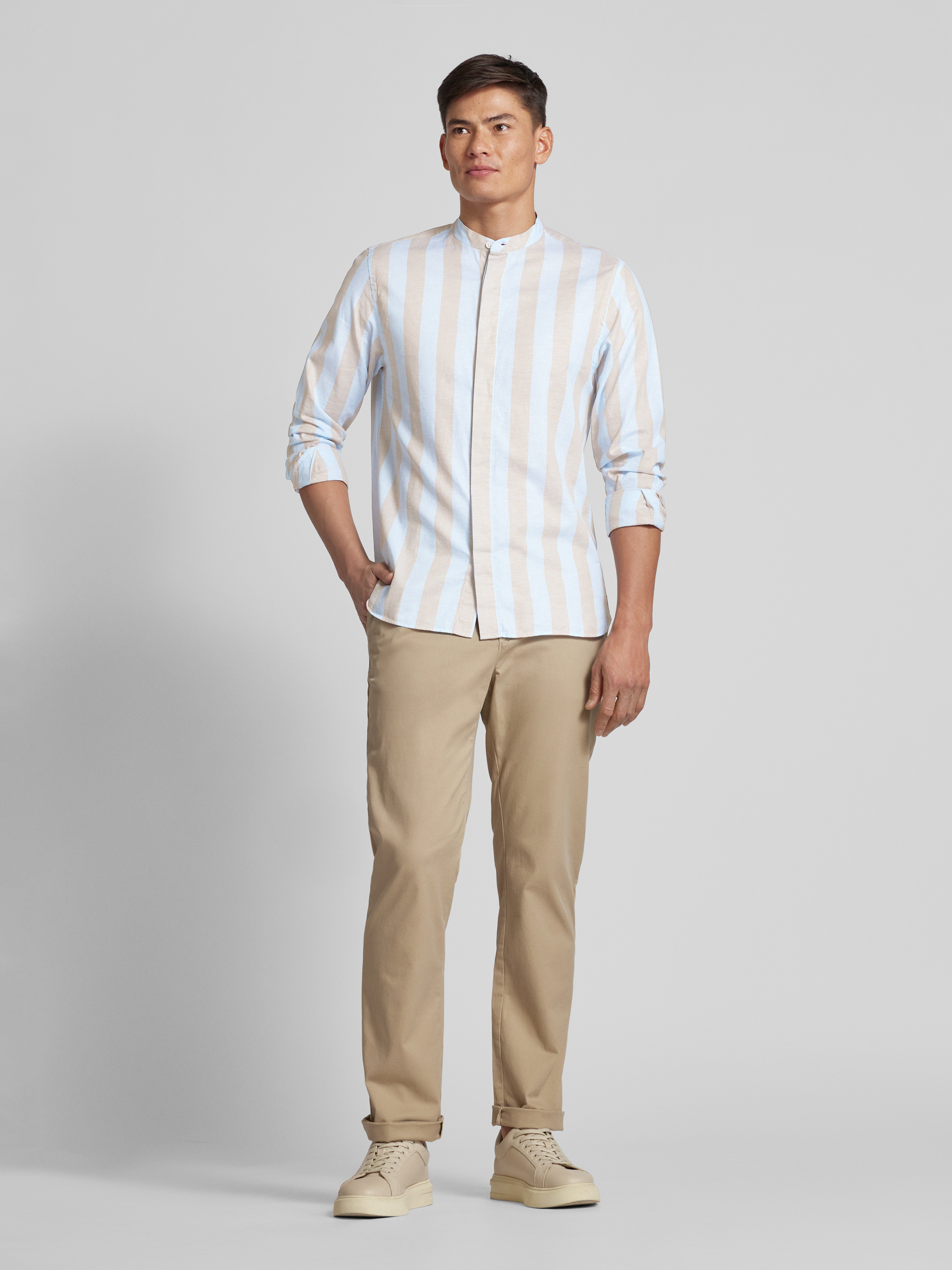 Das Herren Freizeithemd von Tommy Hilfiger, Modell 'BOLD', überzeugt mit einem Baumwoll-Leinen-Mix, der durch seine atmungsaktive und leichte Textur besticht. Der Regular Fit sorgt für eine bequeme Passform, während der Maokragen und das unifarbene Design einen modernen, lässigen Look bieten.