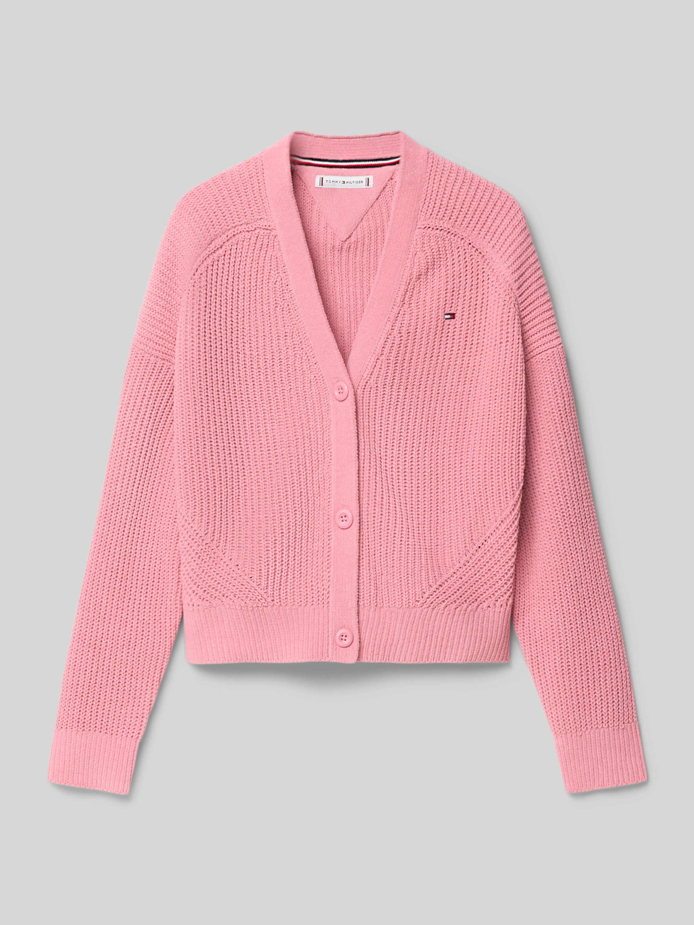Tommy Hilfiger TeensRegular Fit Strickjacke mit Rippenstruktur modell 'CHENILLE'' in pink