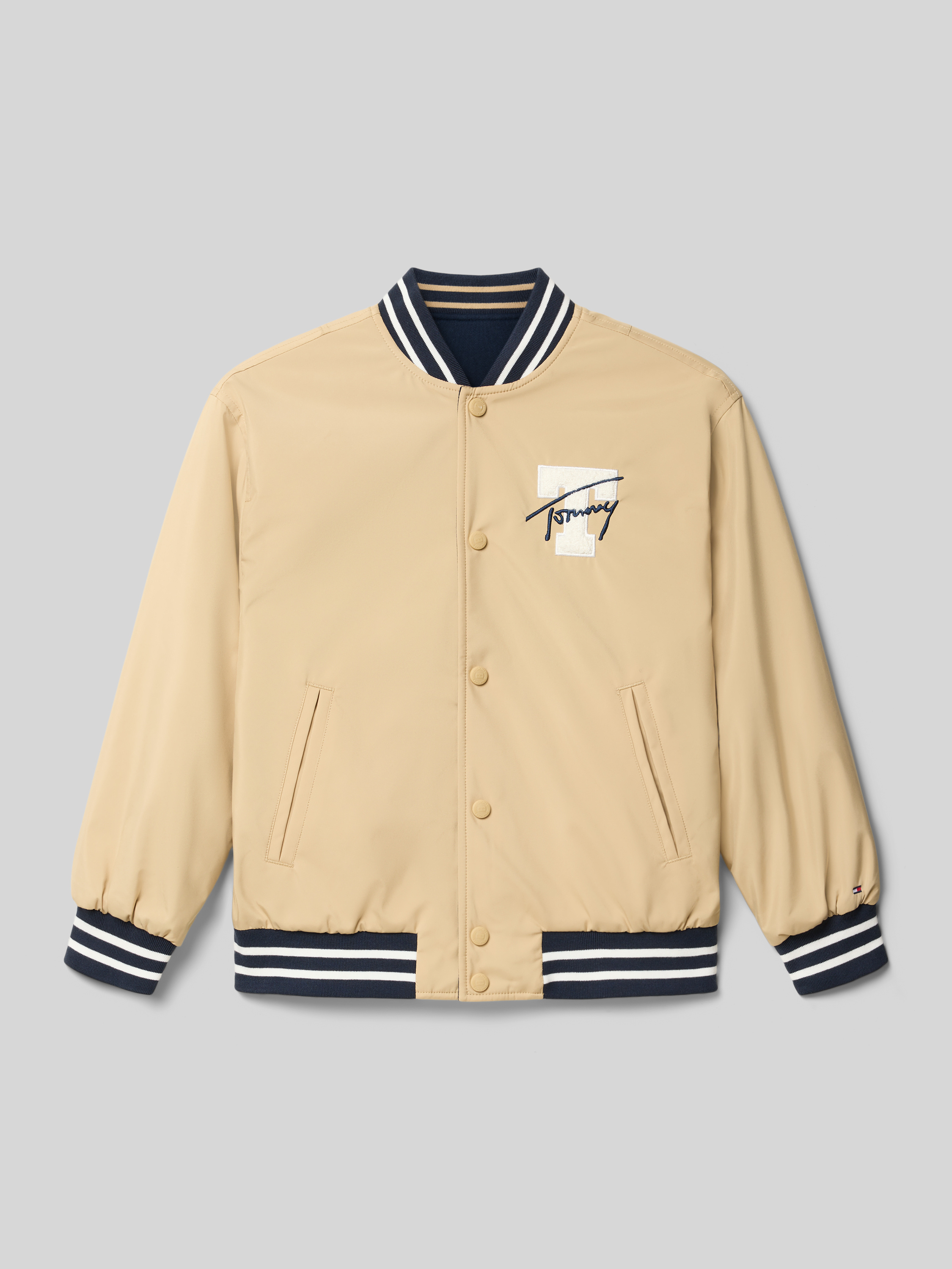 Der Regular Fit Wende-Blouson von Tommy Hilfiger Teens bietet eine vielseitige Lösung für junge Modefans. Dank des hochwertigen Baumwoll-Mix und der Wendemöglichkeit kann man unkompliziert zwischen verschiedenen Looks wechseln. Der Stehkragen und die langen Ärmel ergänzen das zeitlose Design ideal.