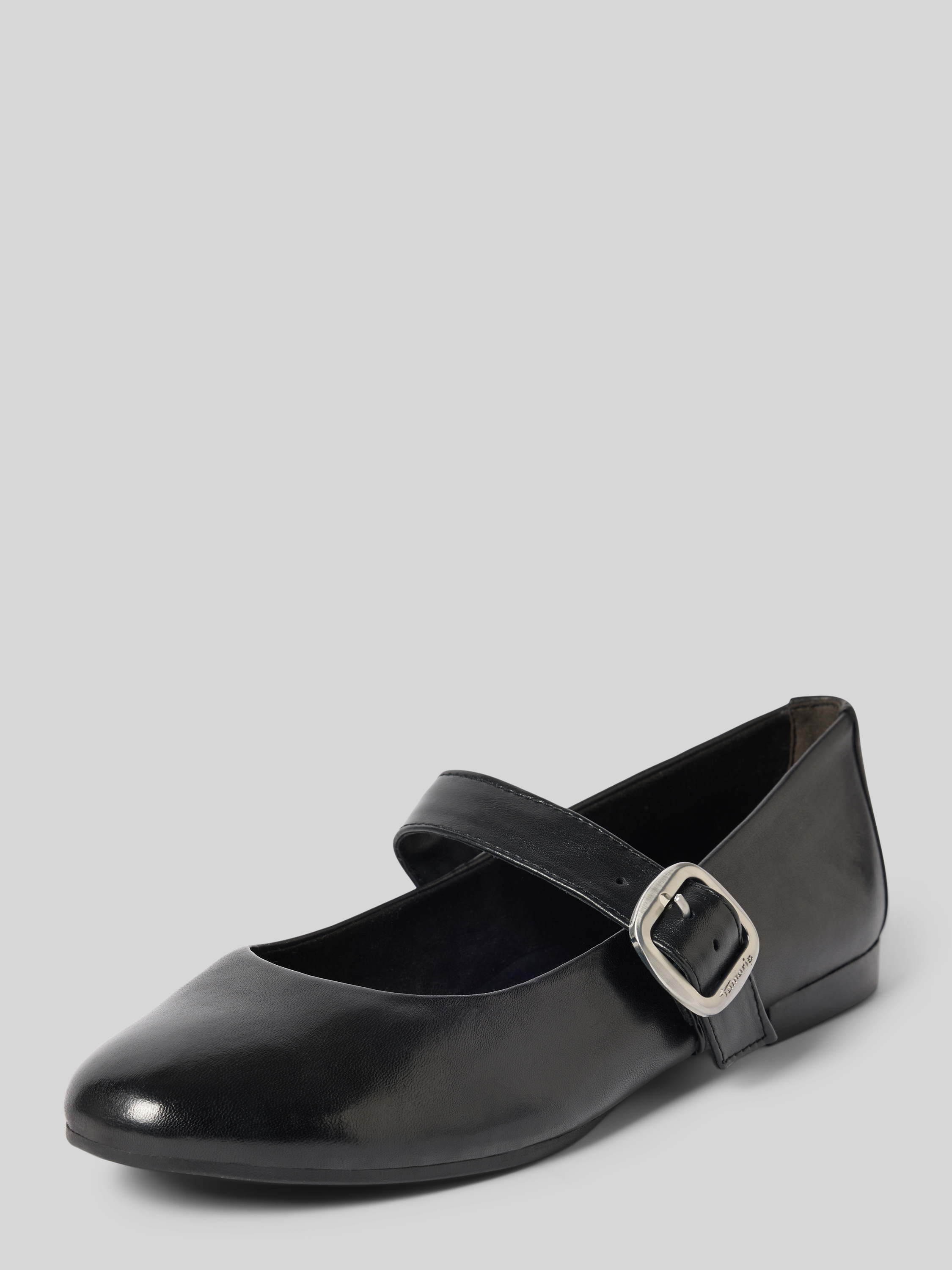 Die Damen Ballerinas von Tamaris, gefertigt aus echtem Leder, zeichnen sich durch eine abgerundete Spitze und eine dezente Dornschließe aus. Ein stabiler Blockabsatz sorgt für angenehmen Tragekomfort, während die strukturierte Sohle sicheren Halt bietet. Ideal für Alltag und besondere Anlässe.