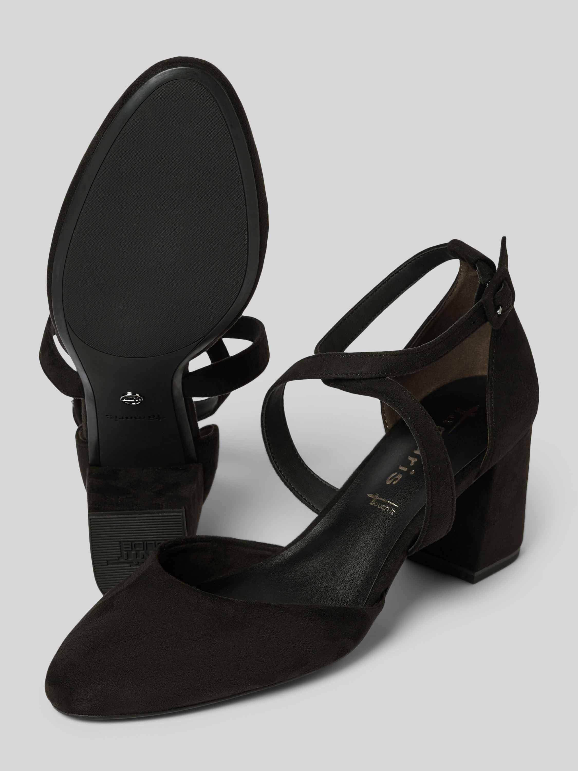 Die Pumps mit Kreuzriemen von Tamaris zeigen sich in klarer, unifarbener Optik und setzen mit spitzer Schuhspitze sowie Blockabsatz einen modernen Akzent. Dank Soft-Fußbett und dämpfender Sohle fühlt sich jeder Schritt angenehm an. ANTI-Slide sorgt zusätzlich für sicheren Halt im Alltag.