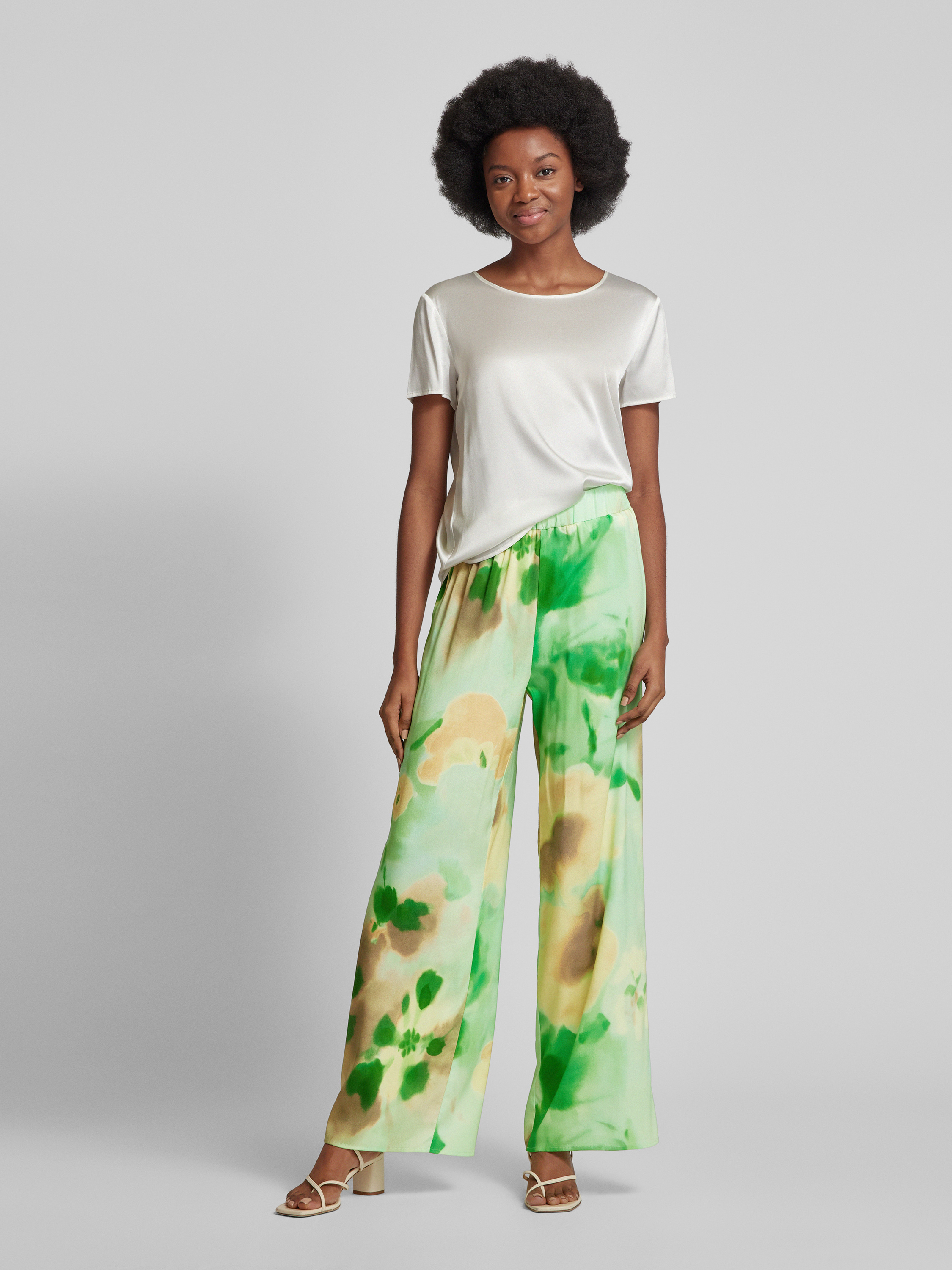 Die Regular Fit Seidenhose von (THE MERCER) N.Y. vereint einen fließenden Seide-Elasthan-Mix mit einem lebendigen Batik-Look. Durch den elastischen Bund schmiegt sie sich sanft an die Taille an und sorgt für hohen Tragekomfort. So eignet sie sich ideal für entspannte Tage.