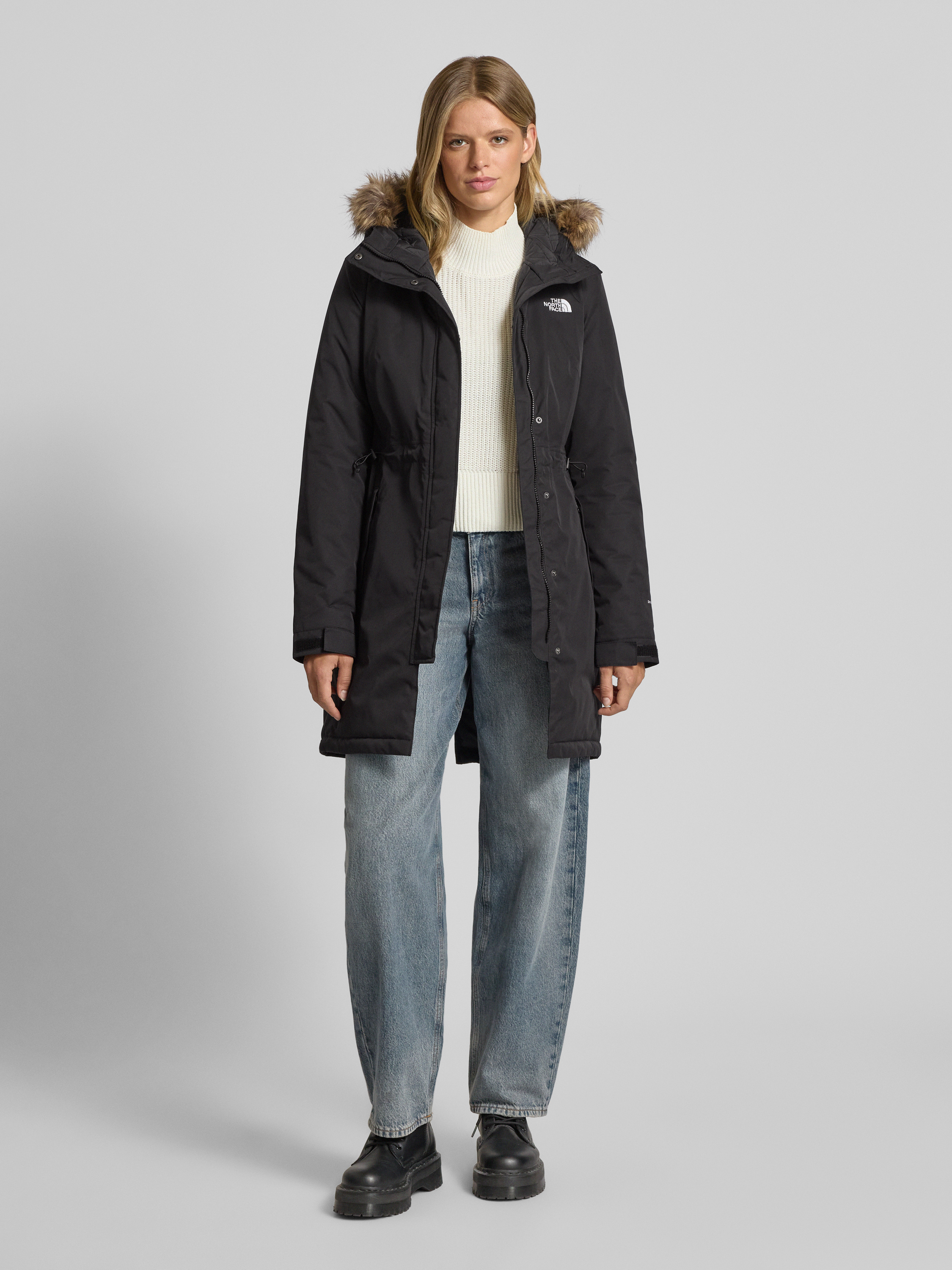 Der Damen Funktionsparka von The North Face, Modell Zaneck, zeichnet sich durch eine taillierte Form aus und sitzt angenehm am Körper. Durch die Kapuze mit Kunstfellbesatz und praktische Eingrifftaschen eignet sich das Modell gut für wechselhaftes Wetter. Logo-Stitching und ein Tunnelzug runden das Design ab.