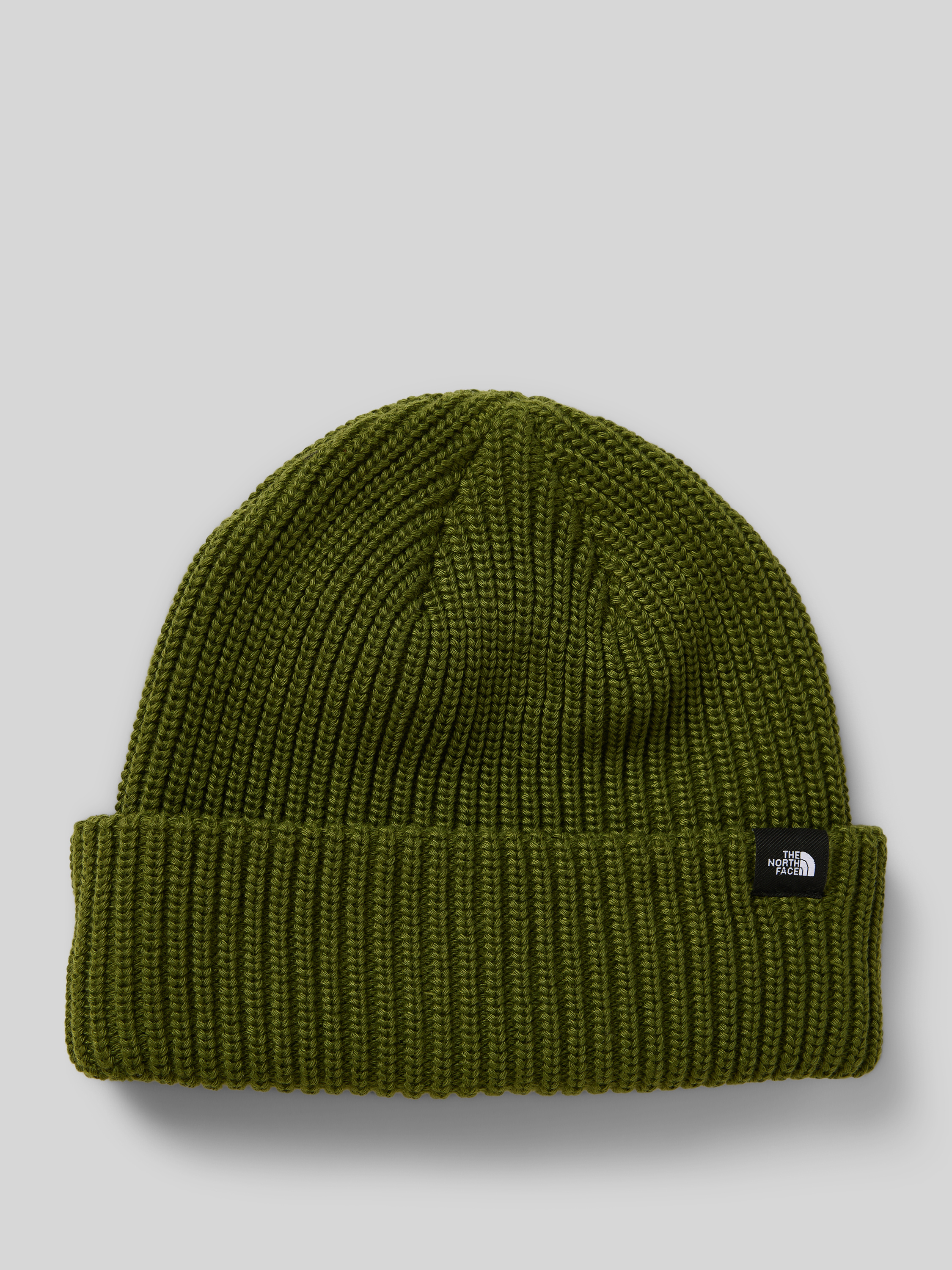 • The North Face Strickmütze mit breitem Umschlag und Label-Detail Oliv