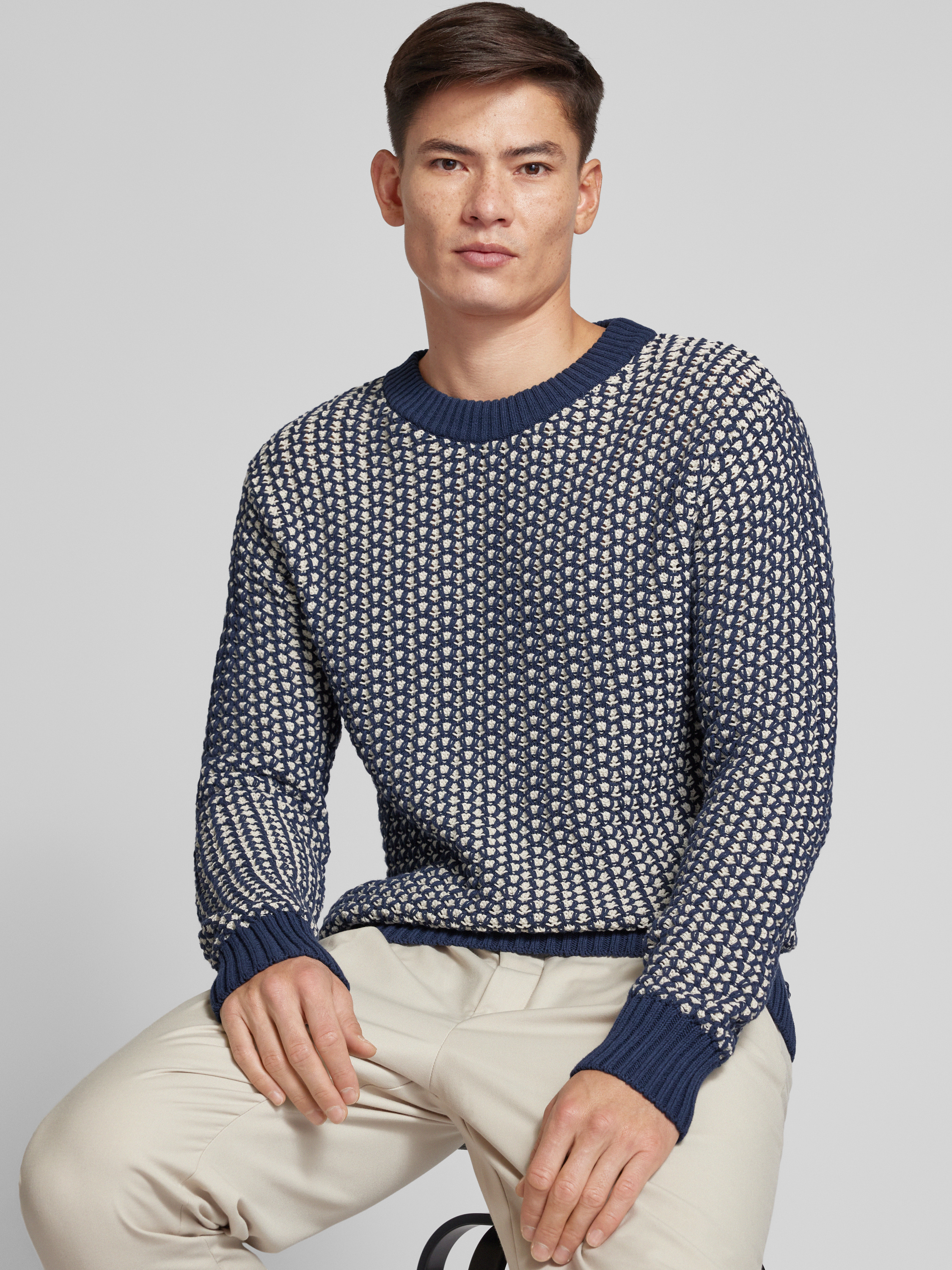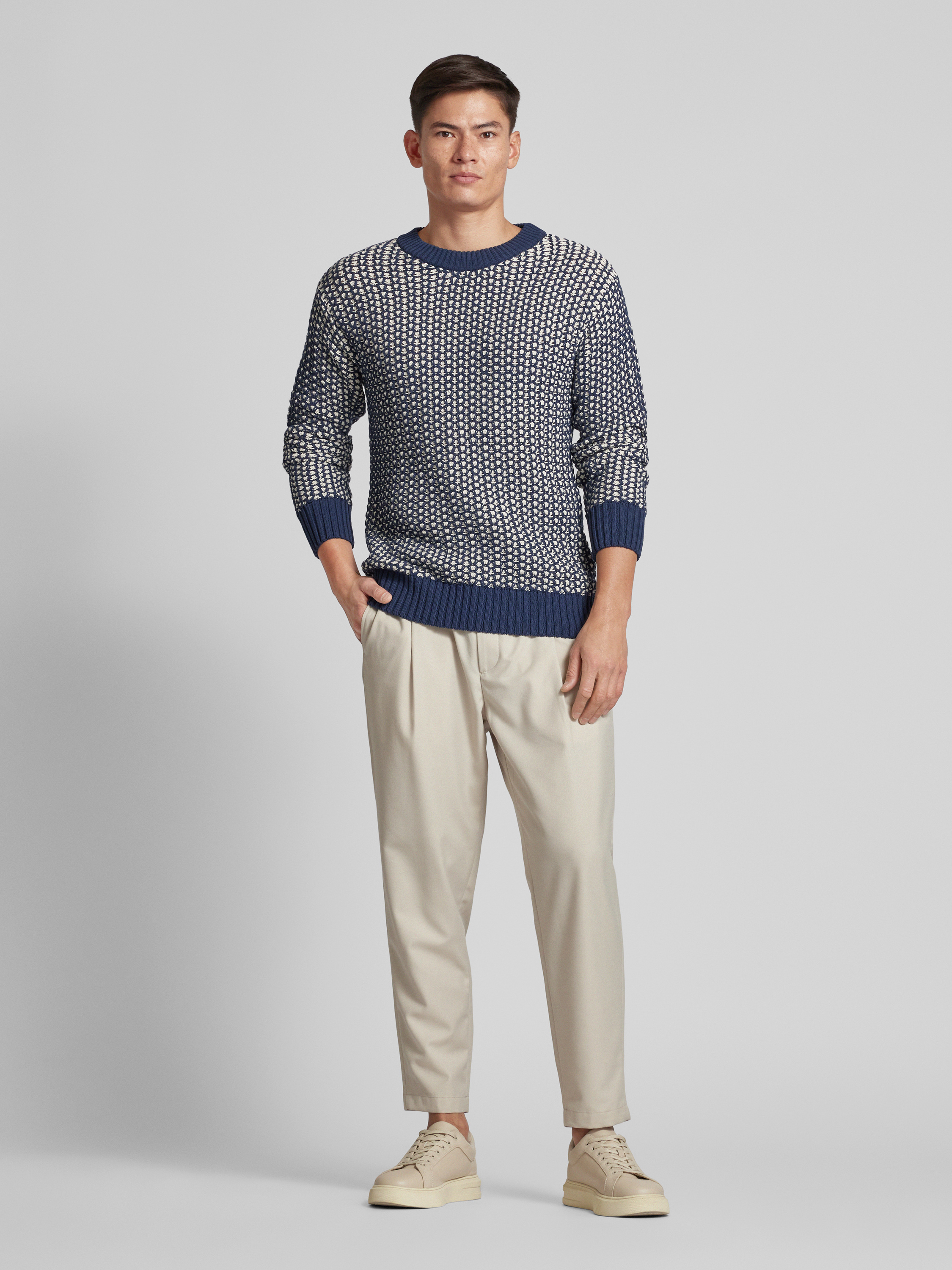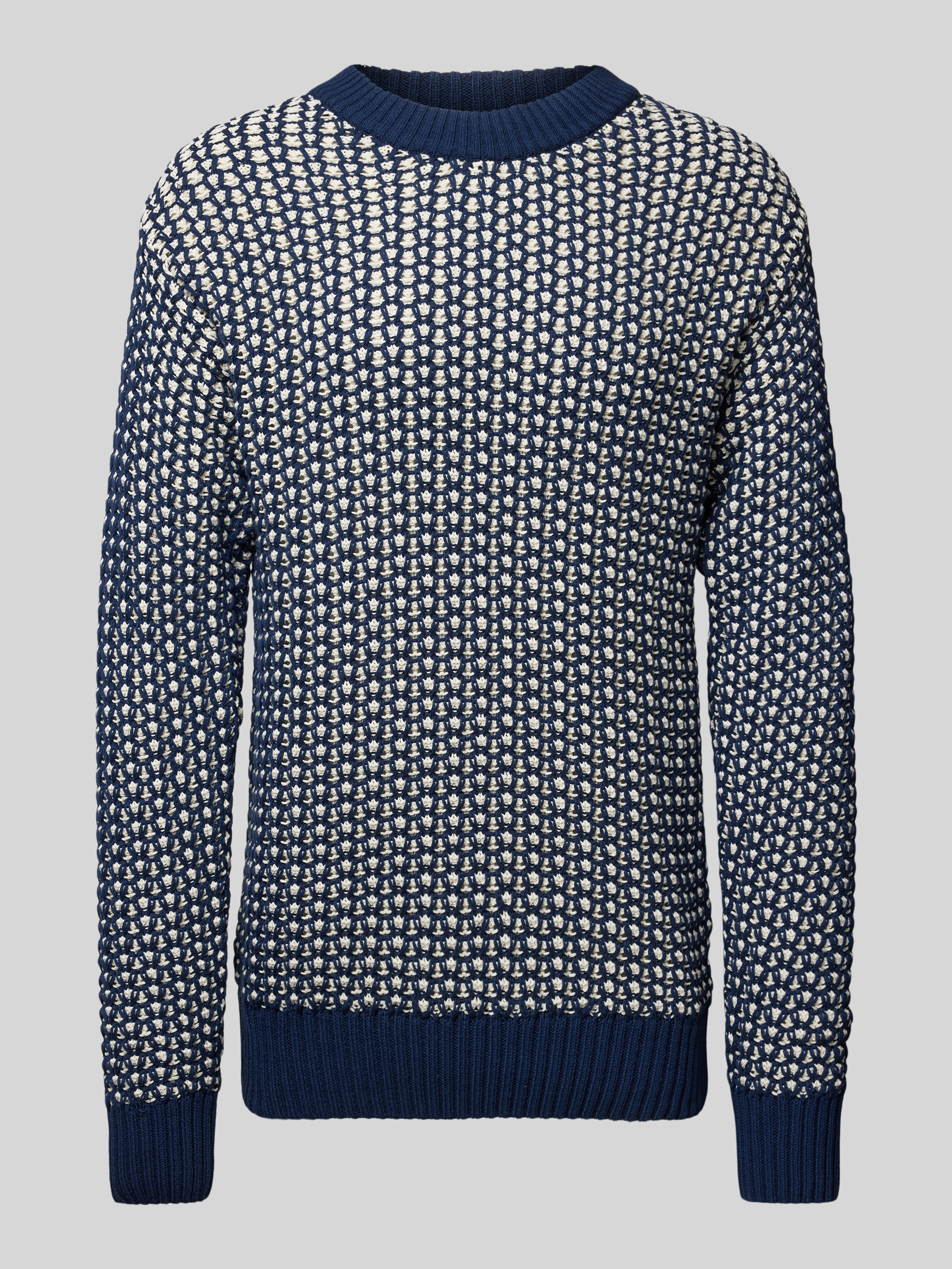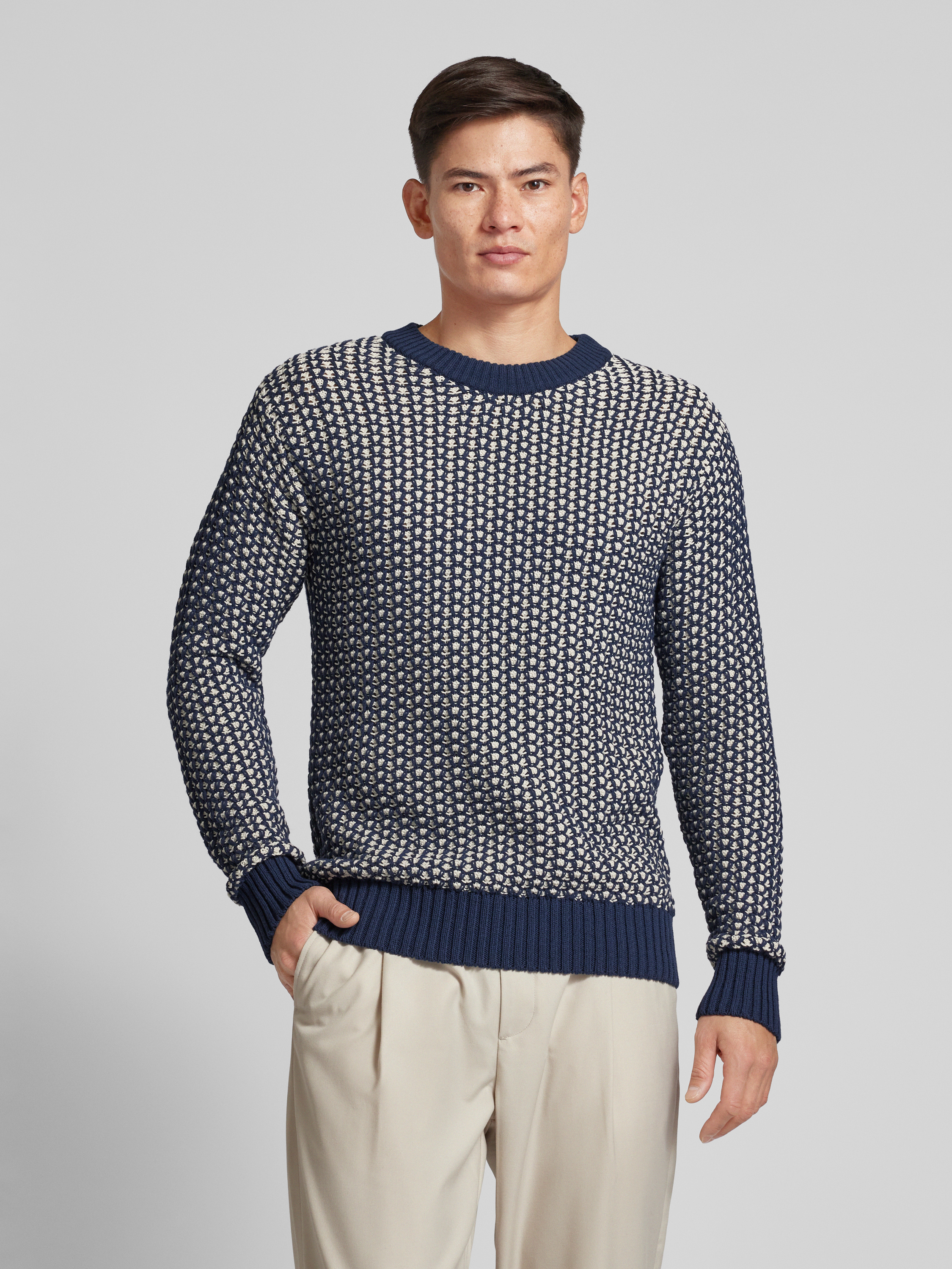 Thinking MuStrickpullover mit Rundhalsausschnitt Modell 'SANTOS' in dunkelblau