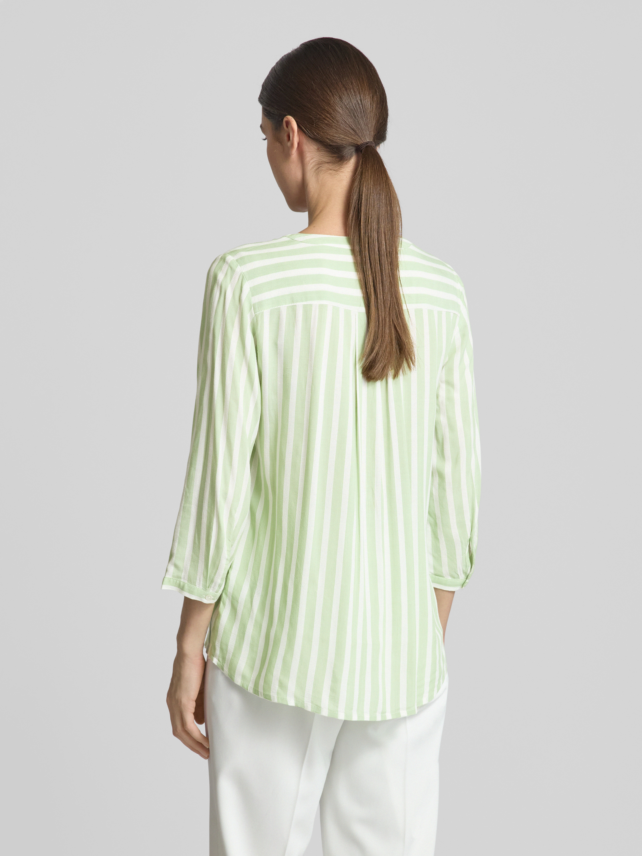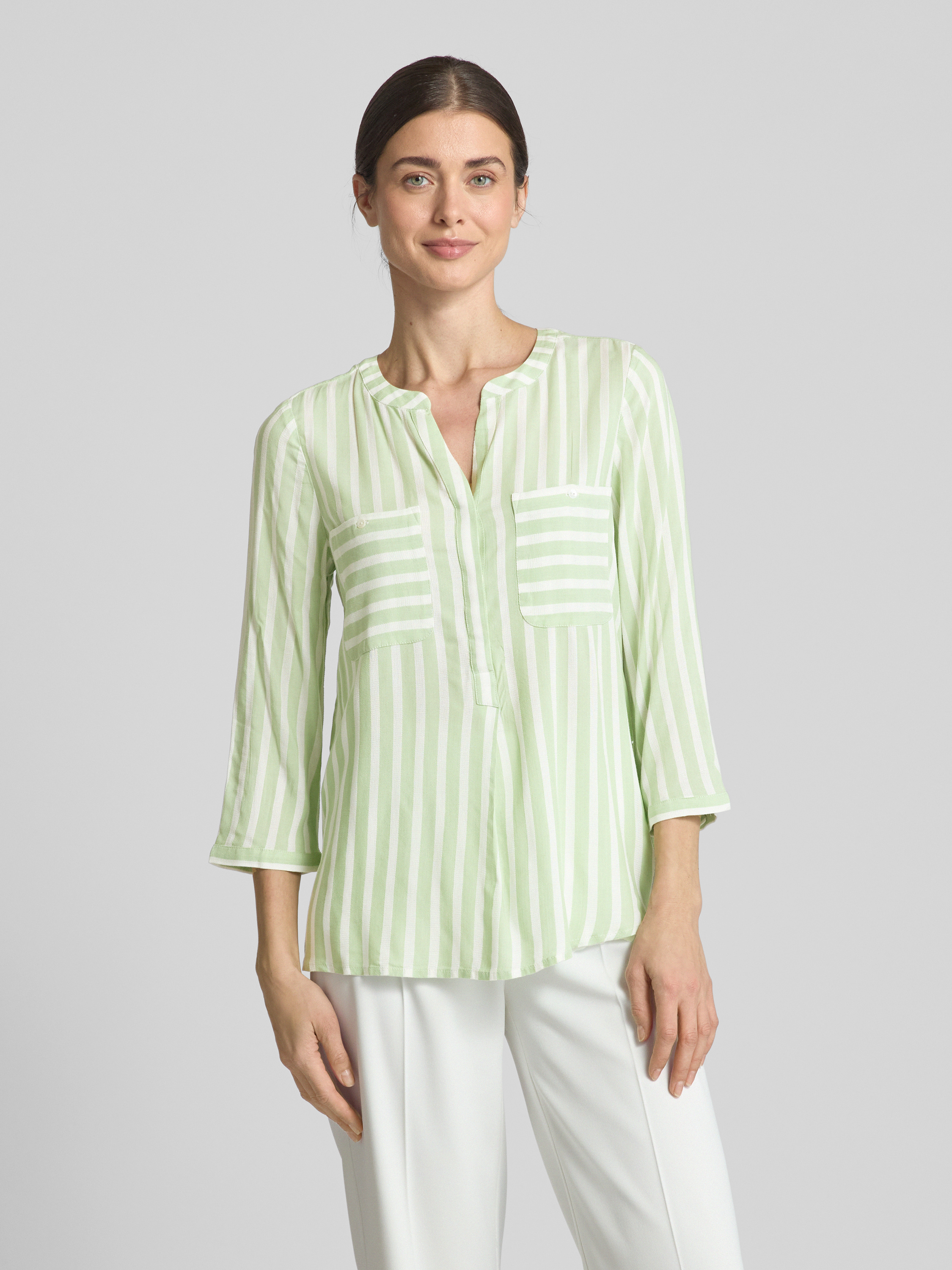 Die Comfort Fit Tunika von Tom Tailor, gefertigt aus reiner Viskose, eignet sich hervorragend für entspannte Freizeitaktivitäten. Mit ihrem gestreiften Two Tone Design und der lockeren Passform sorgt sie für einen angenehmen Tragekomfort. Die 3/4-Ärmel und der V-Ausschnitt runden den Look ab.