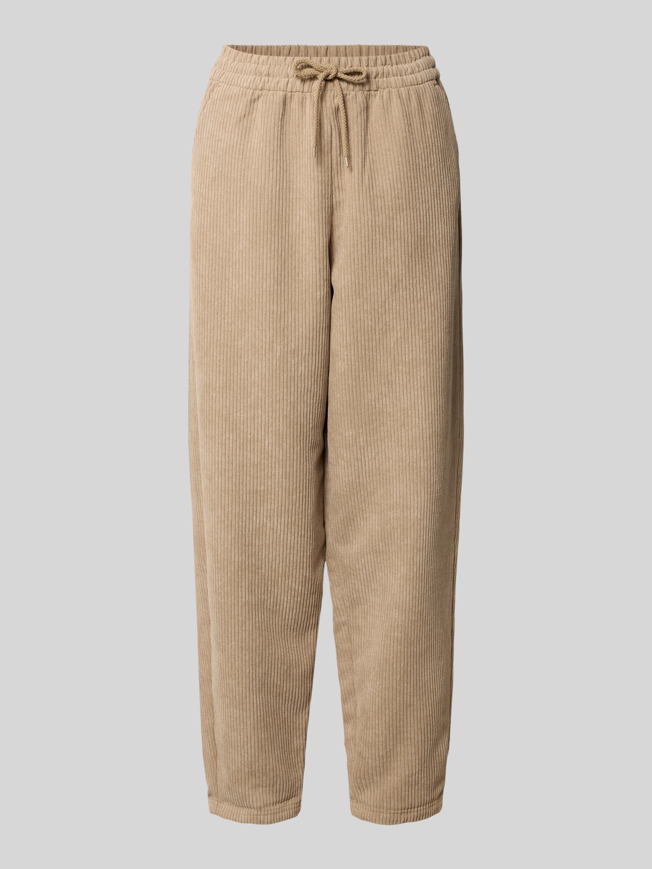 Die Damenhose Barrel Fit von Tom Tailor Denim überzeugt mit einer modernen, knöchellangen Silhouette und lockeren Beinen, die schmal zulaufen. Der angenehm elastische Bund mit Tunnelzug sorgt für ein bequemes Tragegefühl, während der weiche Cord eine lässige Optik verleiht. Praktische Eingrifftaschen runden das Design alltagstauglich ab.