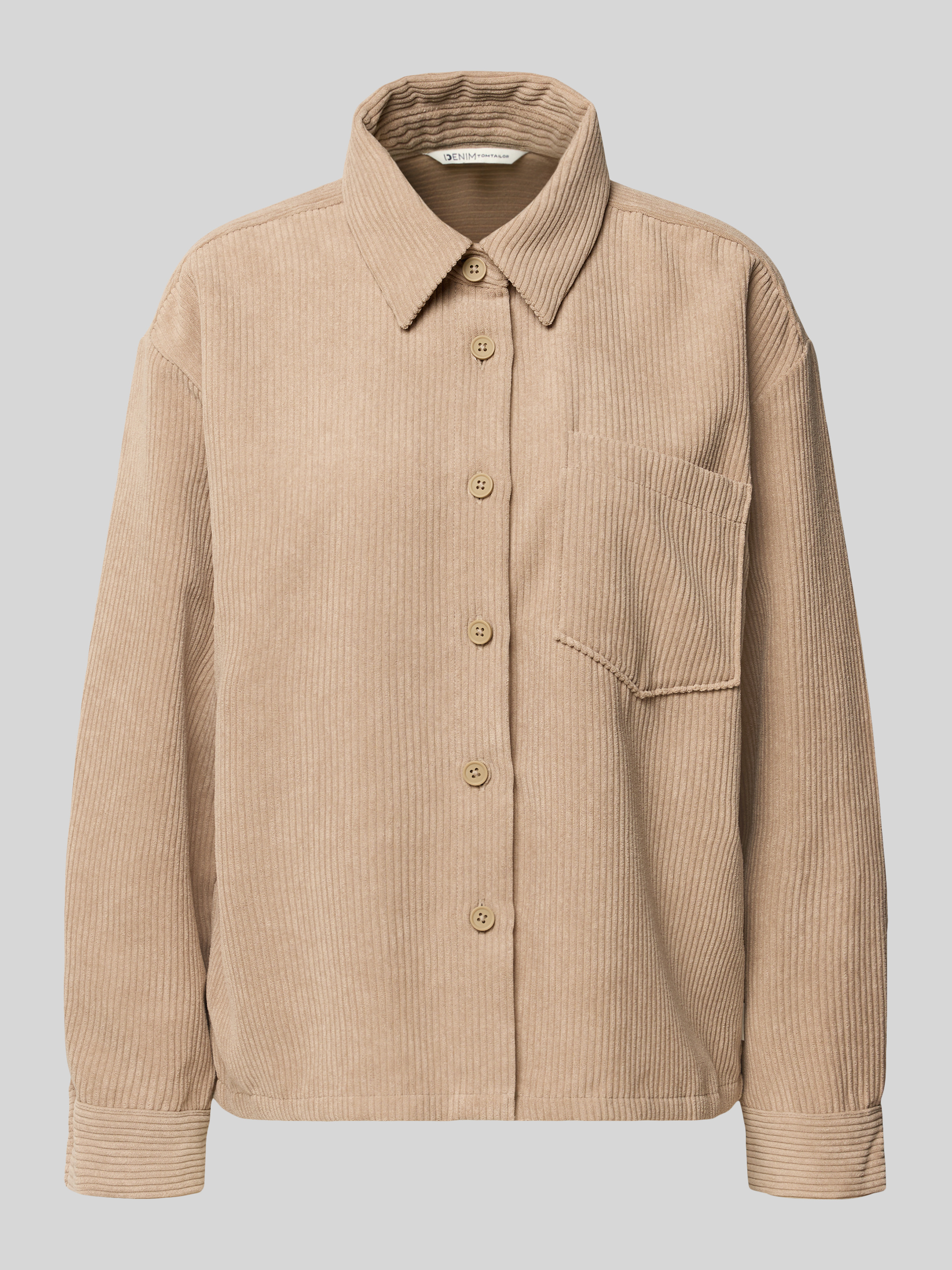 Die Damen Boxy Fit Cord-Bluse von Tom Tailor Denim zeigt sich in einer unifarbenen Optik, die sich unkompliziert kombinieren lässt. Durch den lockeren, kastigen Schnitt entsteht Bewegungsfreiheit, während der Hemdblusenkragen und die Brusttasche einen lässigen Akzent setzen. Das Cord-Material verleiht der Bluse eine angenehm weiche Haptik und sorgt für hohen Tragekomfort im Alltag.