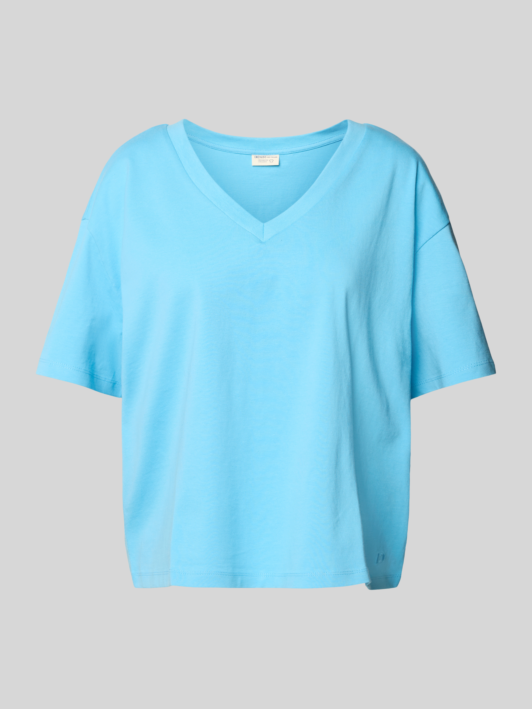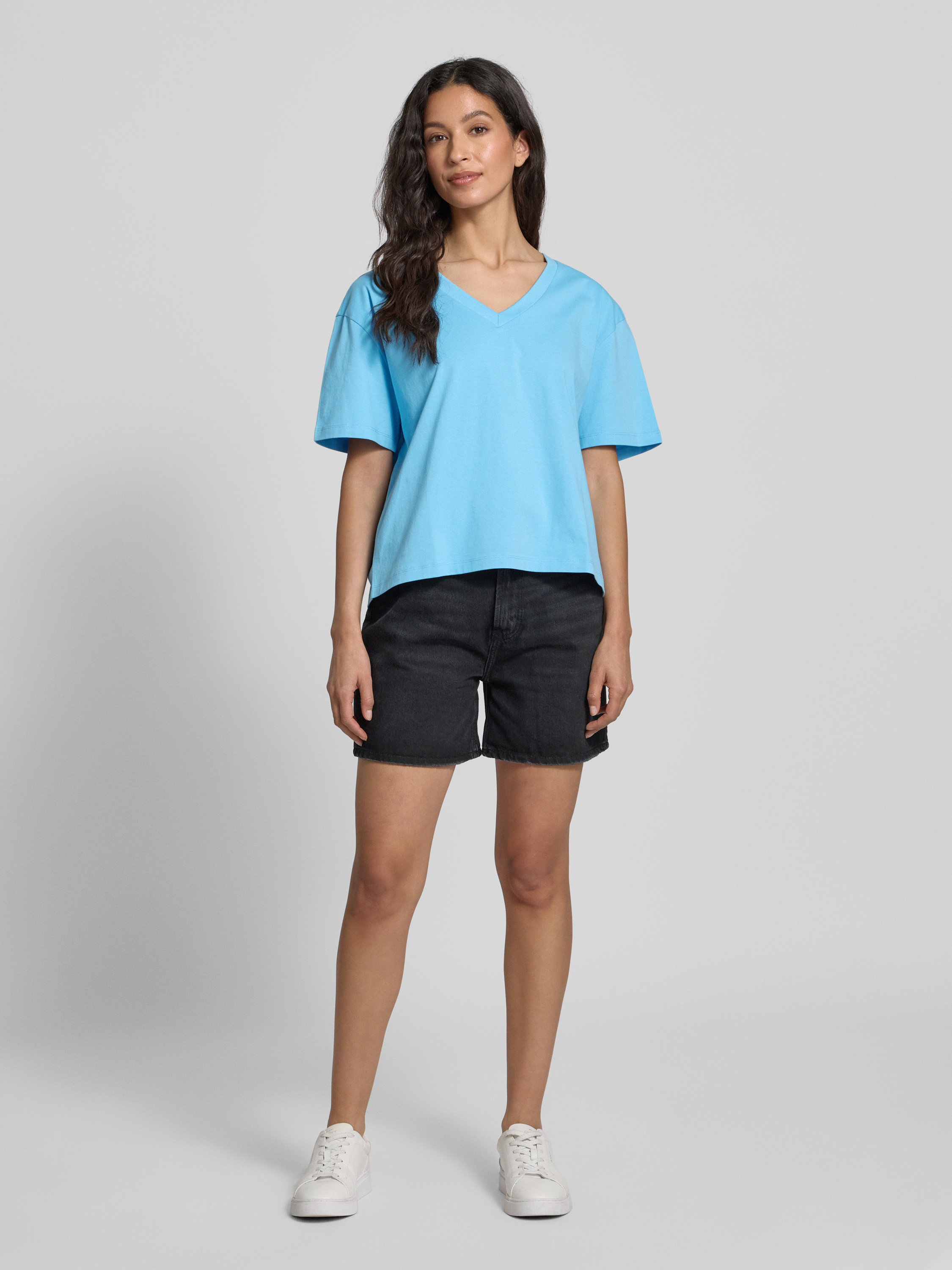 Das Damen T-Shirt von Tom Tailor Denim im Boxy Fit kombiniert eine lässige Passform mit der angenehmen Weichheit reiner Baumwolle. Mit seinem unifarbenen Design und dem V-Ausschnitt eignet es sich ideal für entspannte Freizeitlooks. Das dezente Logo-Stitching rundet das Gesamtbild stilvoll ab.