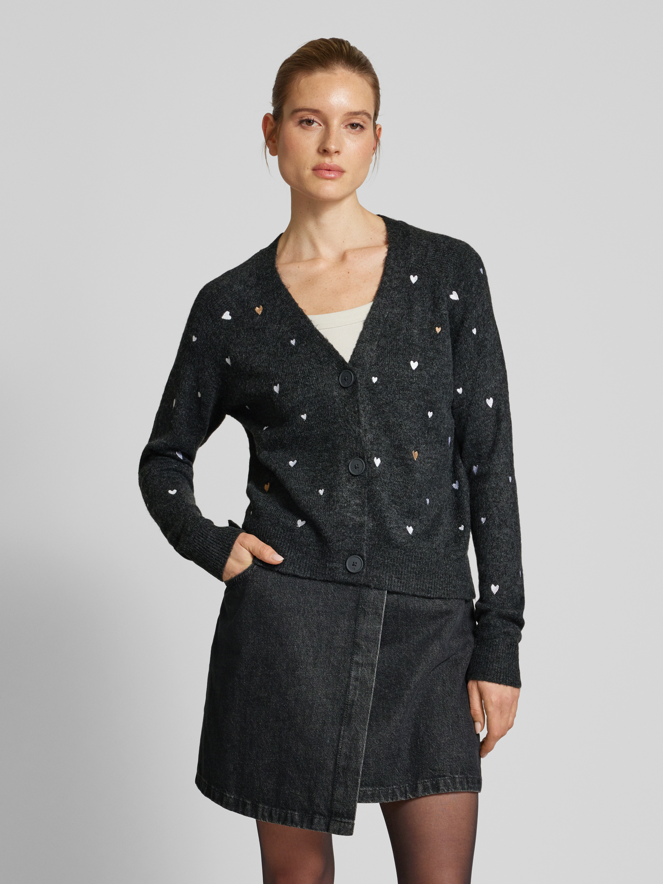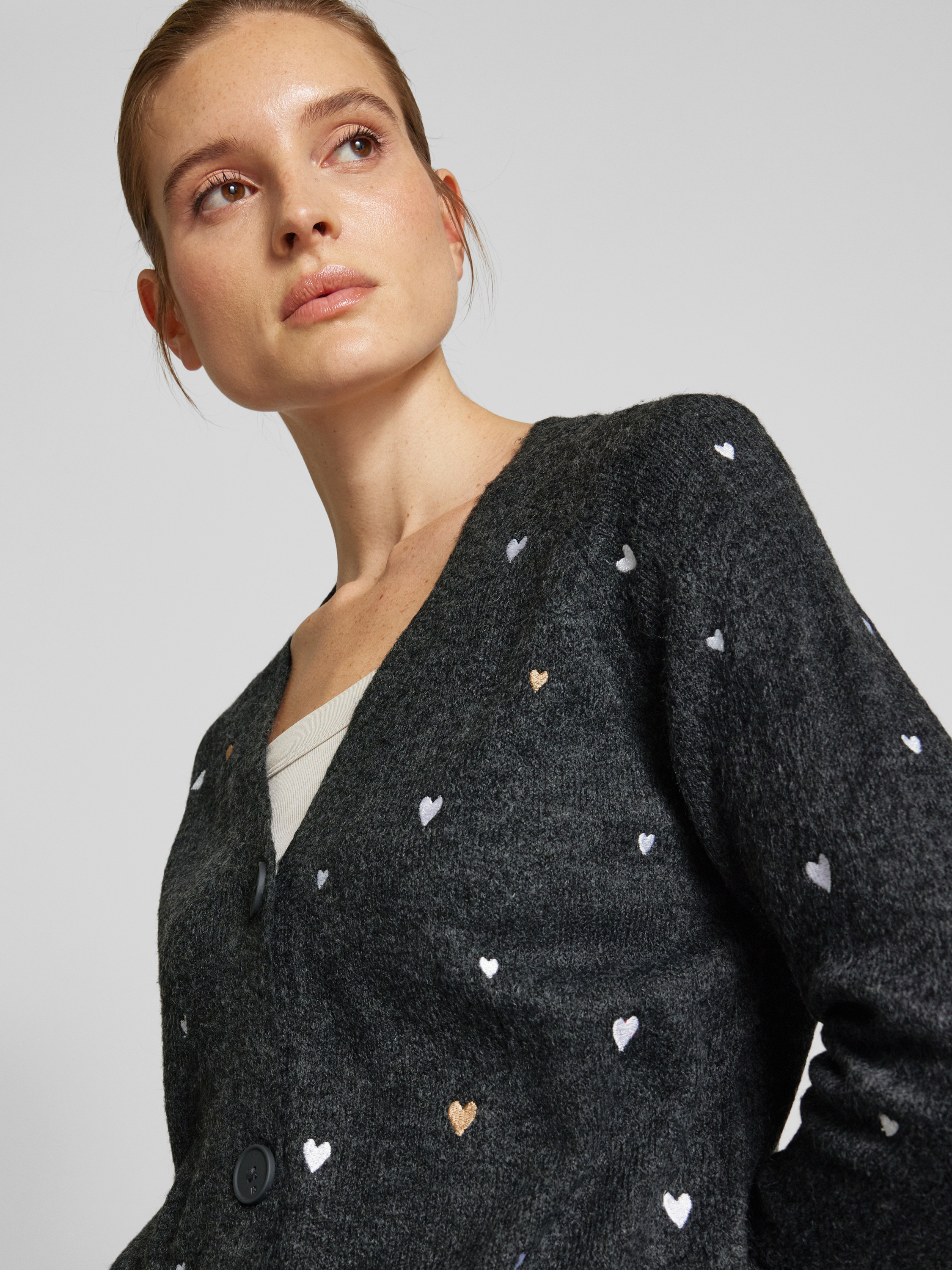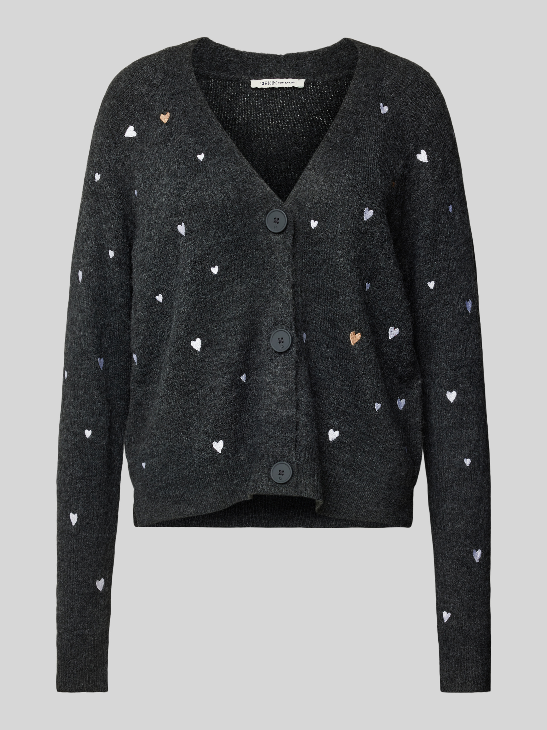 Tom Tailor DenimComfort Fit Strickjacke mit Herz-Stickerei in anthrazit