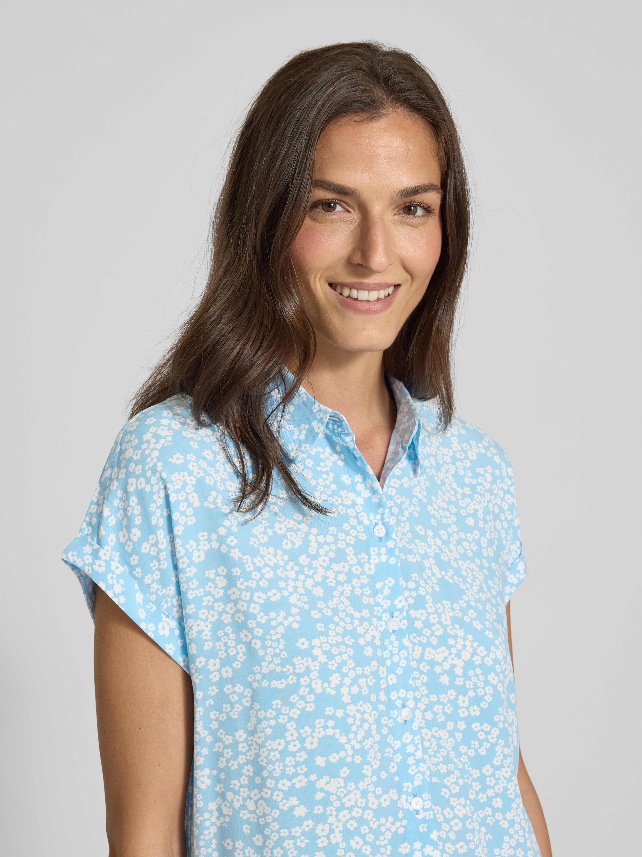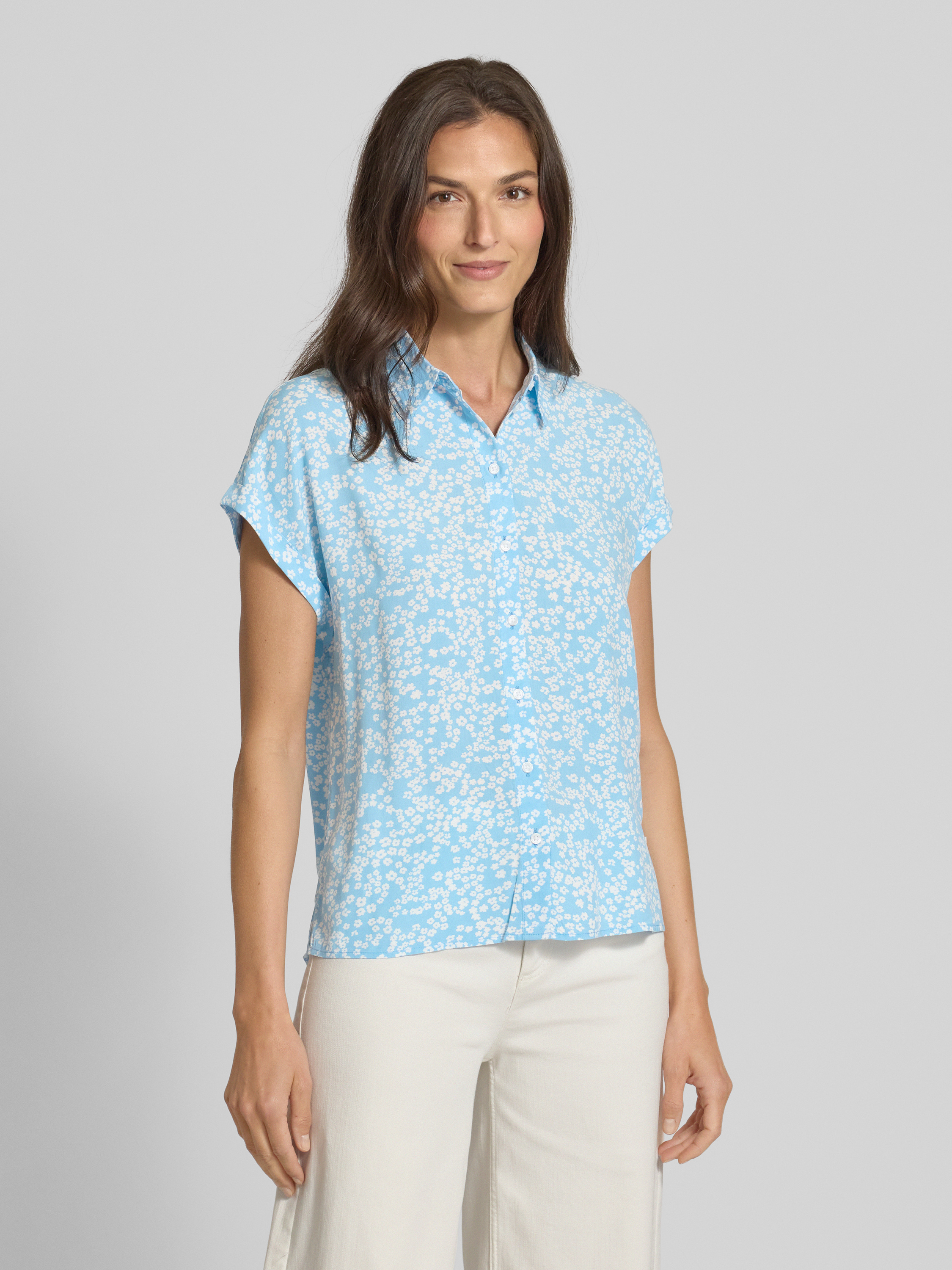 Tom Tailor DenimLoose Fit Kurzarmbluse aus reiner Viskose in hellblau