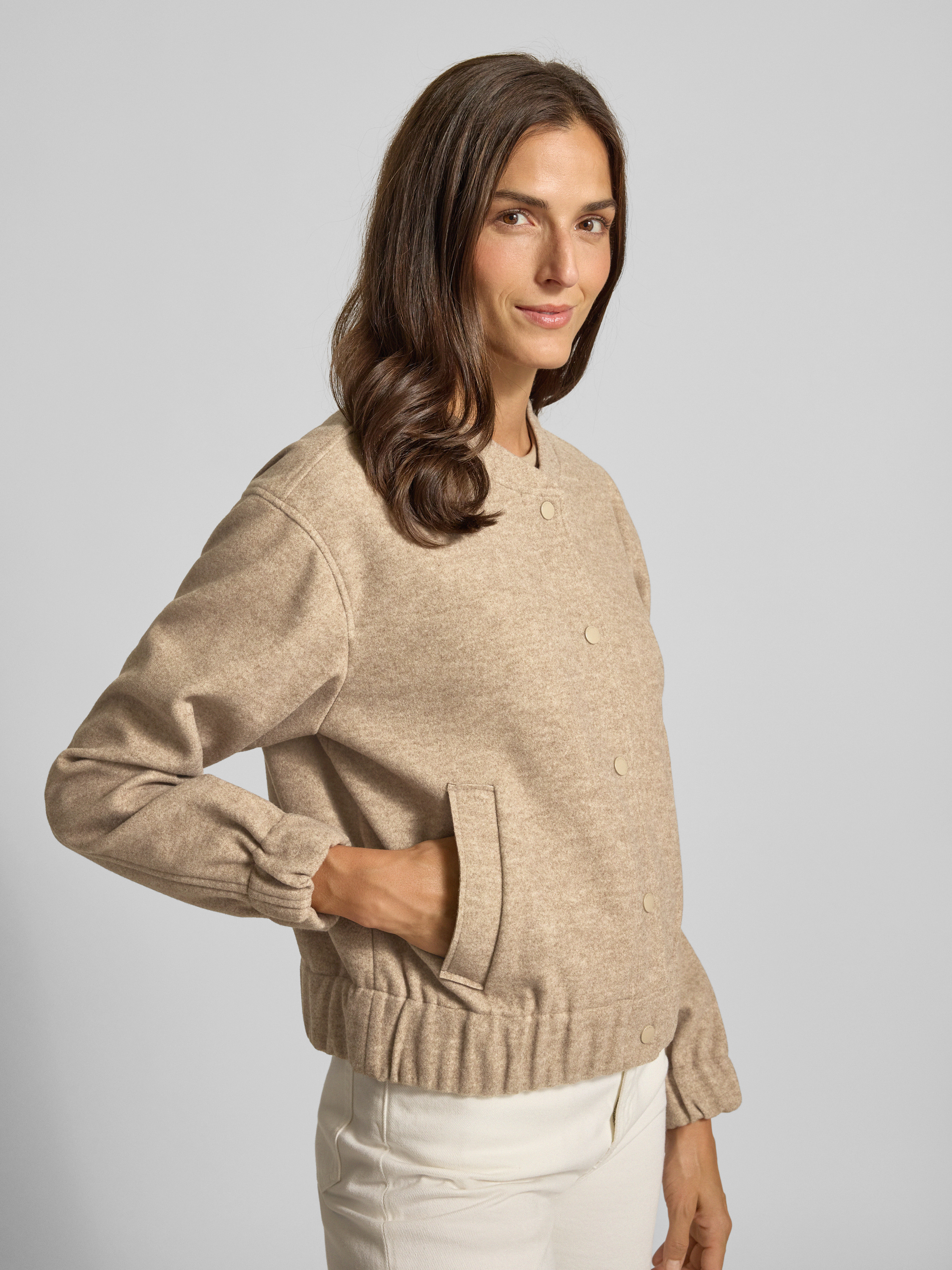 Die Damen Bomberjacke von Tom Tailor Denim verbindet einen melierten Look mit klassischem College-Kragen und Regular Fit. Durch die legere Passform sitzt sie angenehm, während die langen Ärmel und seitlichen Eingrifftaschen für praktischen Komfort im Alltag sorgen. Hierdurch eignet sich die Jacke vielseitig.