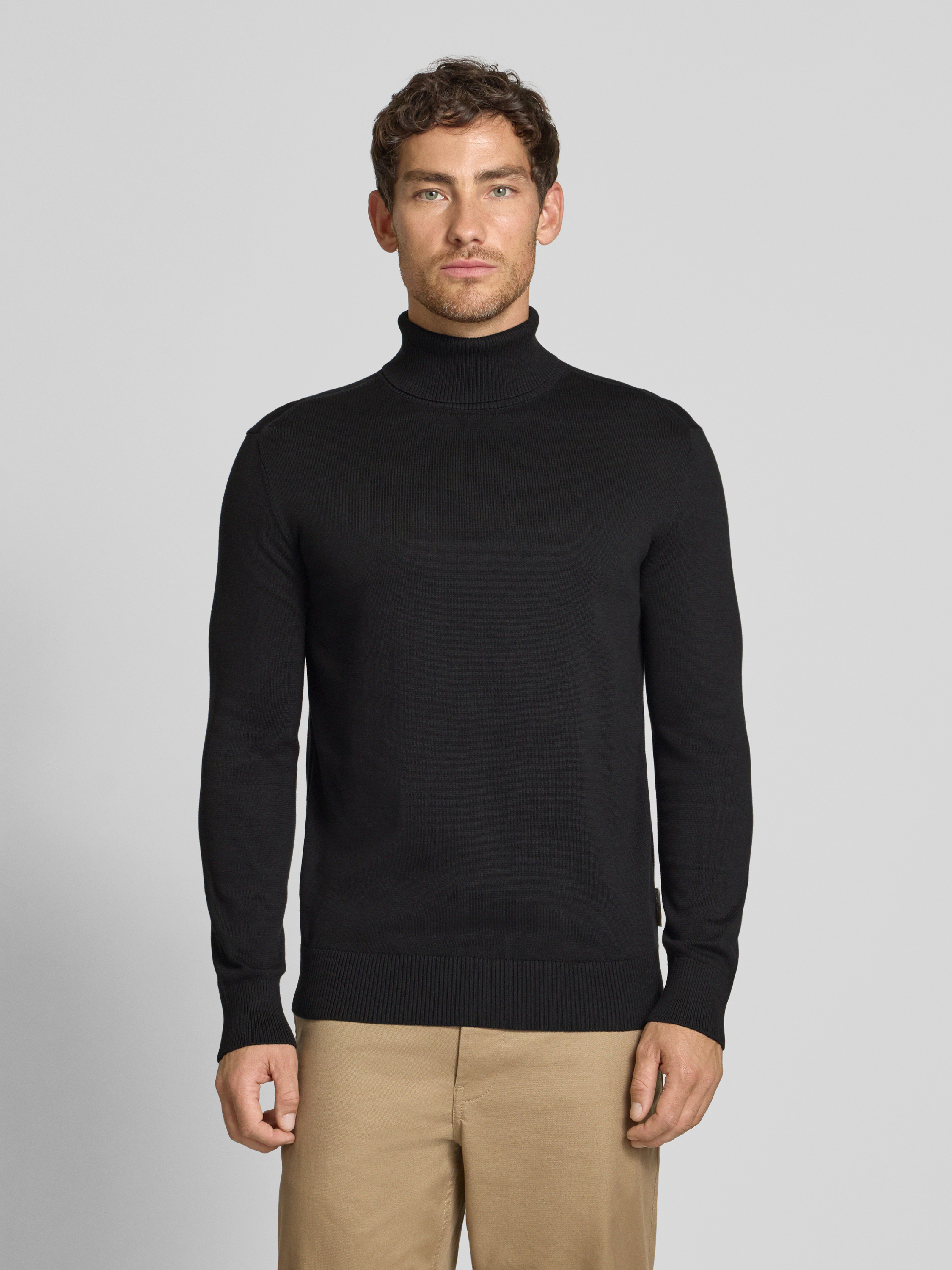 • Tom Tailor Denim Regular Fit Rollkragenpullover aus reiner Baumwolle Black