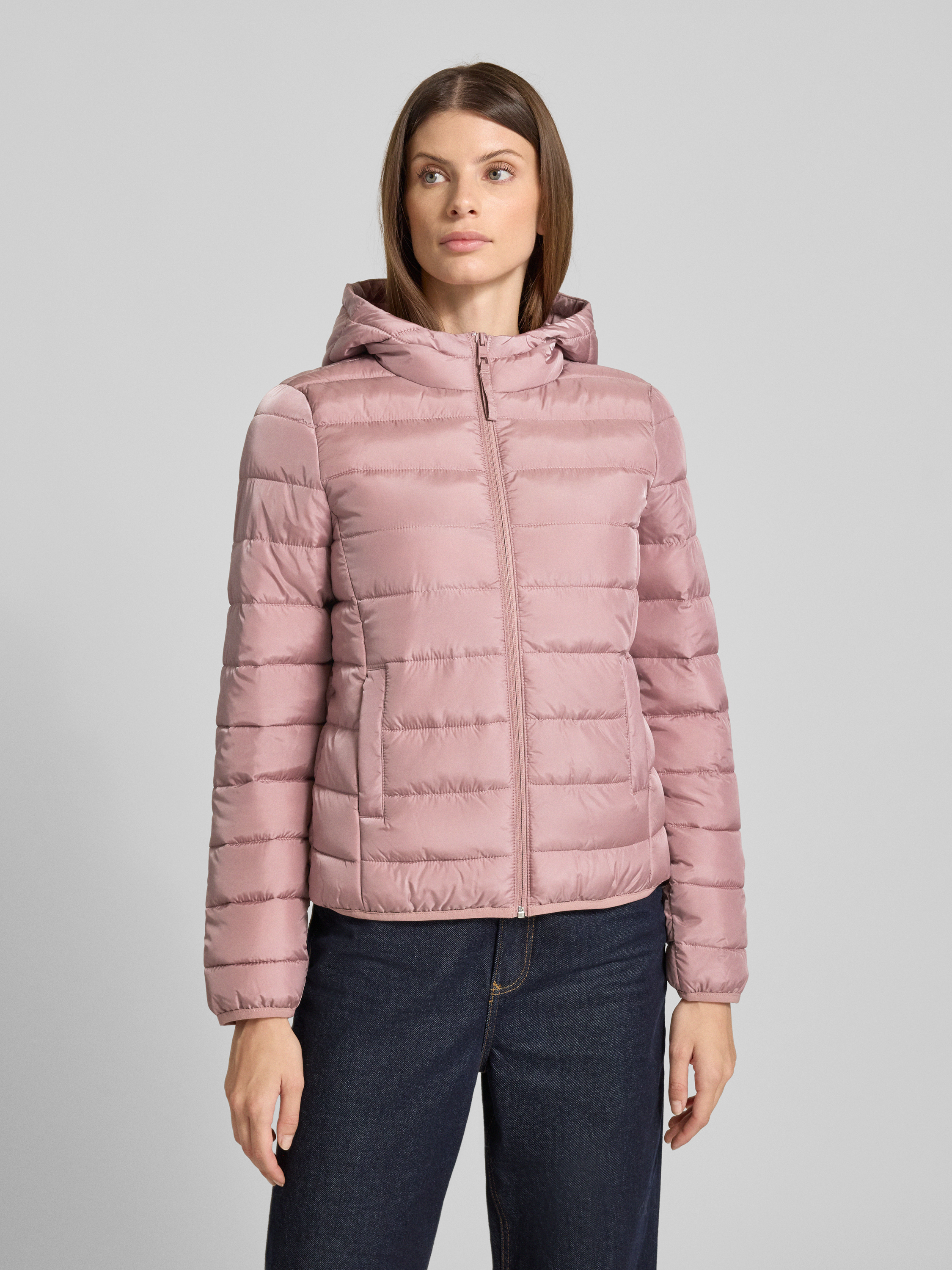 Die Damen Regular Fit Steppjacke mit Kapuze von Tom Tailor Denim präsentiert sich in unifarbener Optik und liegt angenehm am Körper. Dank ihrer langen Ärmel und des Stehkragens mit Kapuze eignet sie sich gut für wechselhaftes Wetter. Seitliche Eingrifftaschen sorgen unterwegs für zusätzlichen Komfort.