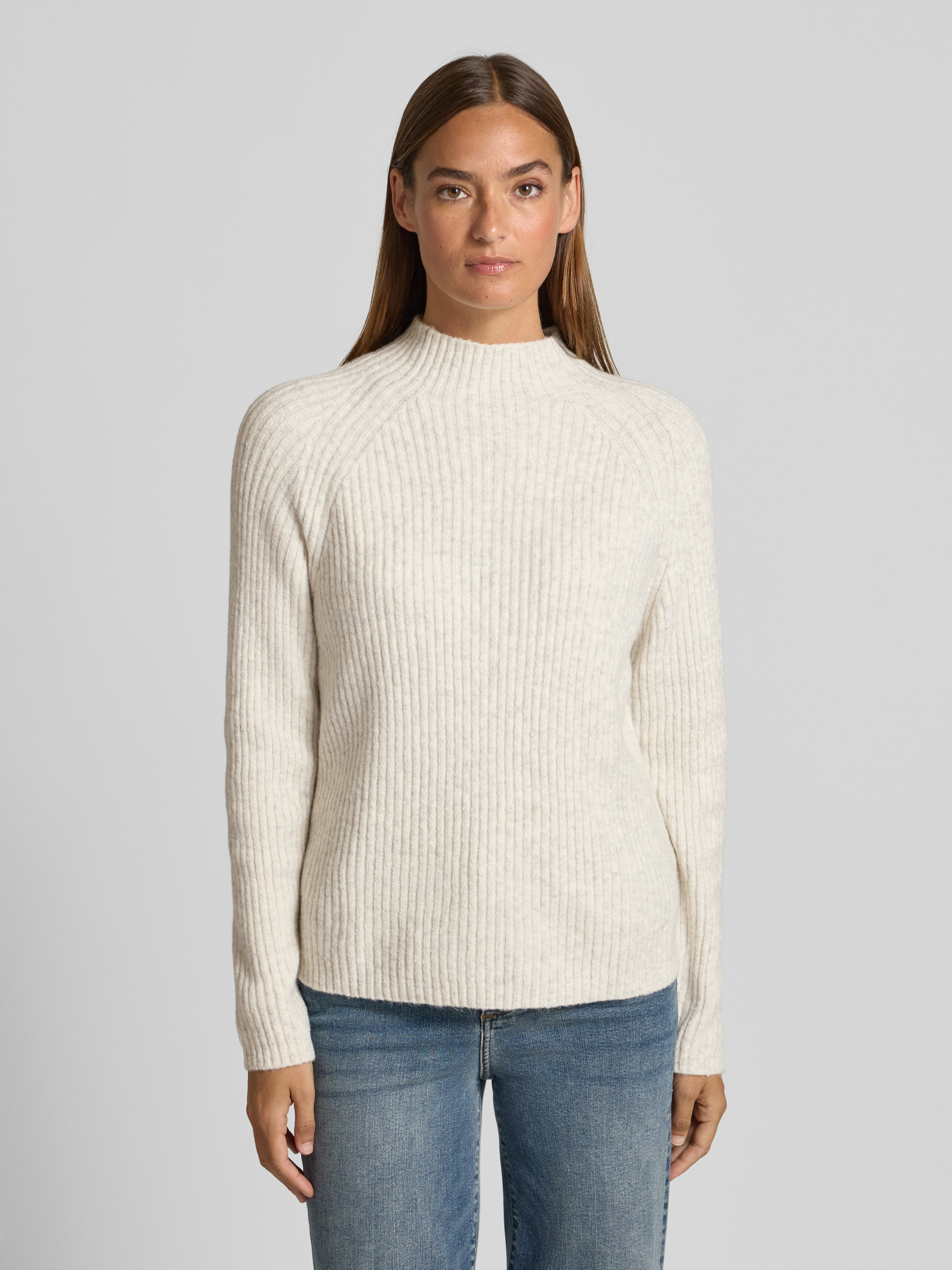 Der Damen Strickpullover von Tom Tailor Denim zeigt sich in unifarbener Optik und Regular-Fit-Passform, was vielseitige Kombinationsmöglichkeiten im Alltag eröffnet. Durch den Mock Neck und Raglanärmel entsteht ein angenehmes Tragegefühl, das Bewegungsfreiheit unterstützt. Die Strick-Materialverarbeitung sorgt für eine dezente Struktur, wodurch man sich rundum wohlfühlt.