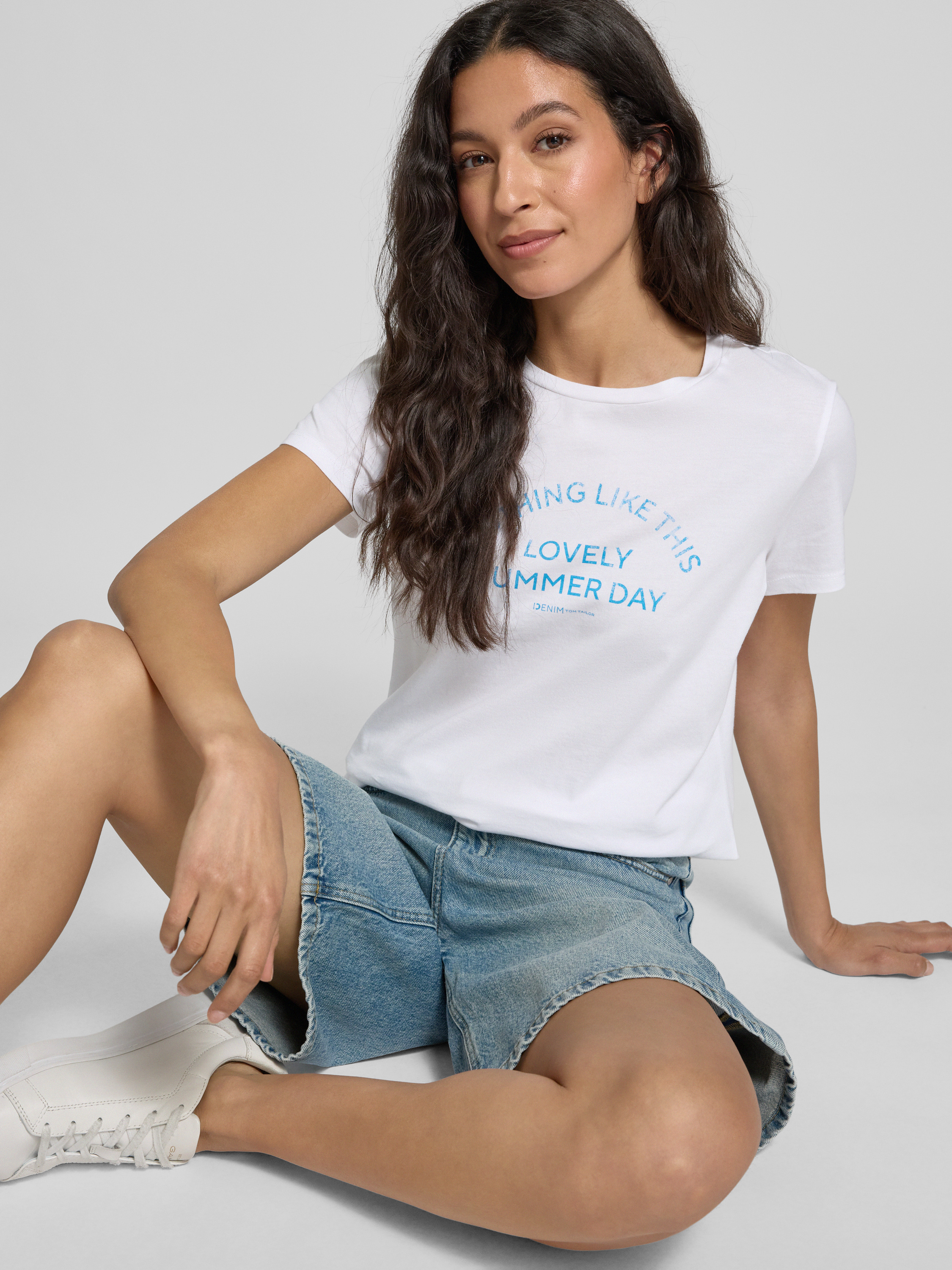 Tom Tailor DenimRegular Fit T-Shirt aus reiner Baumwolle in weiss