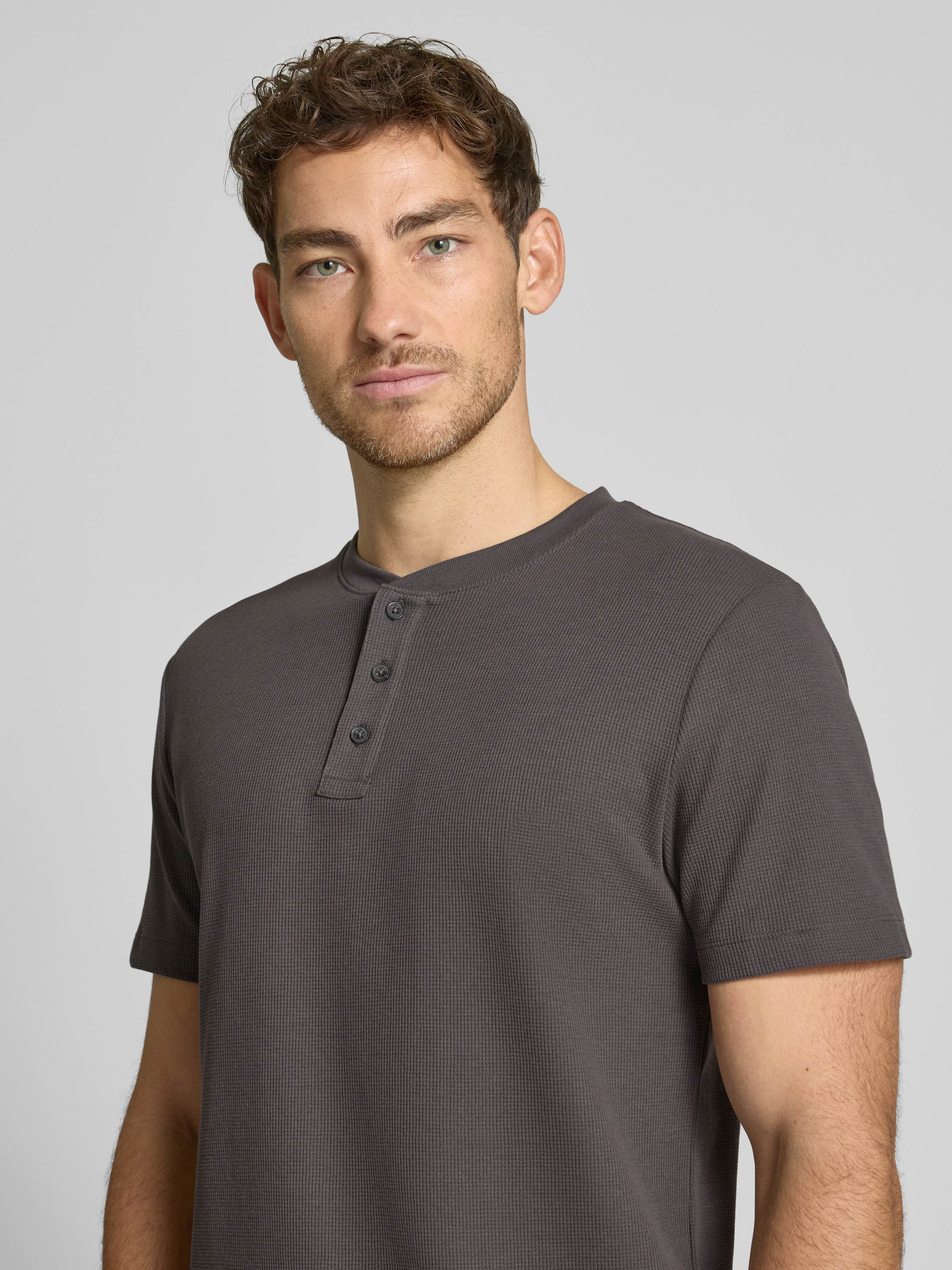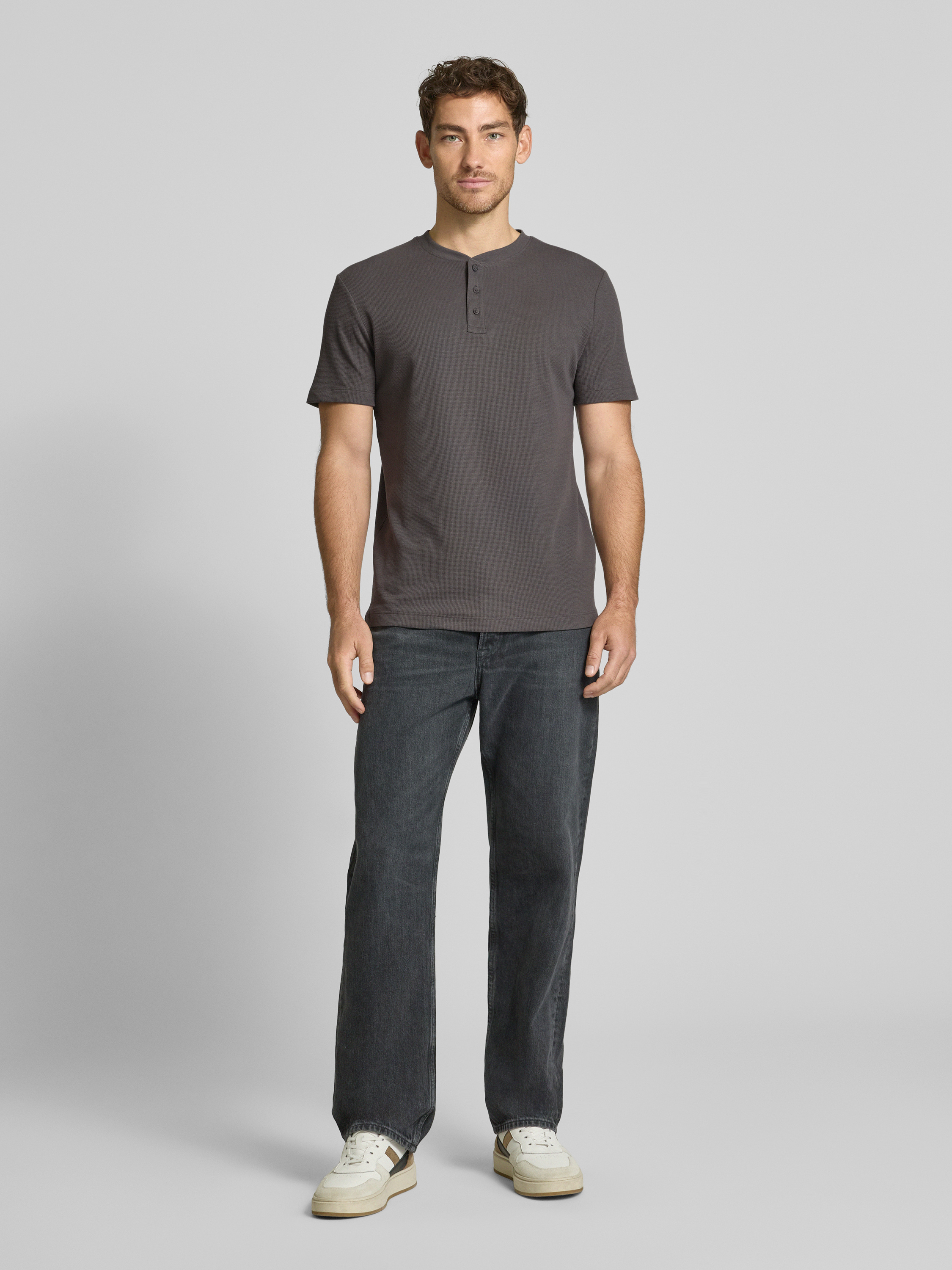 Tom Tailor DenimRegular Fit T-Shirt in Waffelstruktur in anthrazit