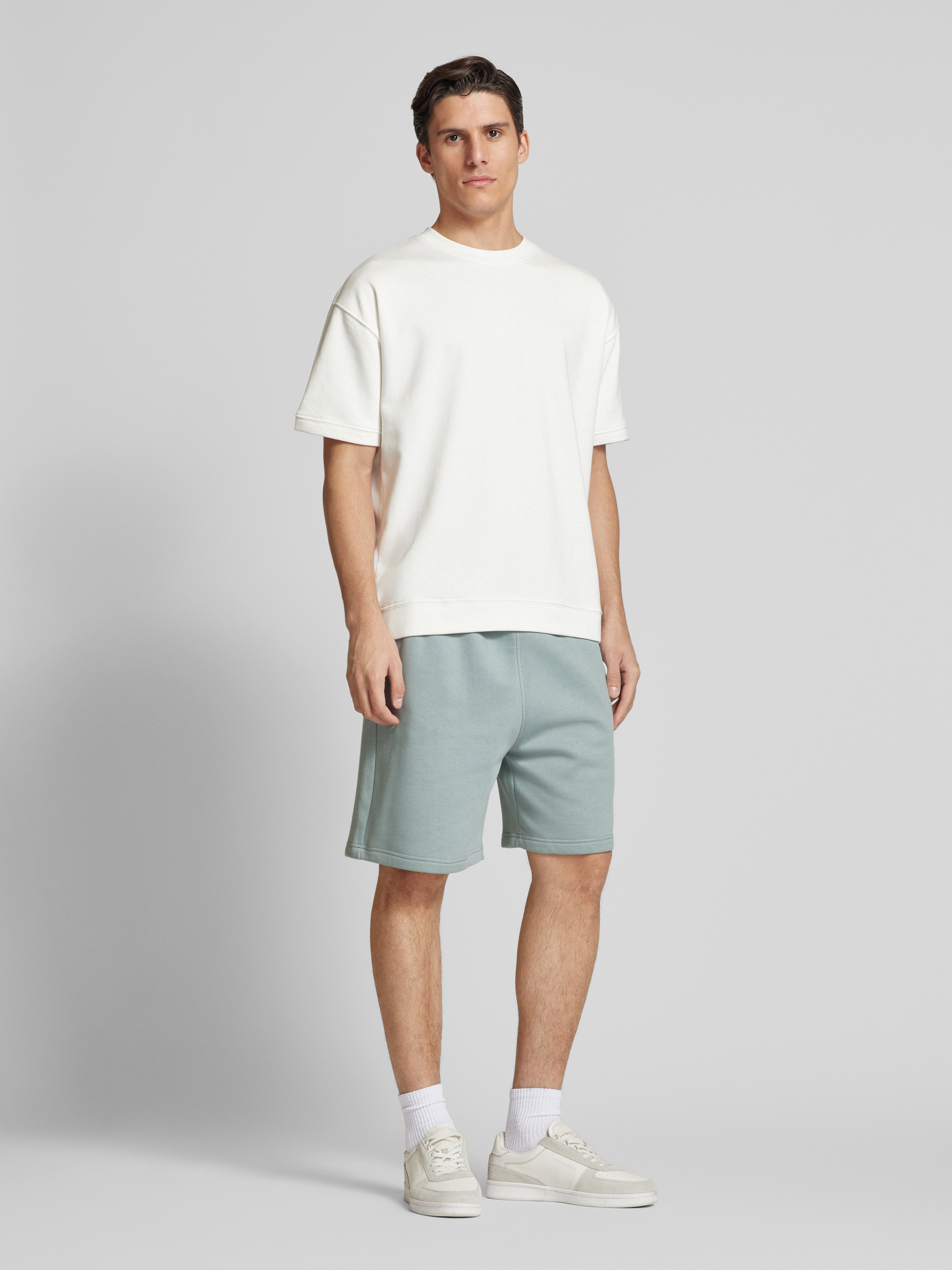 Die Herren Sweatshorts von Tom Tailor Denim kombinieren einen lässigen Relaxed Fit mit der Funktionalität eines Jogger Styles. Der Baumwoll-Polyester-Mix sorgt für ein angenehmes Tragegefühl, während der elastische Bund und die seitlichen Eingrifftaschen Komfort und Praktikabilität bieten. Ein gummierter Logo-Print rundet das schlichte Design ab.